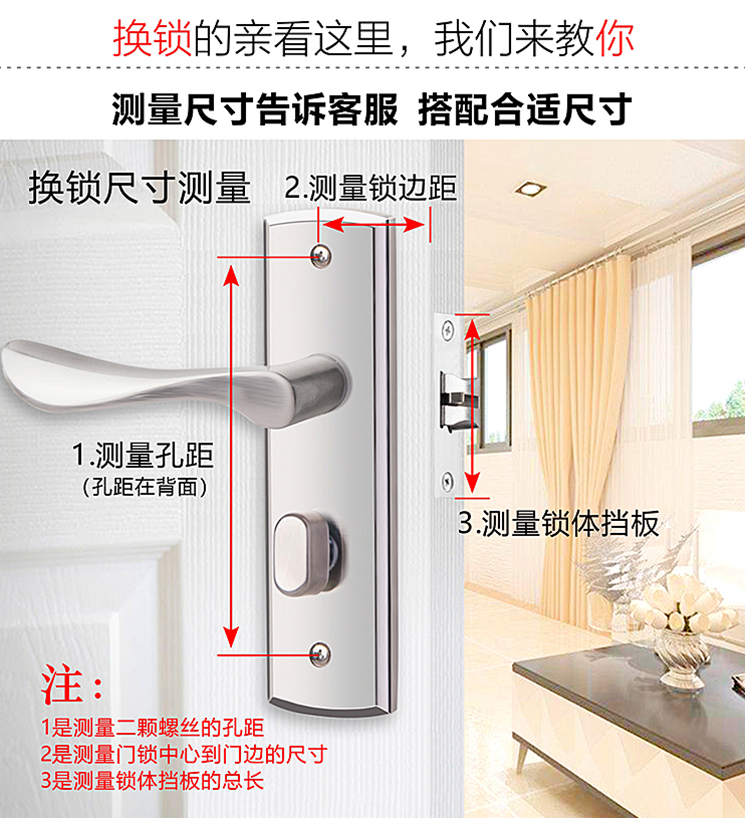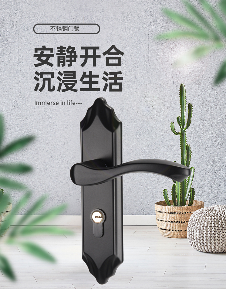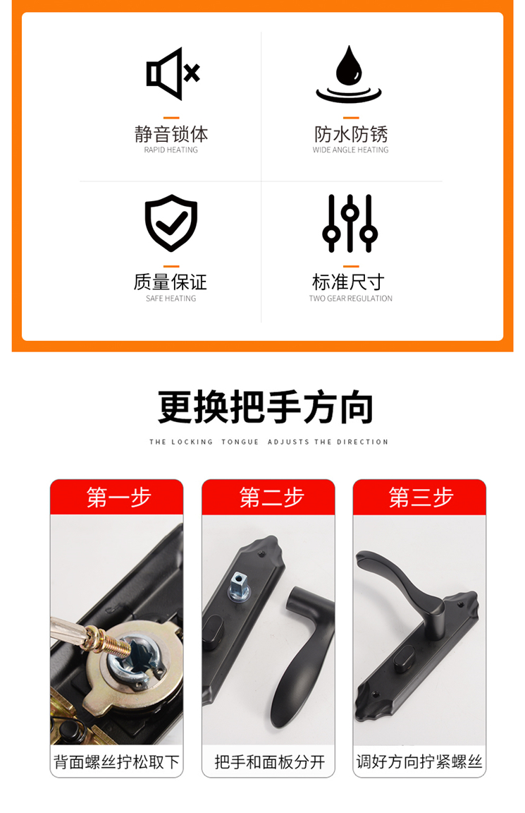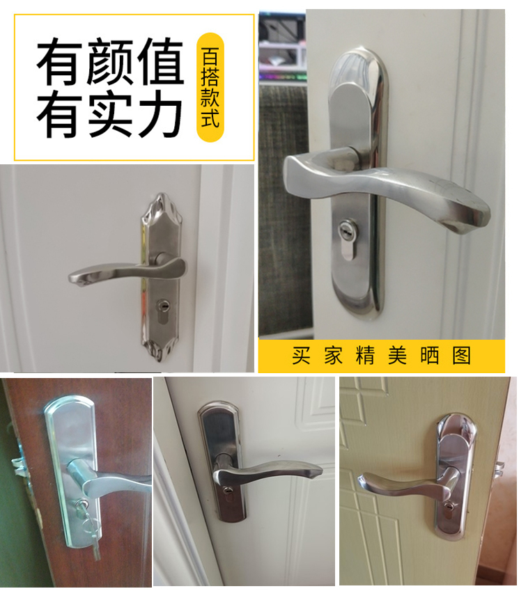 精品304不锈钢锁卧室门锁室内家用房门单舌静音锁房间门锁面板锁