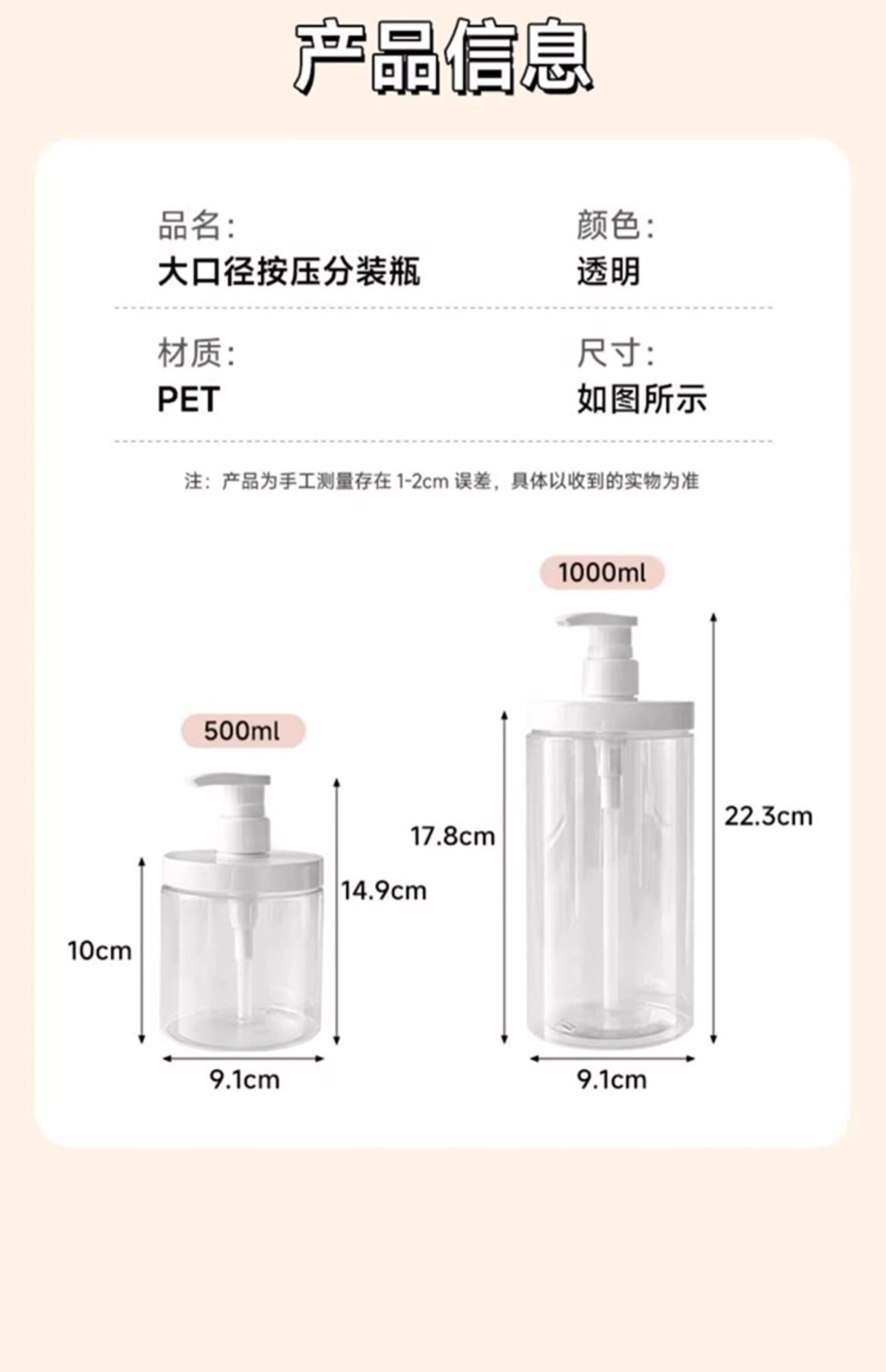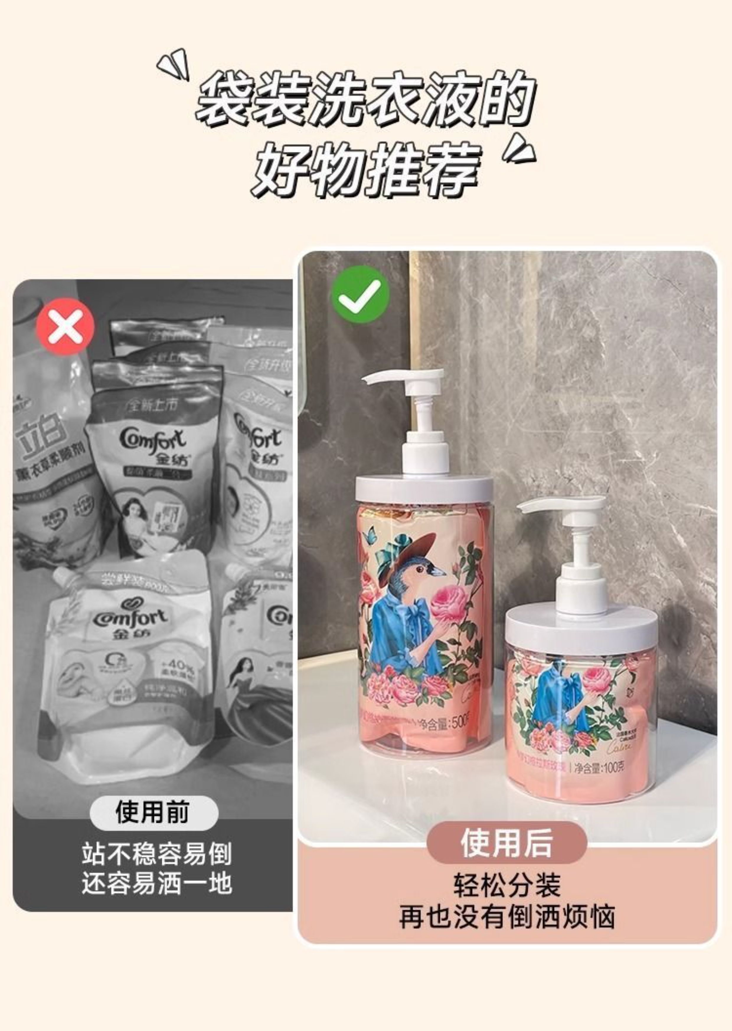 大容量洗衣液分装瓶按压瓶装洗衣液替换装专用大口径空瓶子收纳瓶