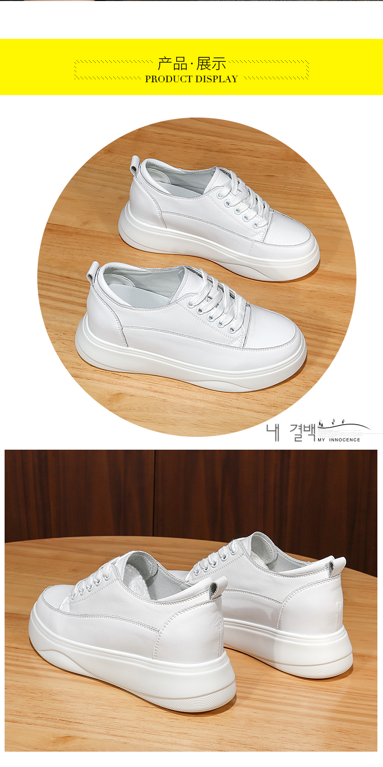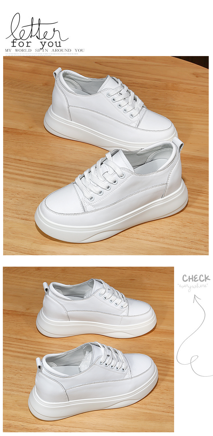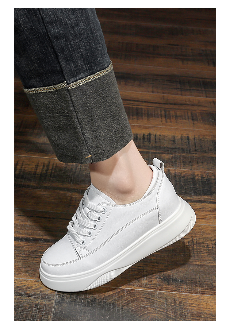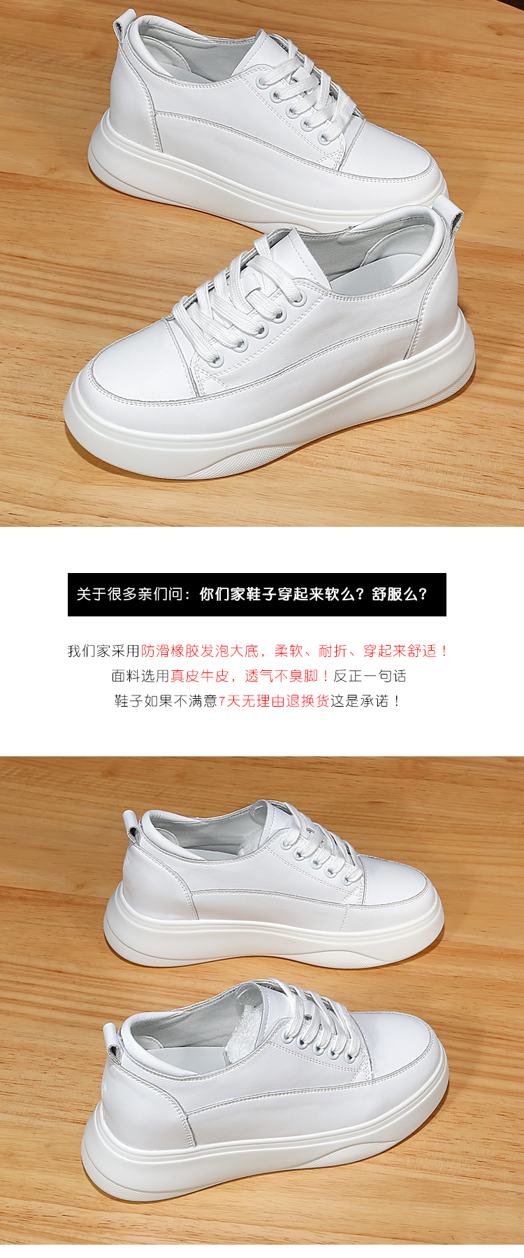 真皮内增高小白鞋女8cm厚底小码31 32春秋坡跟休闲单鞋松糕板鞋女