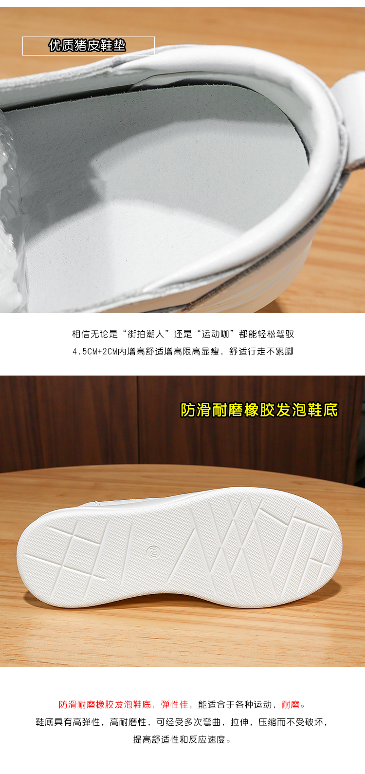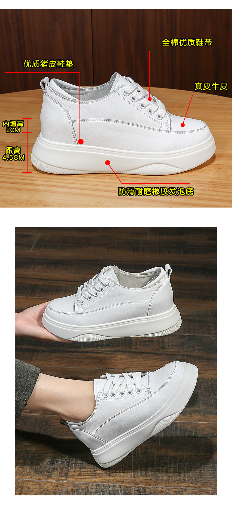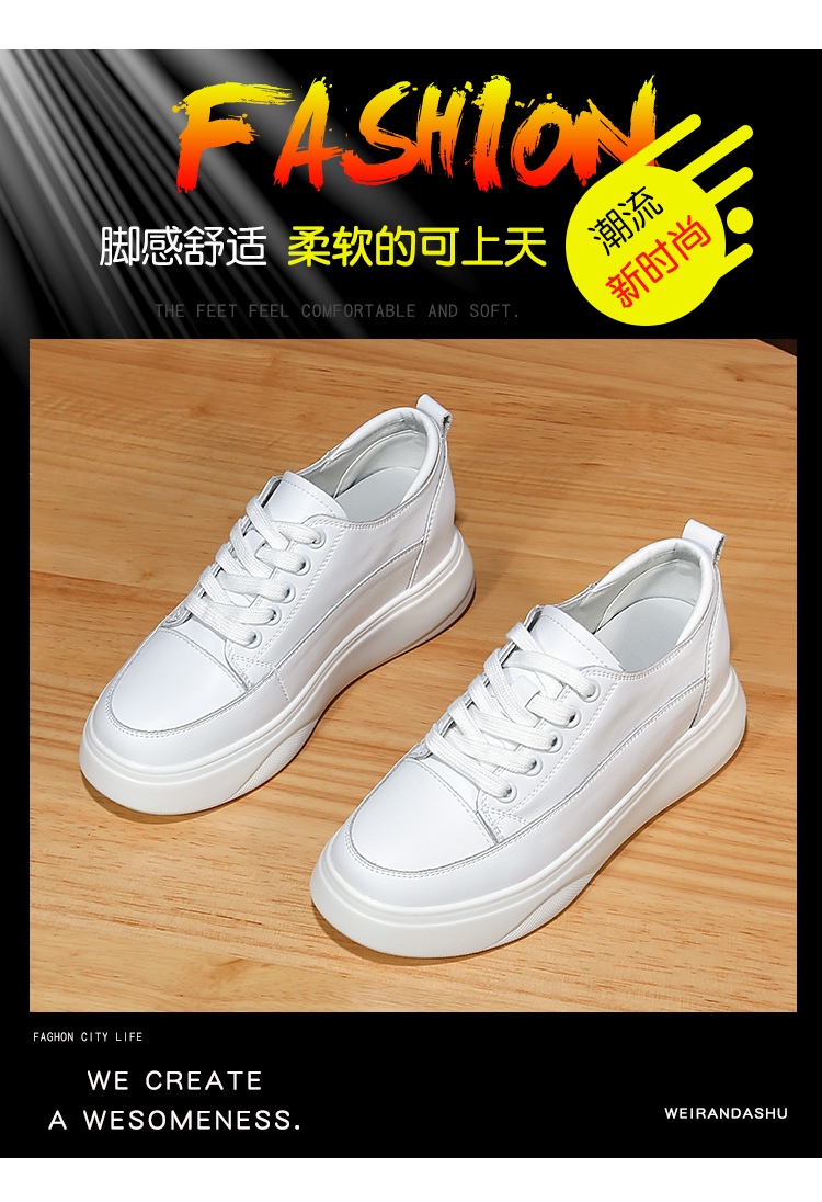 真皮内增高小白鞋女8cm厚底小码31 32春秋坡跟休闲单鞋松糕板鞋女