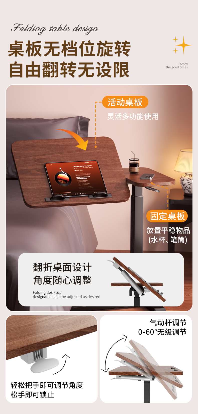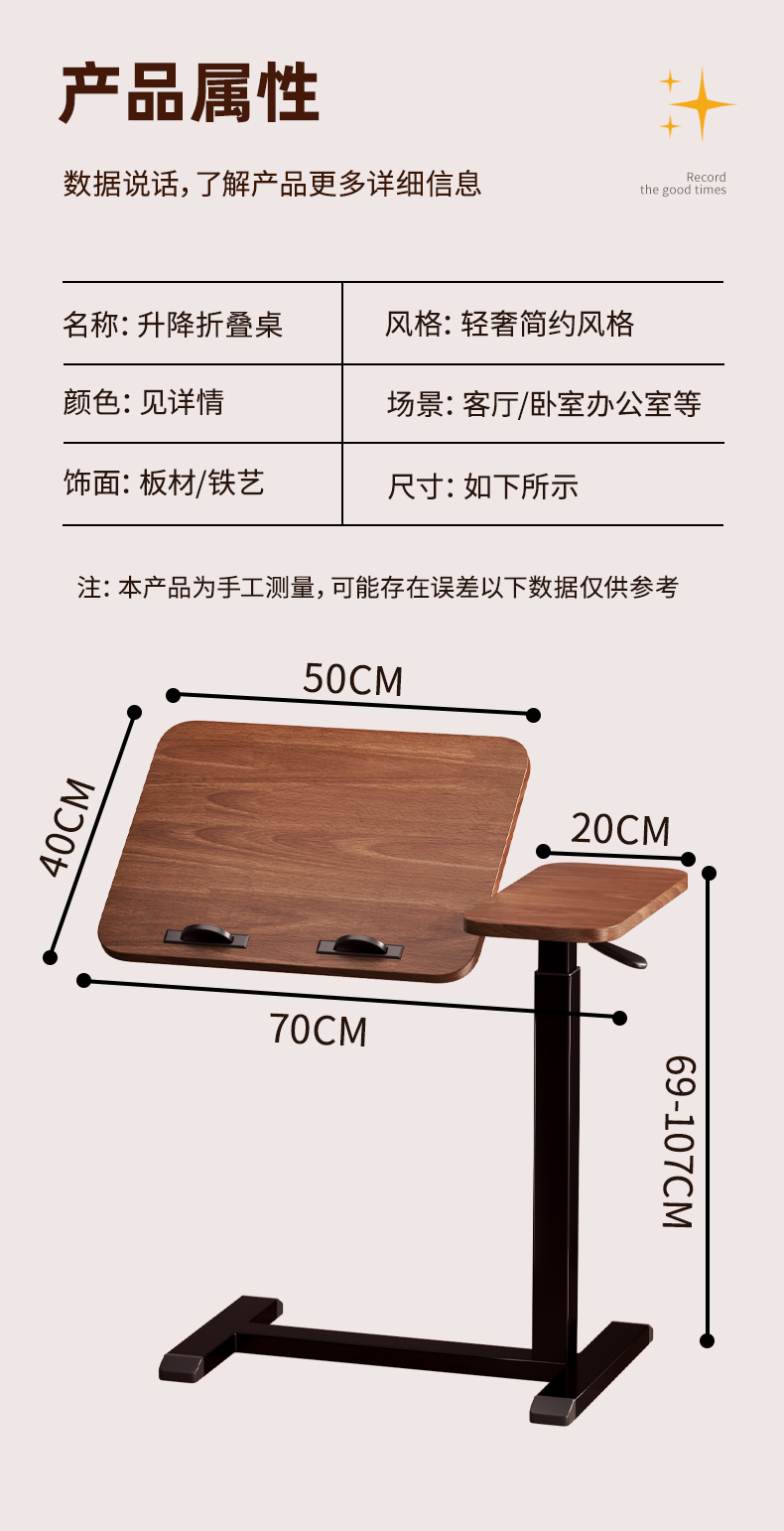 床边桌可升降移动折叠桌电脑桌家用客厅升降桌沙发小书桌办公桌子长方形工作台冬天卧室床头学习桌儿童写字桌