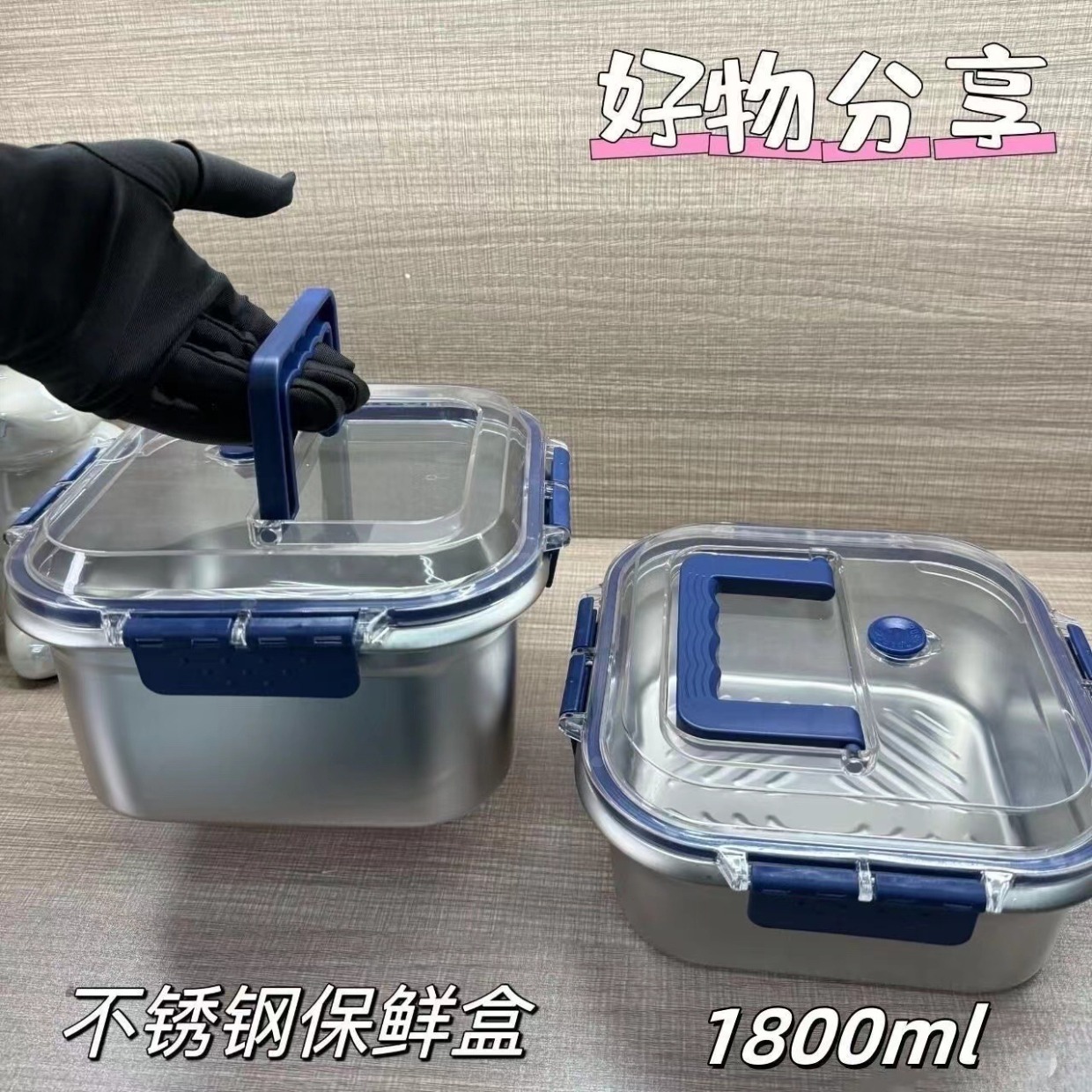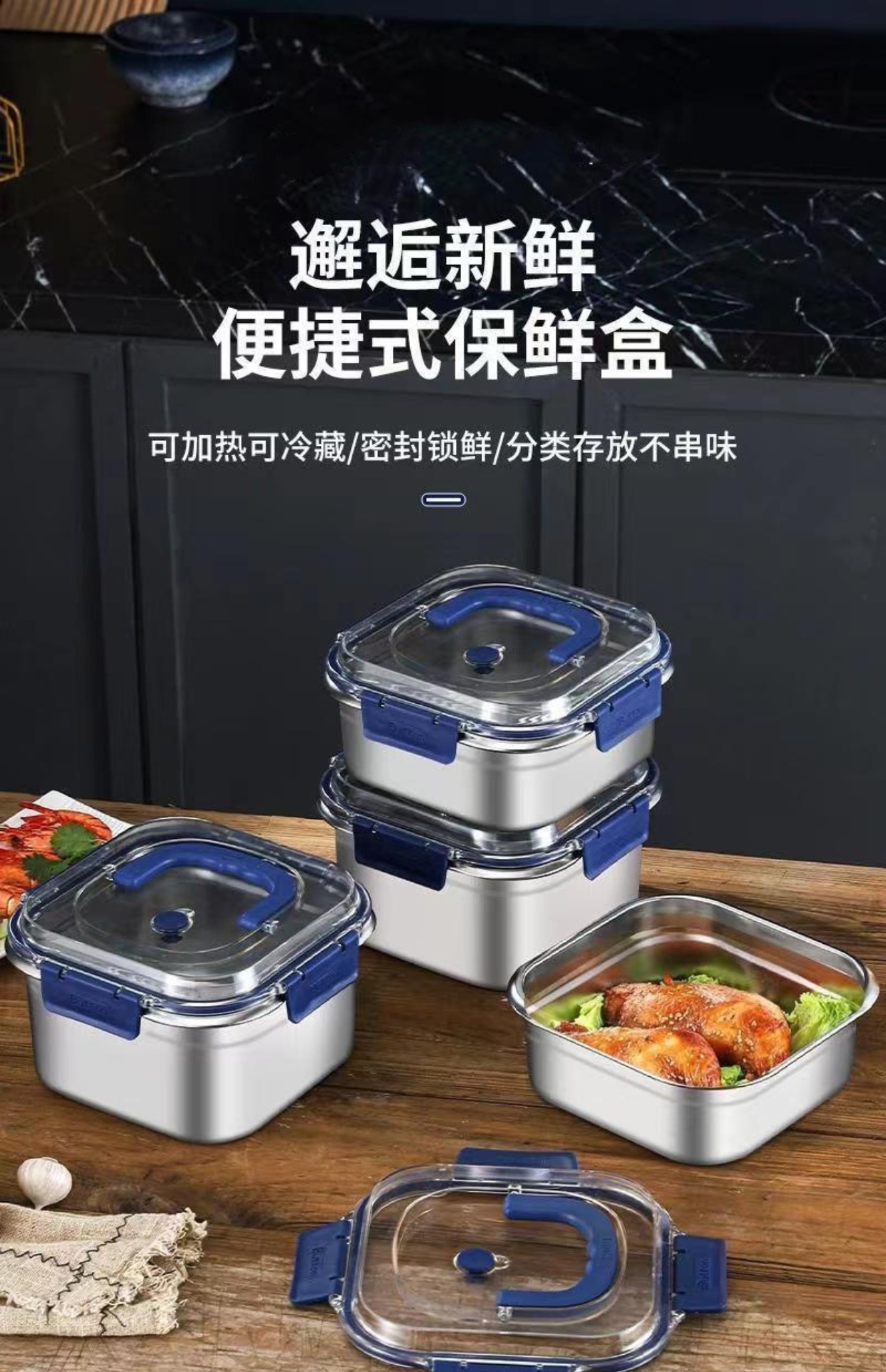 不锈钢保鲜盒家用冰箱密封收纳手提水果餐盒便当盒饭盒