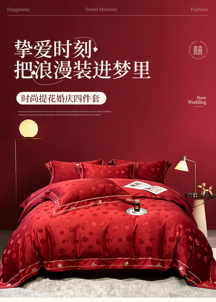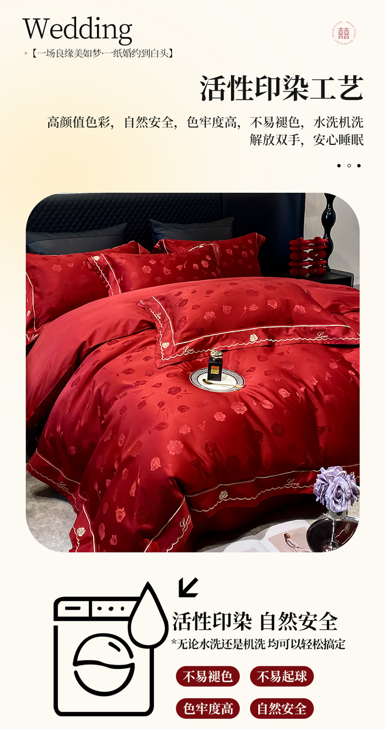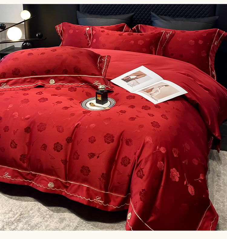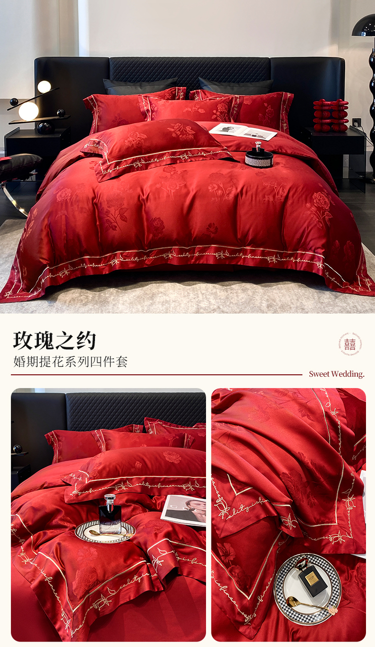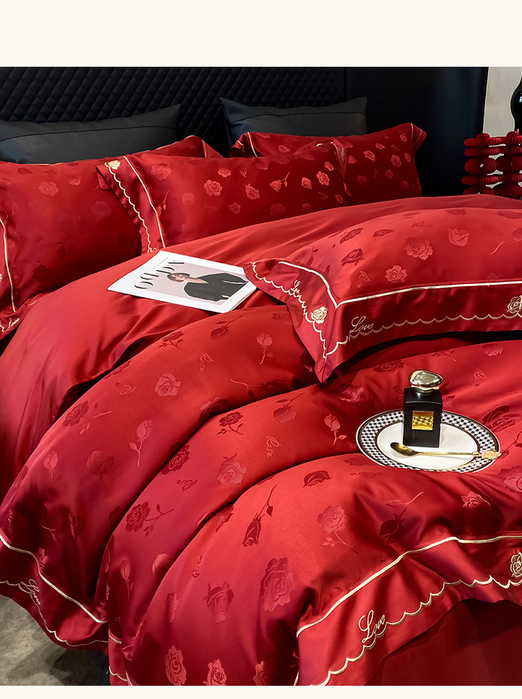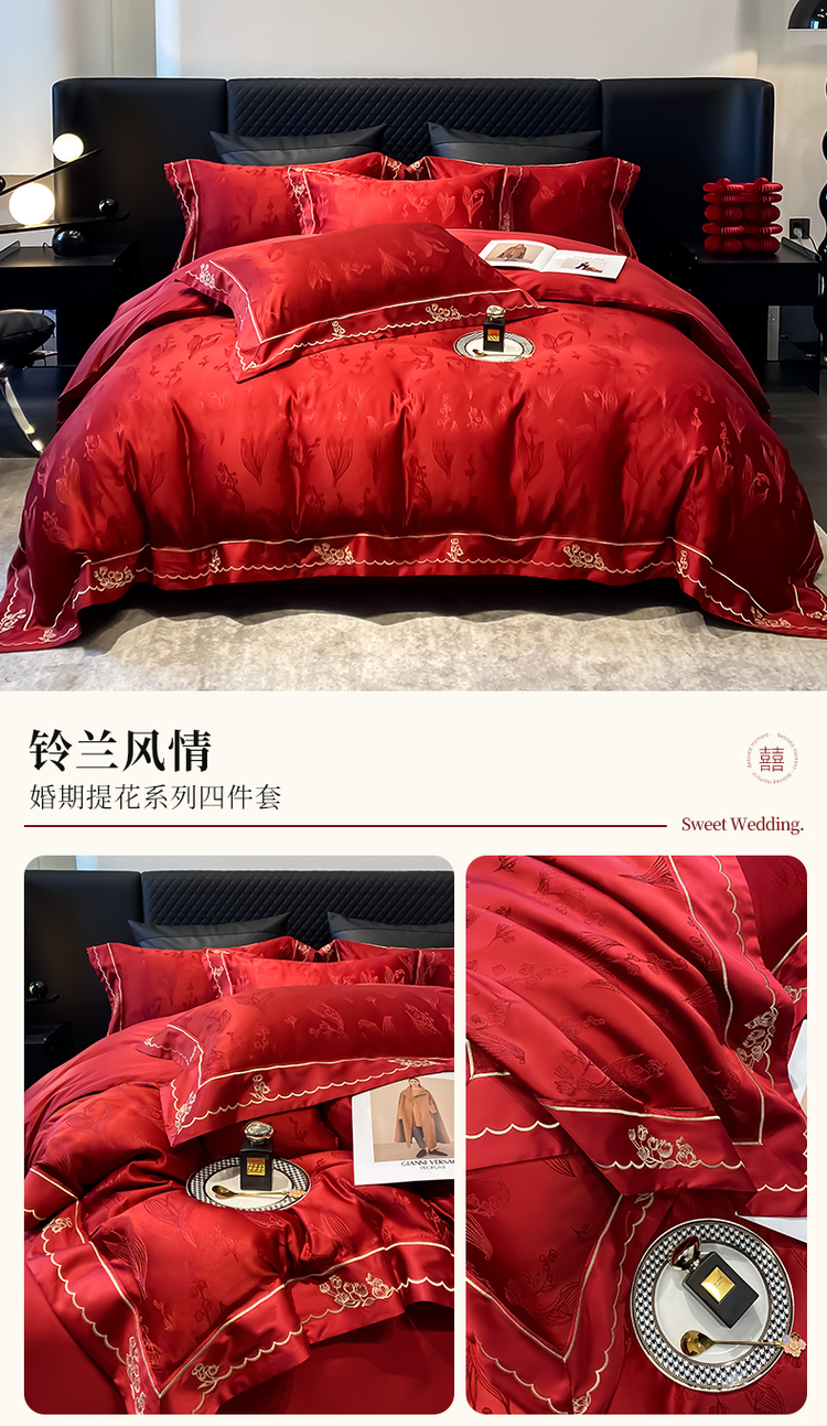 中式婚庆大红色四件套高档提花结婚被套新婚床上用品婚房陪嫁喜被