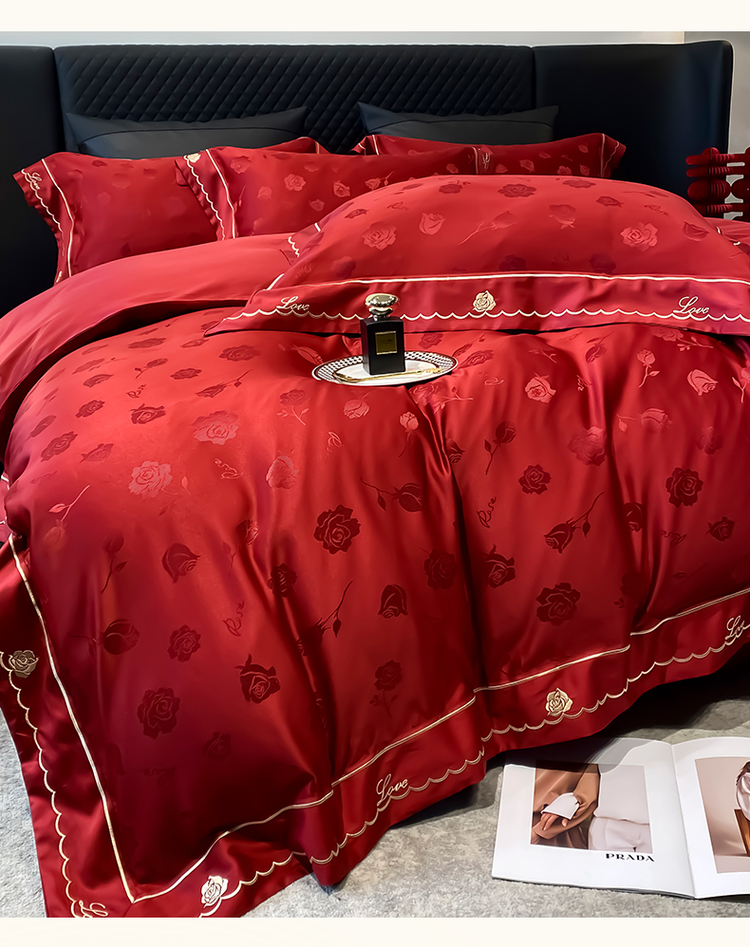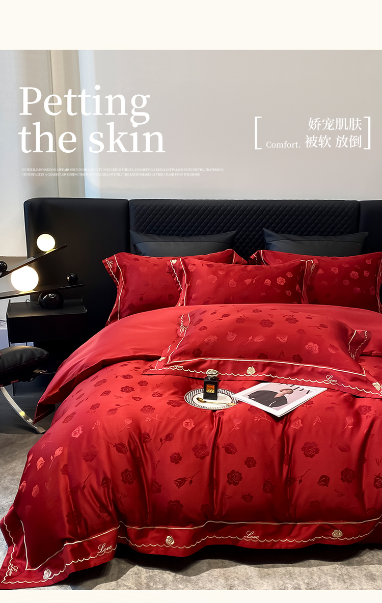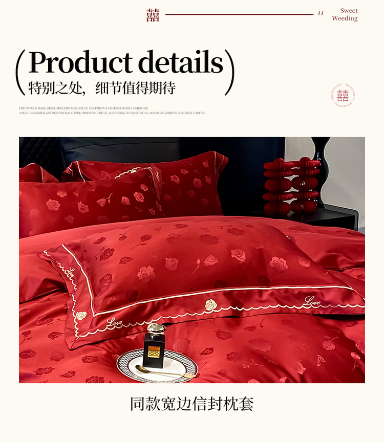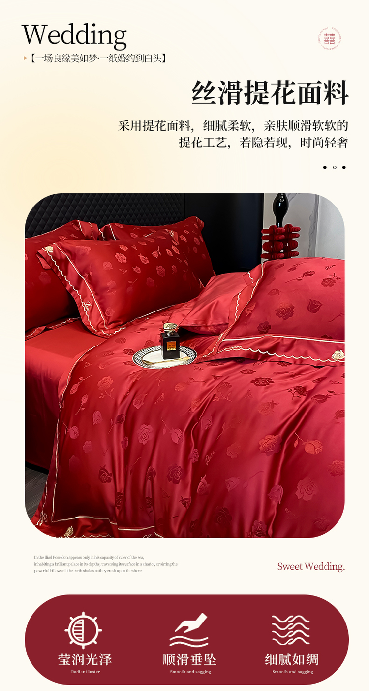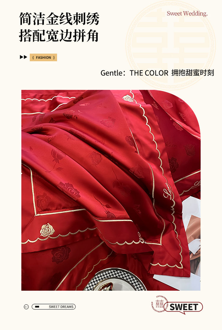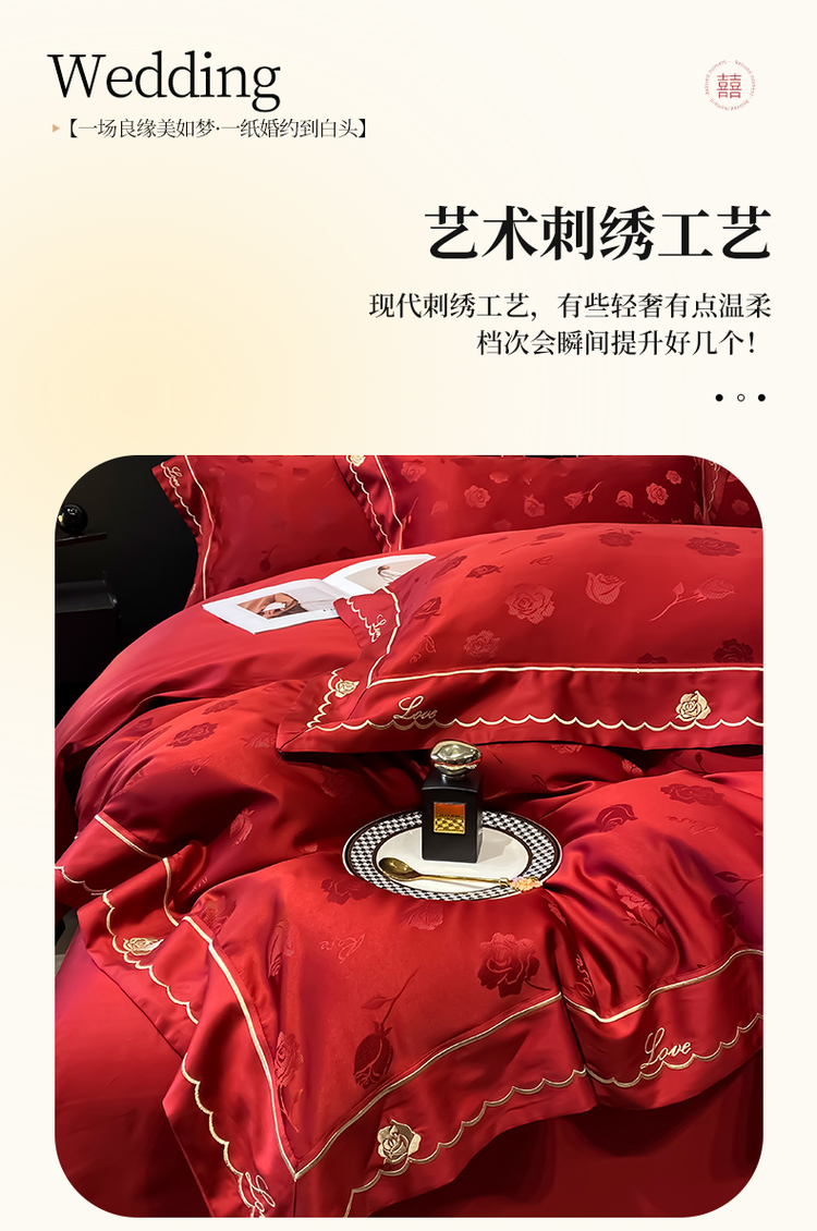 中式婚庆大红色四件套高档提花结婚被套新婚床上用品婚房陪嫁喜被