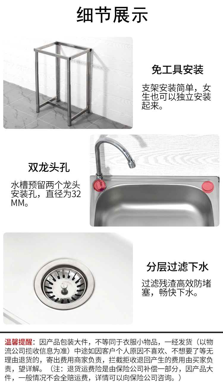厨房水池不锈钢水槽带支架洗菜盆洗碗池家用商用阳和台洗手池小号