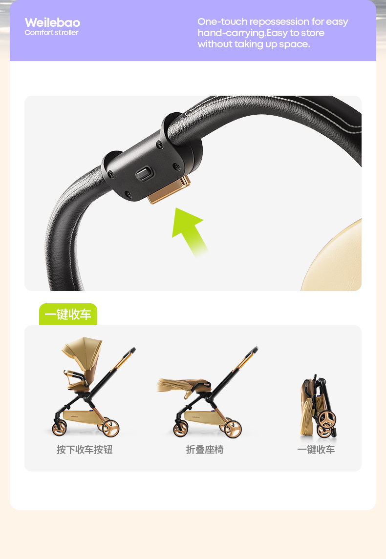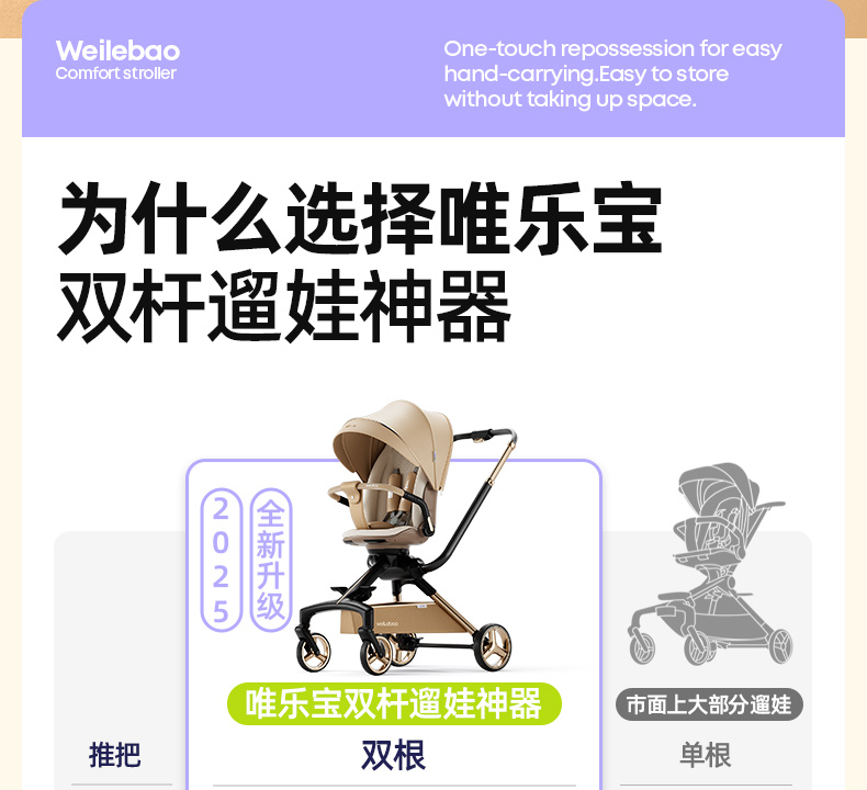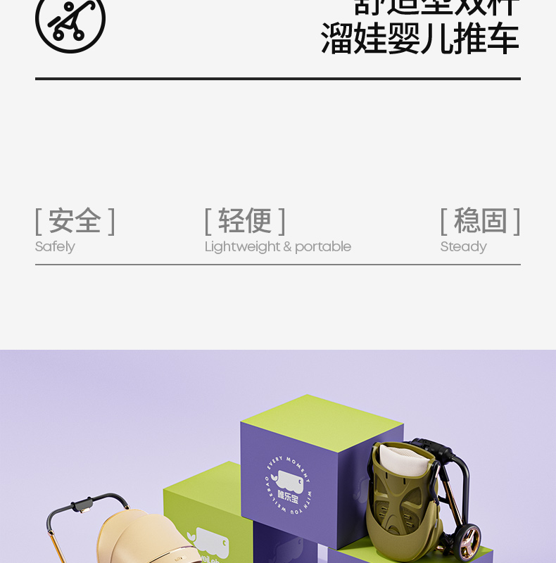 唯乐宝灵跃溜娃神器可坐躺双向高景观轻便折叠婴儿推车婴幼儿遛娃