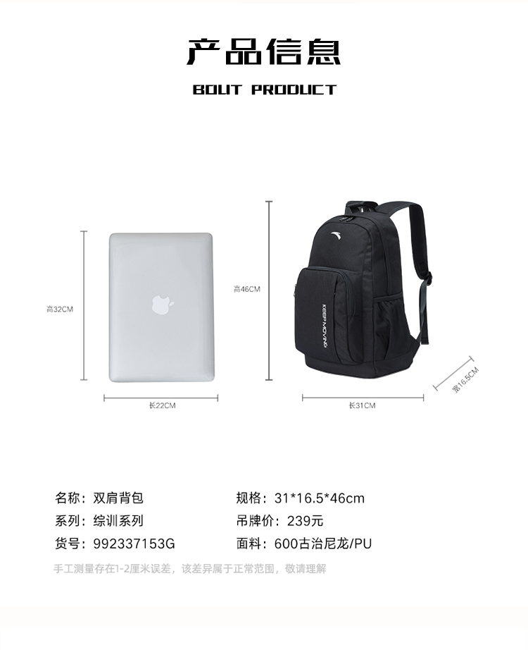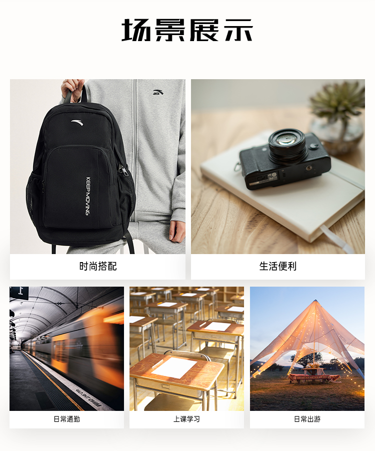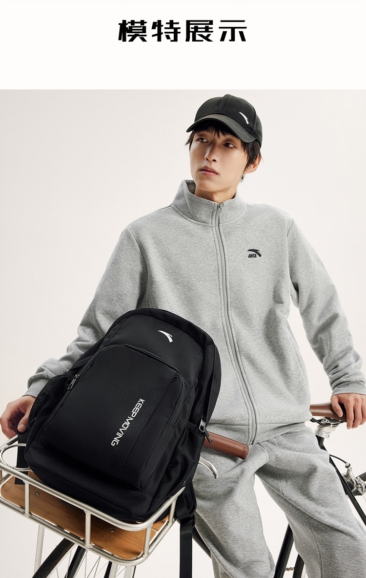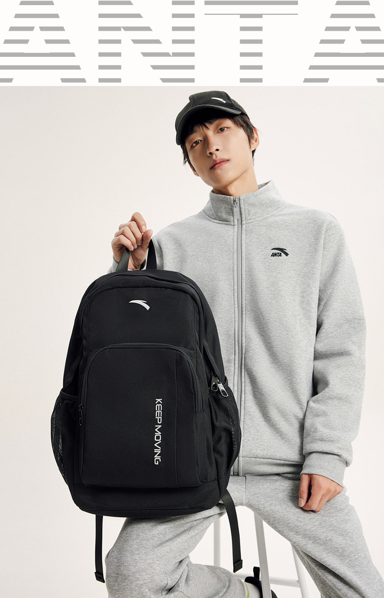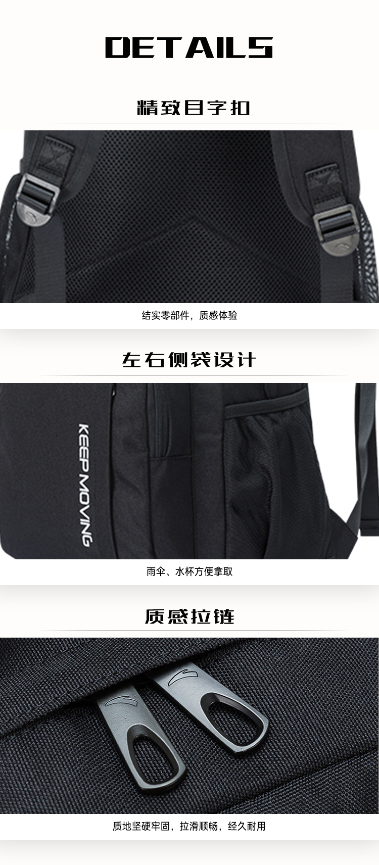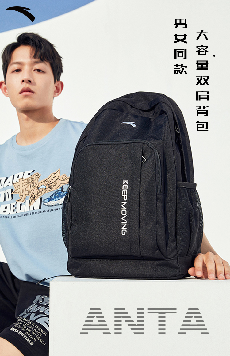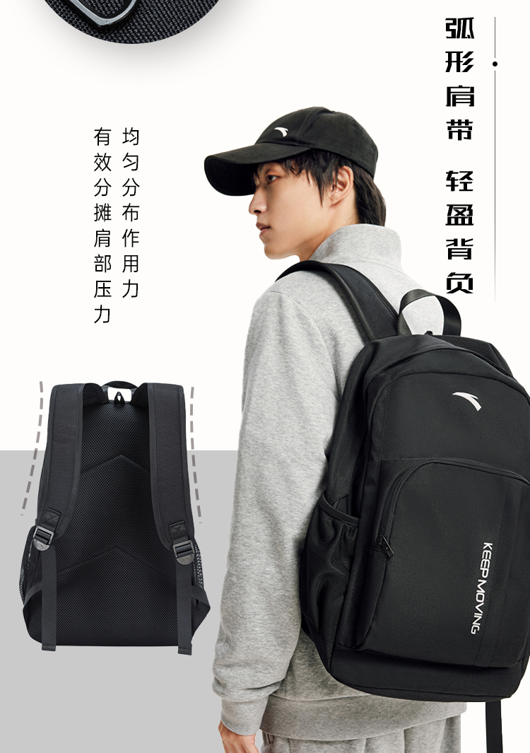 安踏双肩包2025新款男女黑色旅行运动包电脑双肩背包初中学生书包
