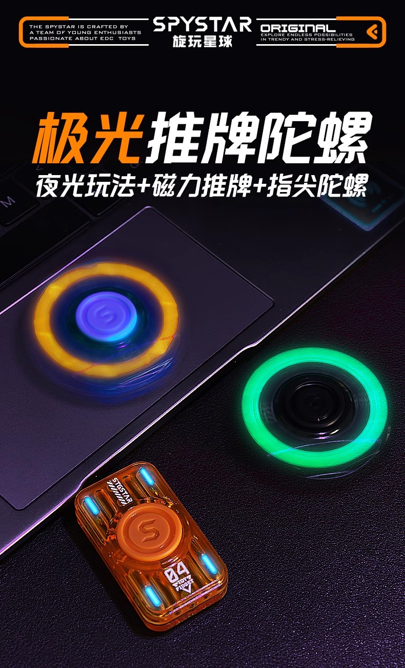 EDC磁力推牌指尖陀螺二合一夜光段落啪啪币指间解压神器减压玩具