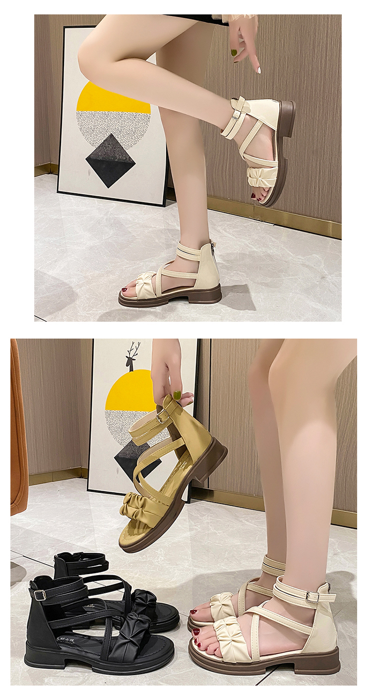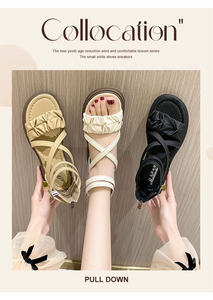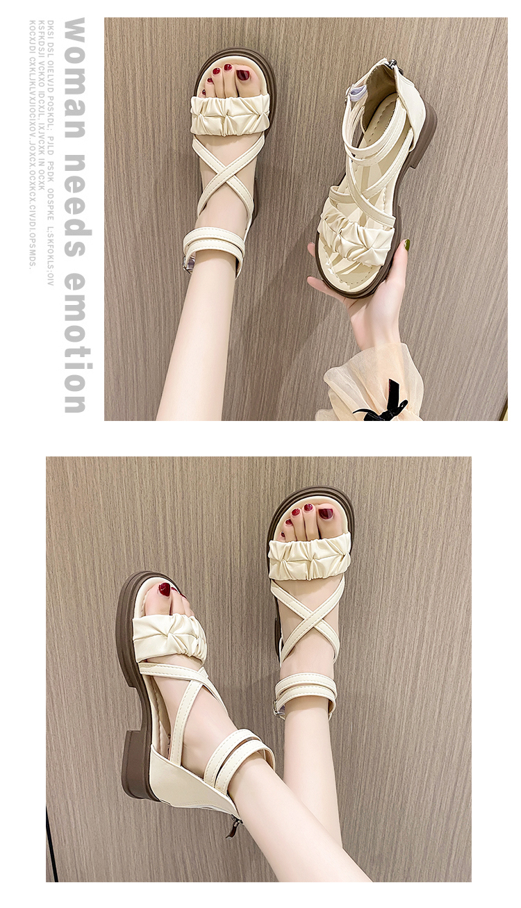 韩版仙女风温柔厚底罗马凉鞋软底2025夏季女学生百搭平底沙滩鞋子