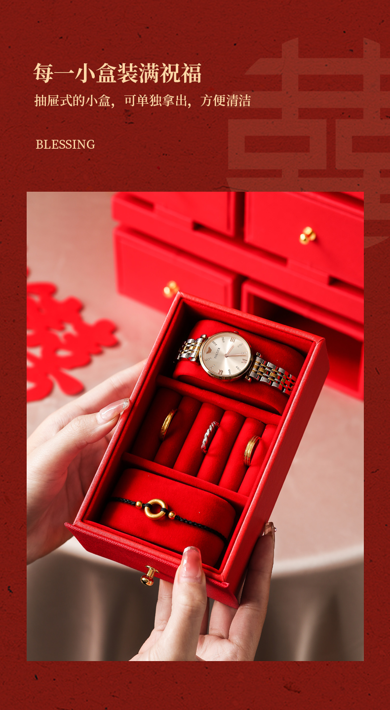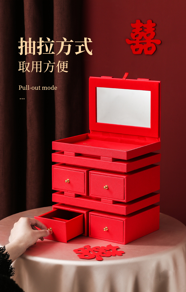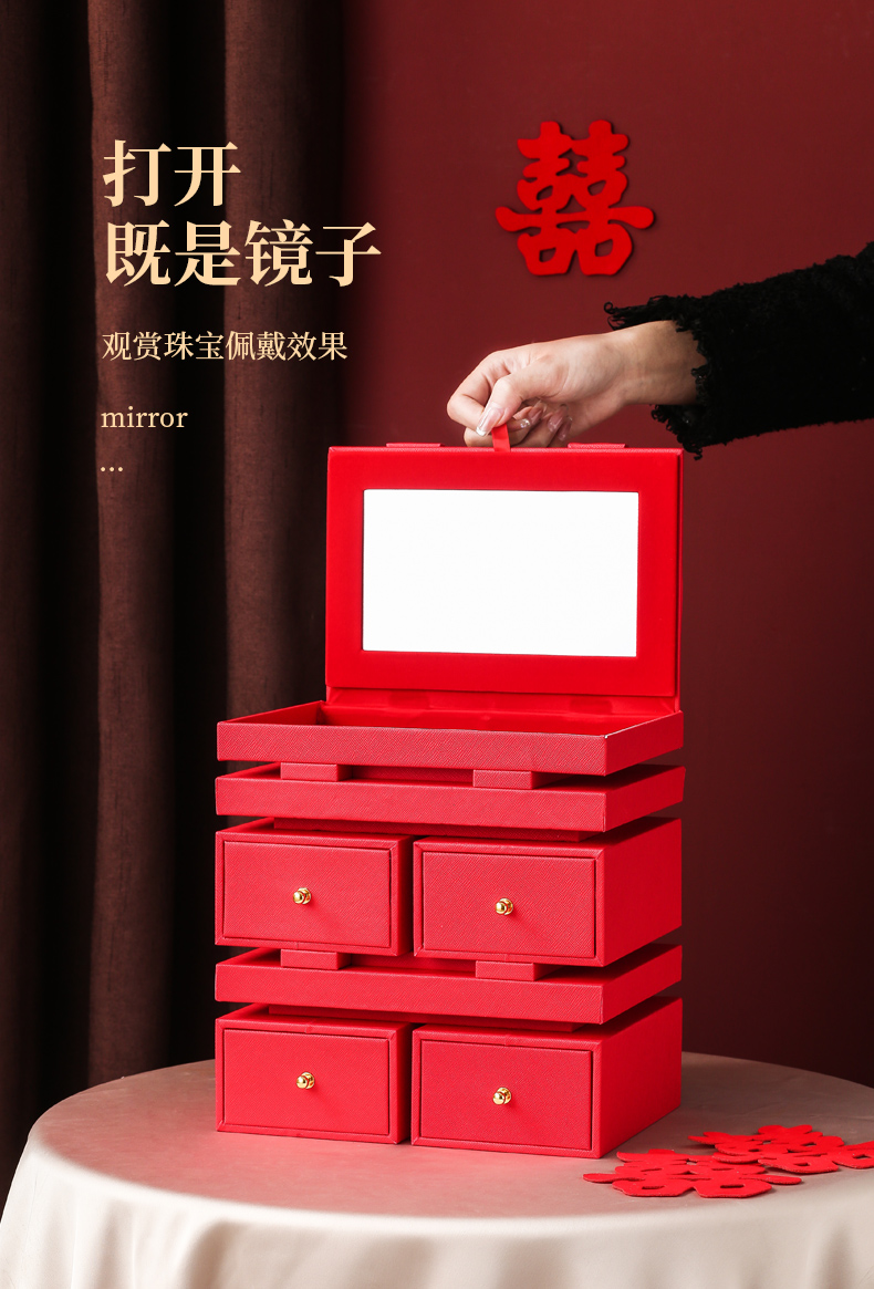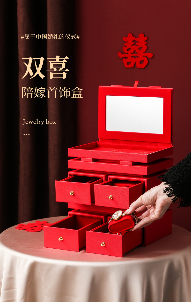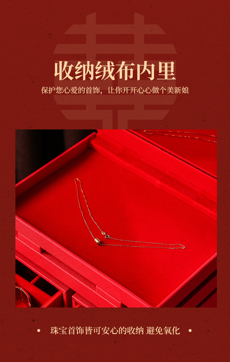 双喜囍字陪嫁用品结婚礼物首饰盒高级感复古珠宝盒黄金首饰收纳盒