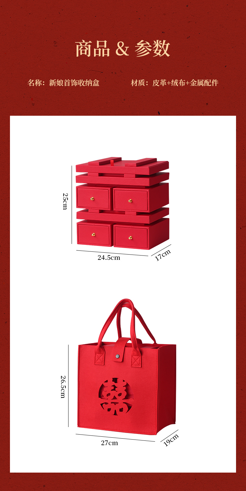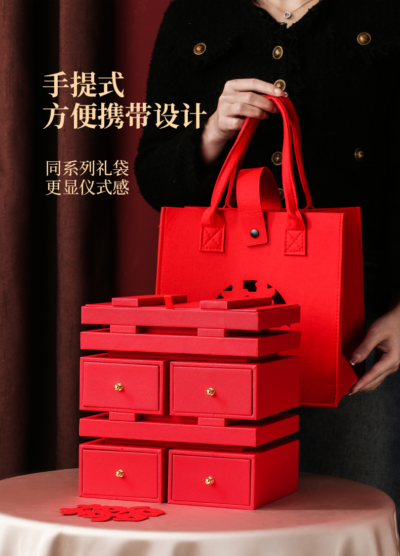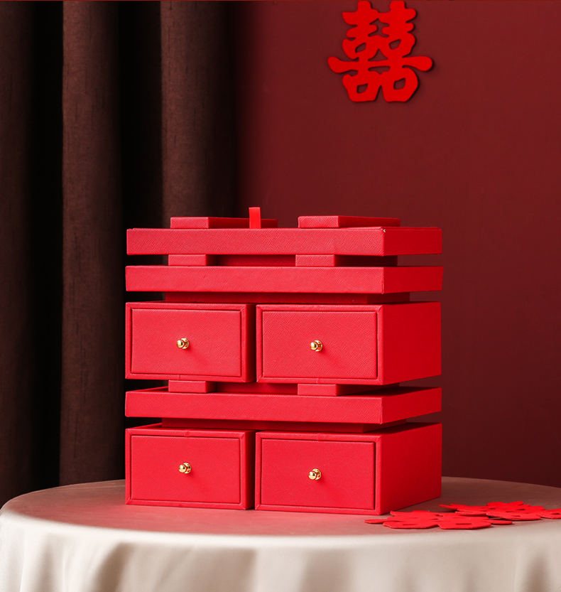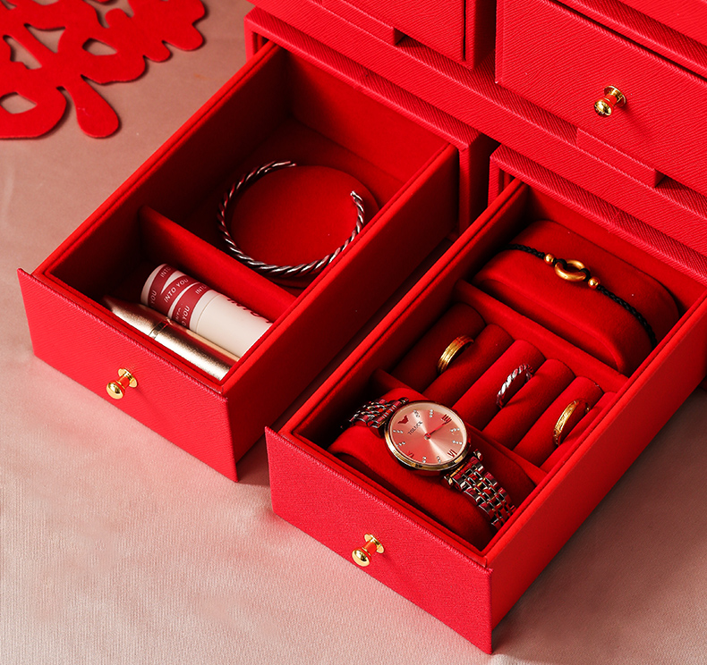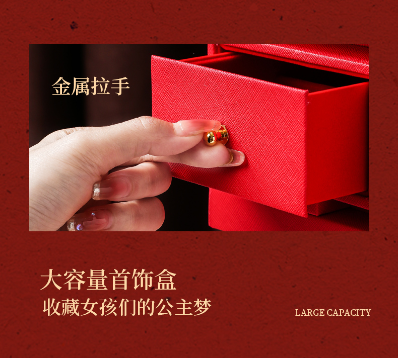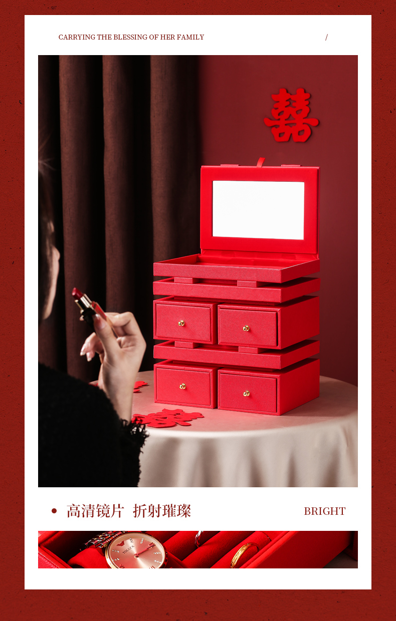 双喜囍字陪嫁用品结婚礼物首饰盒高级感复古珠宝盒黄金首饰收纳盒
