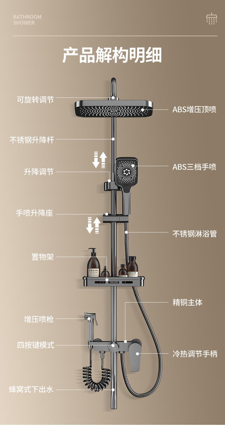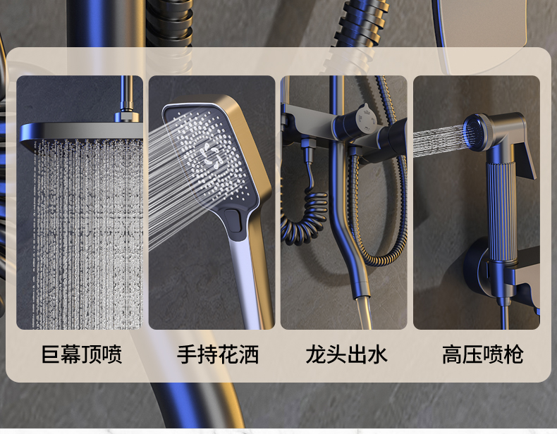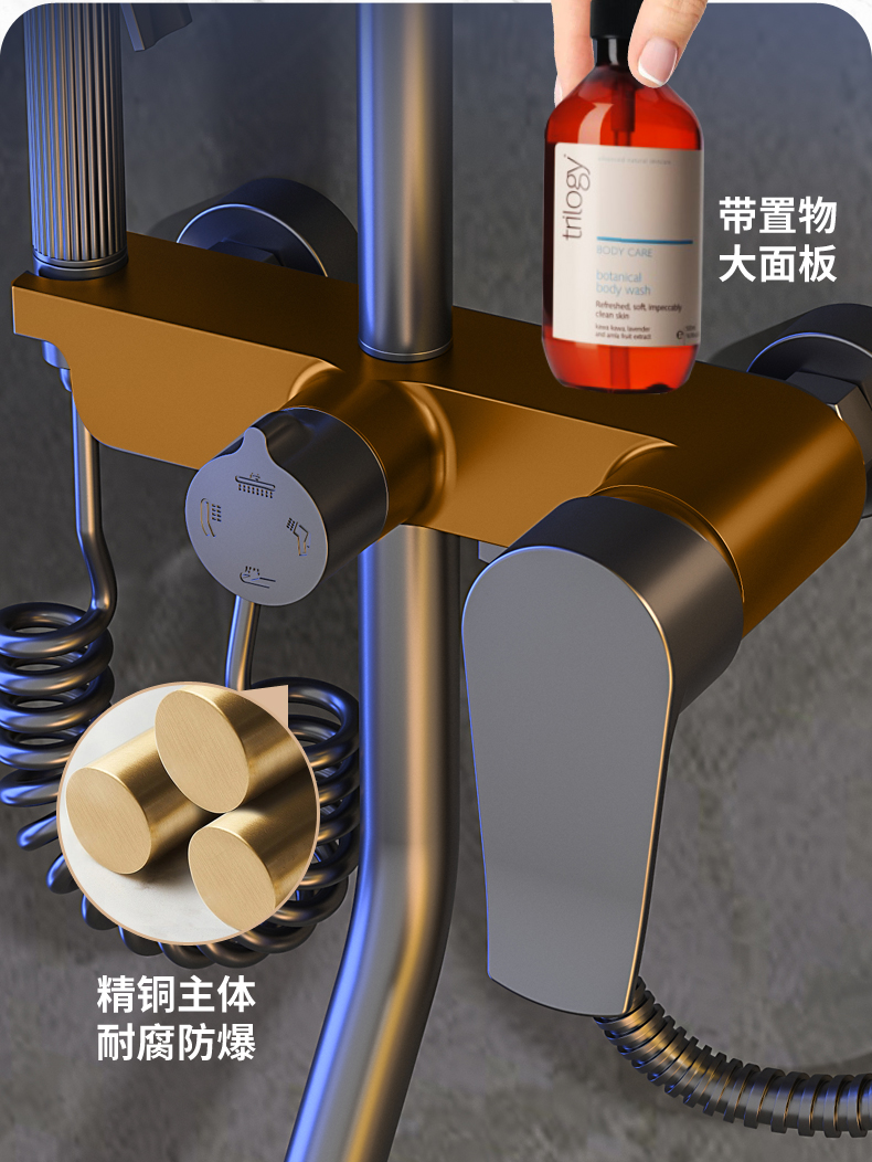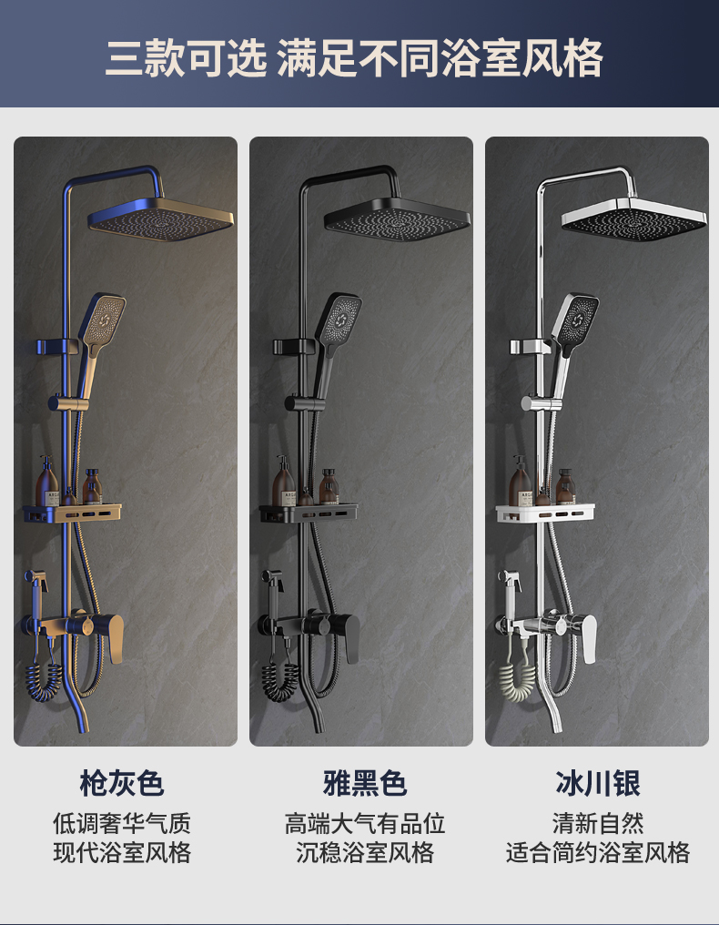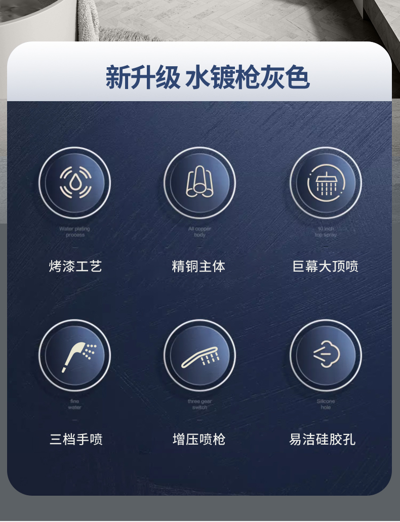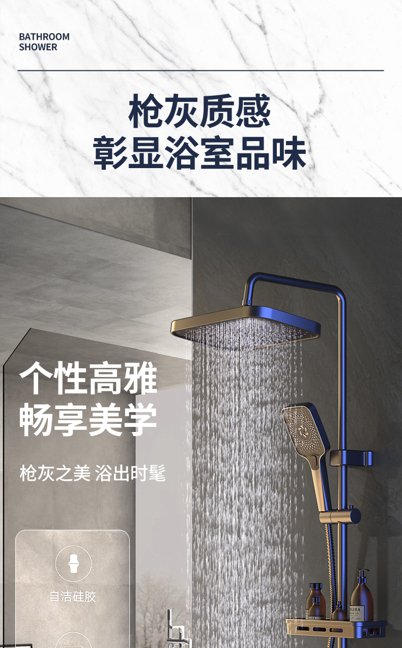 全铜淋浴花洒套装卫浴增压恒温数显枪灰浴室卫生间花洒头淋雨浴器