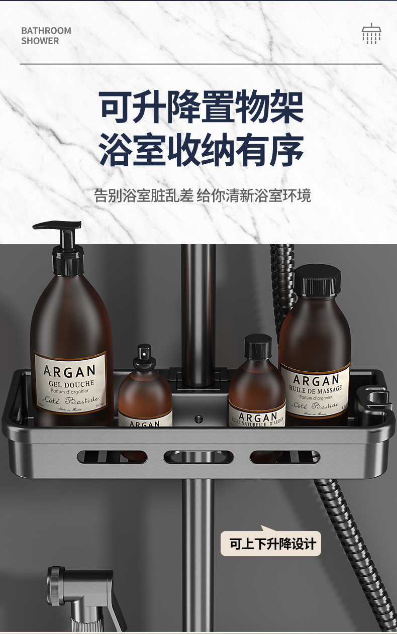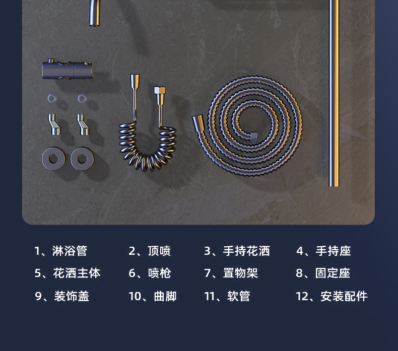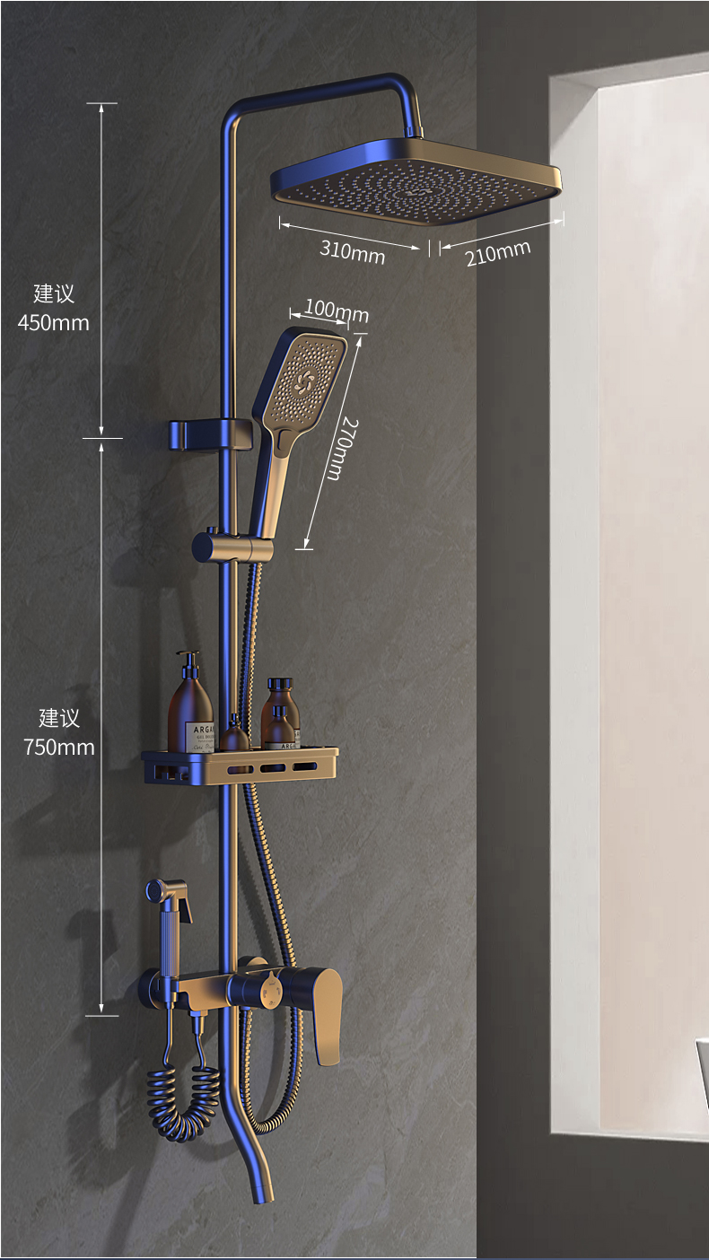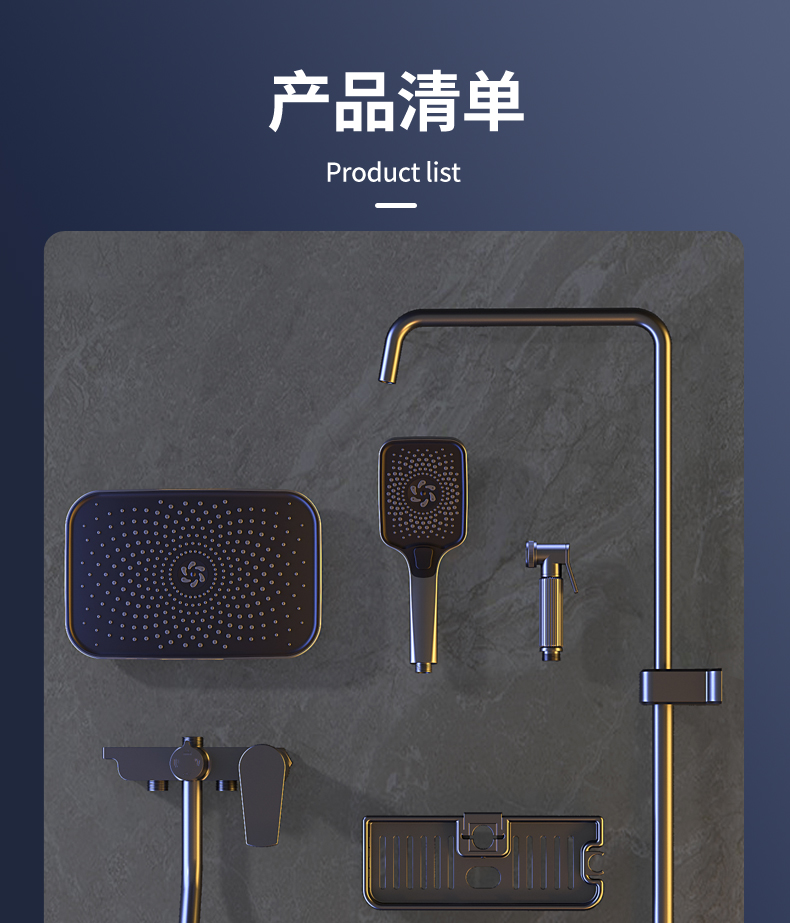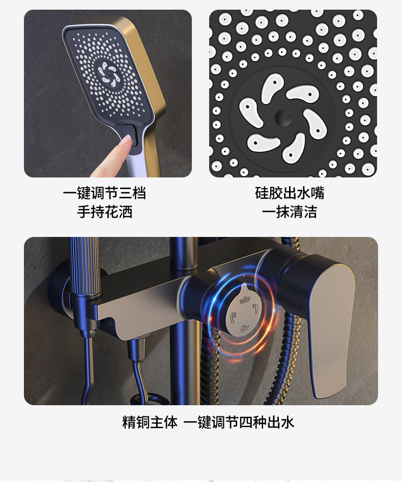 全铜淋浴花洒套装卫浴增压恒温数显枪灰浴室卫生间花洒头淋雨浴器