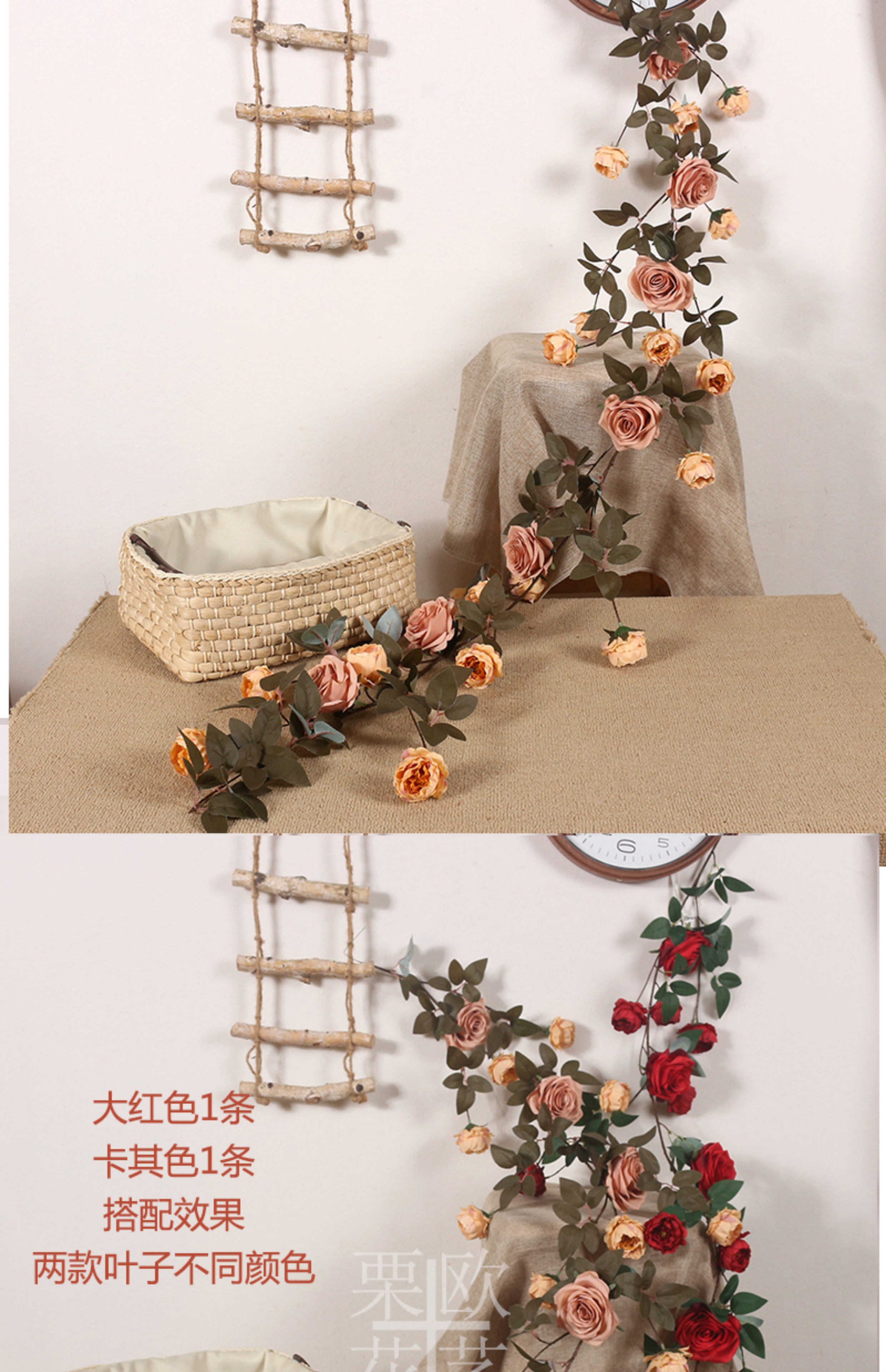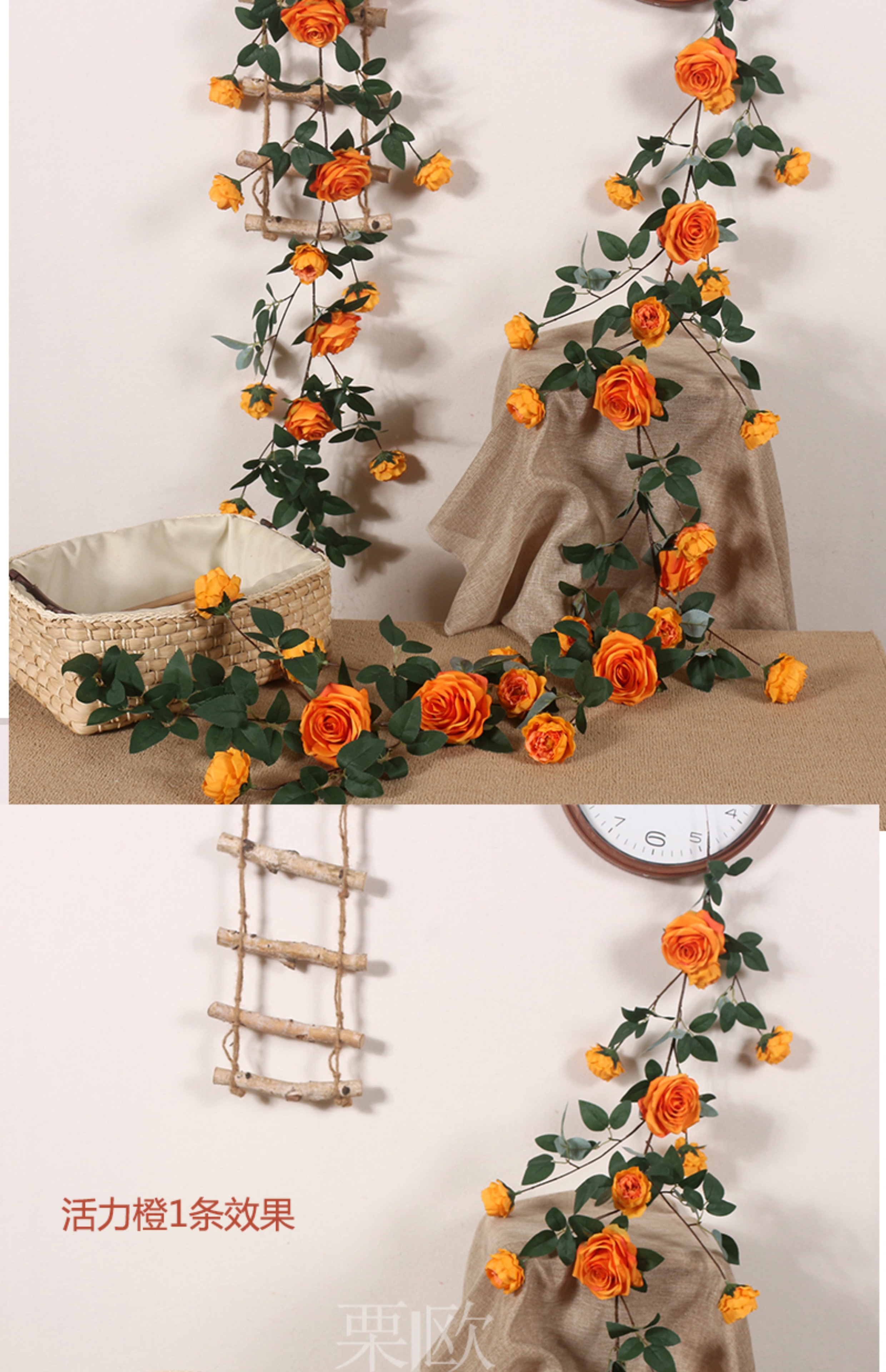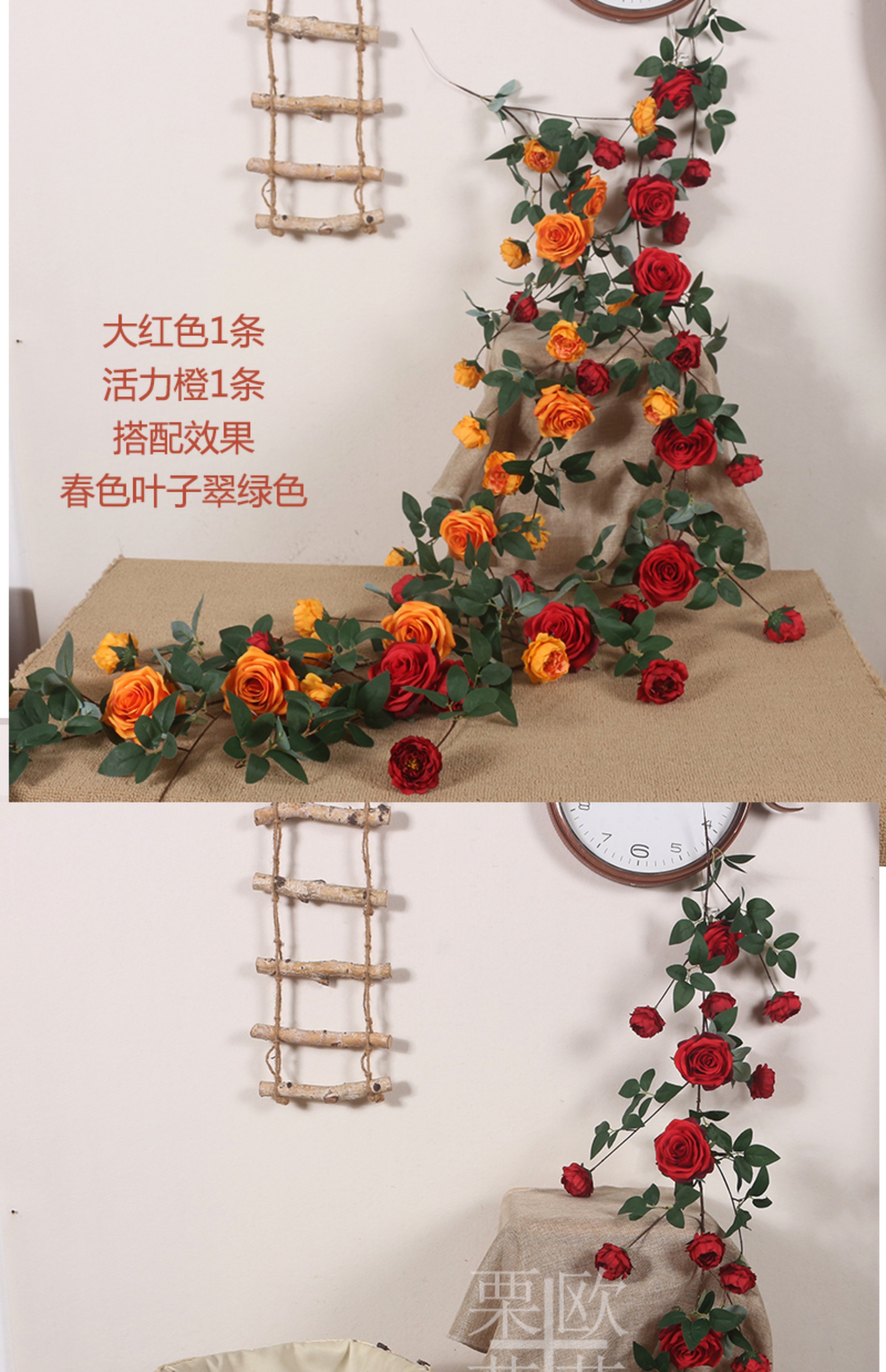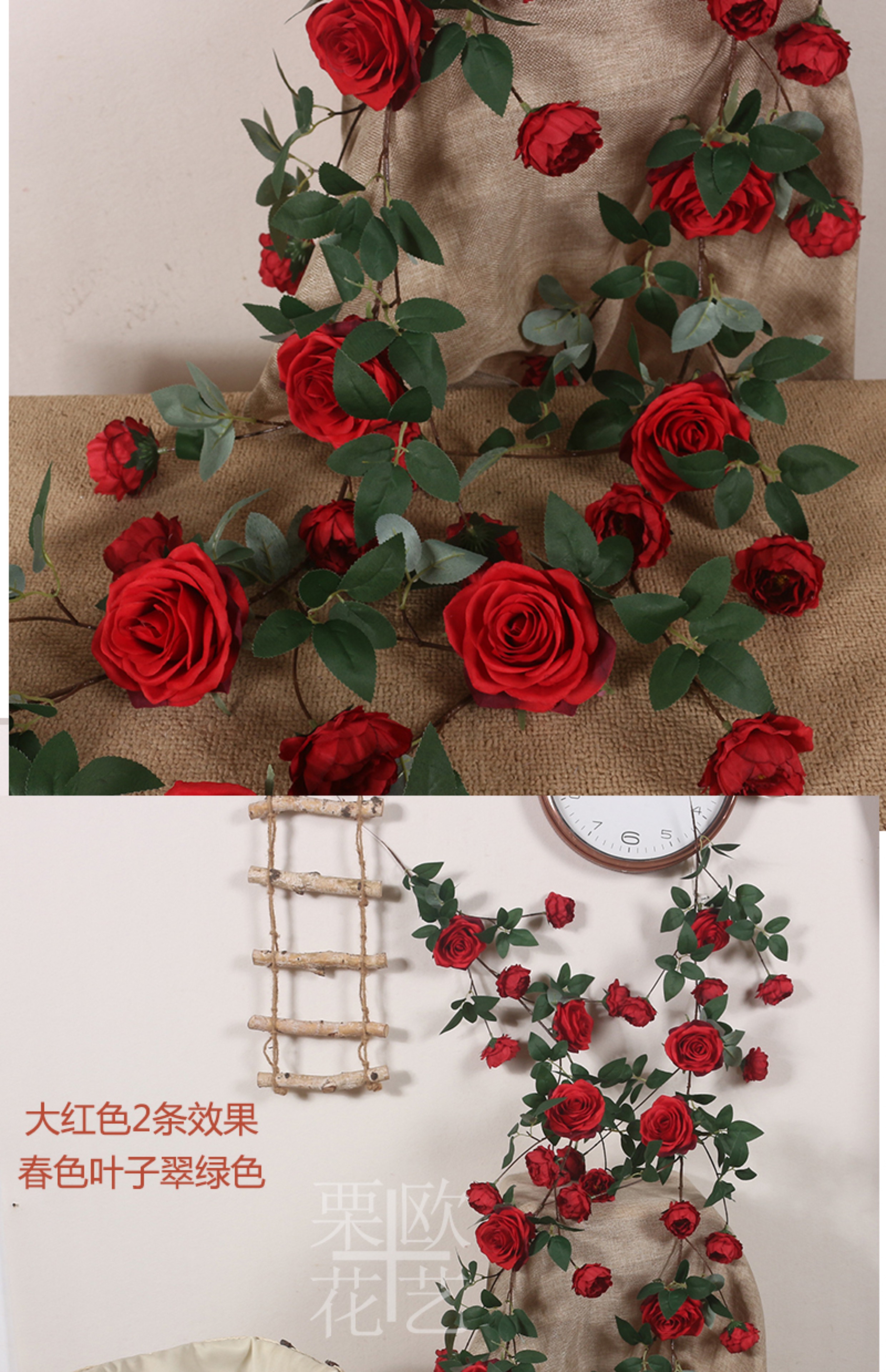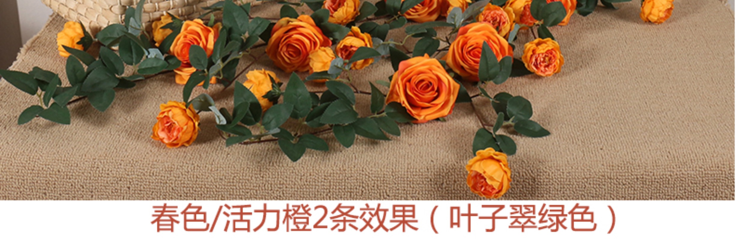 庭院造景布置仿真玫瑰花藤条拍照花墙花条空调管道遮丑装饰假藤蔓