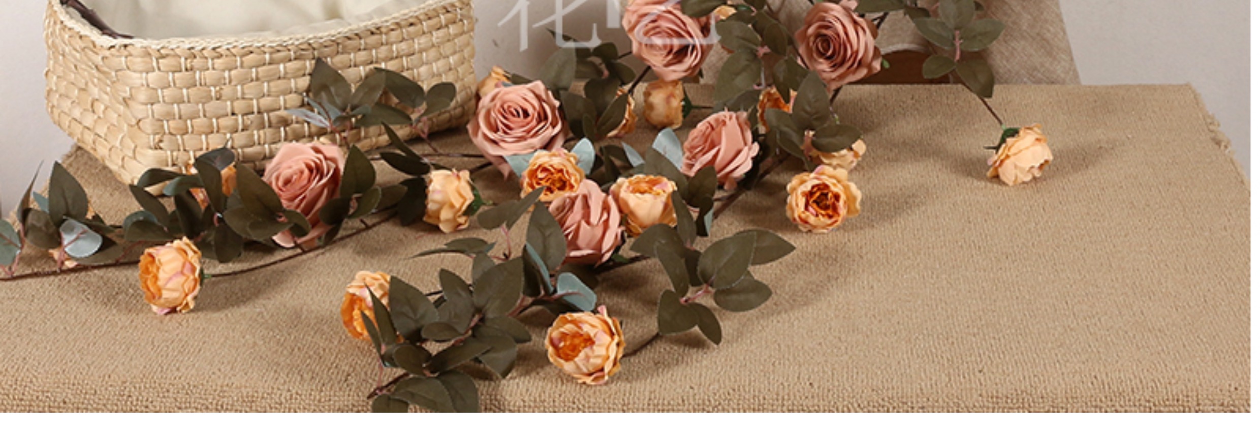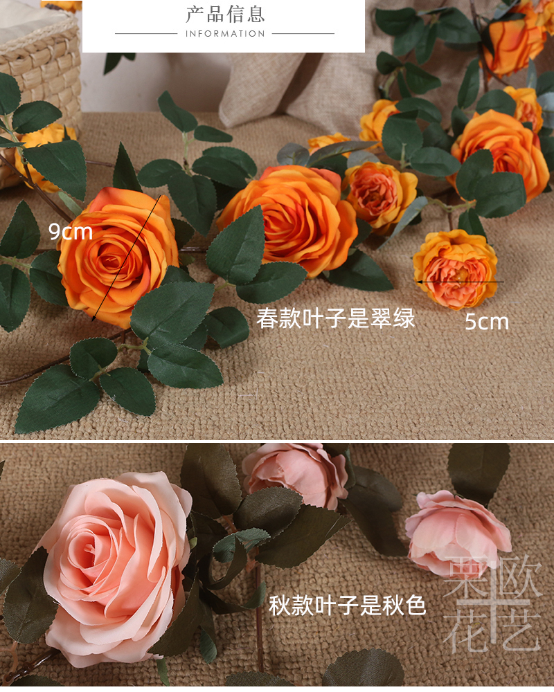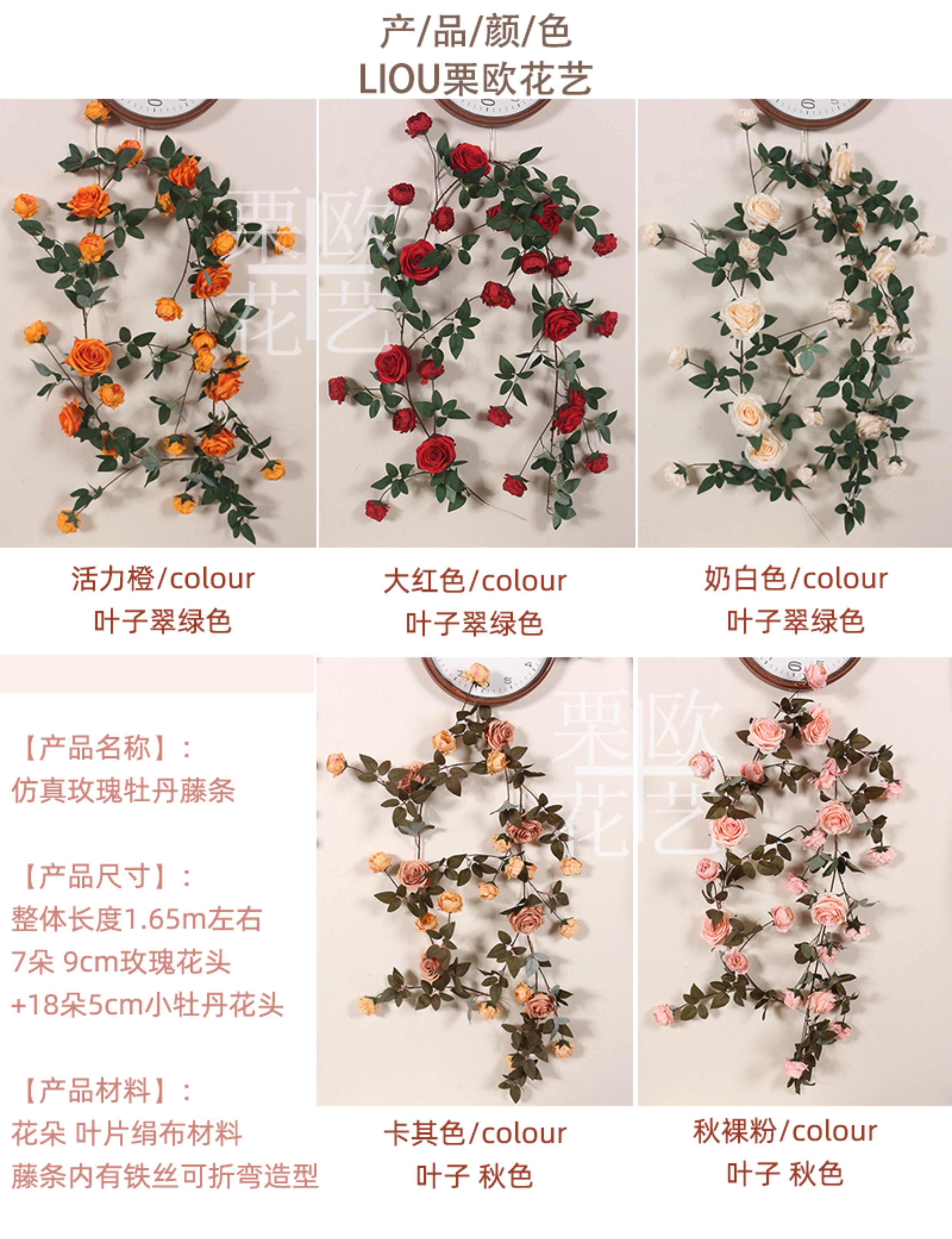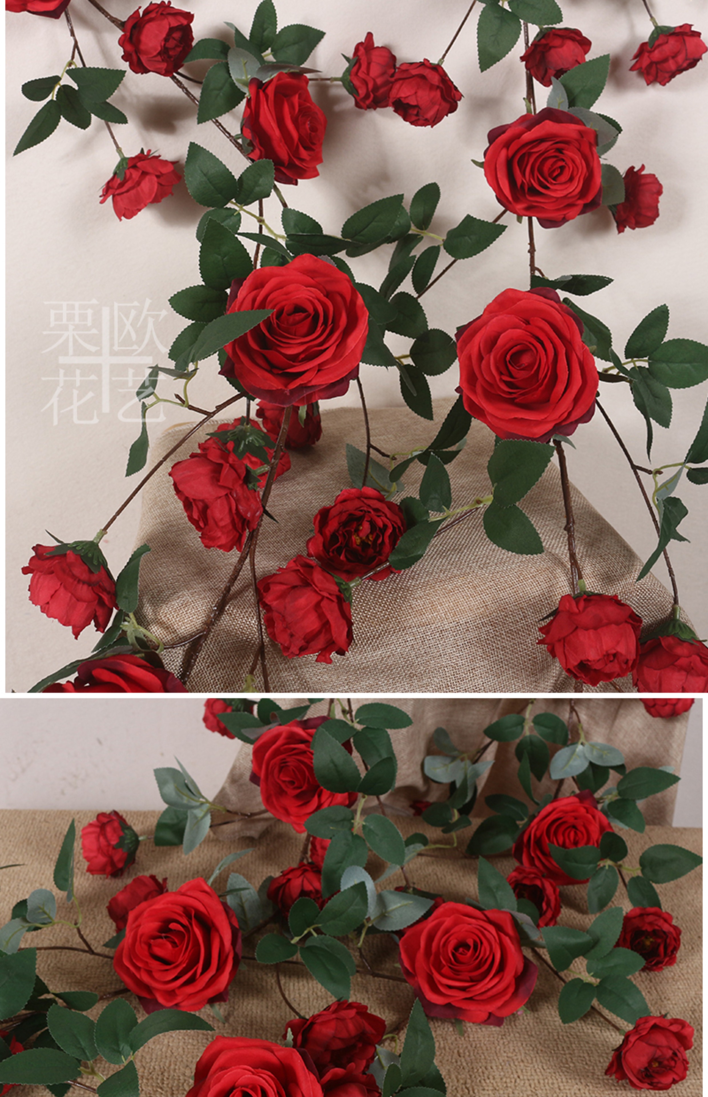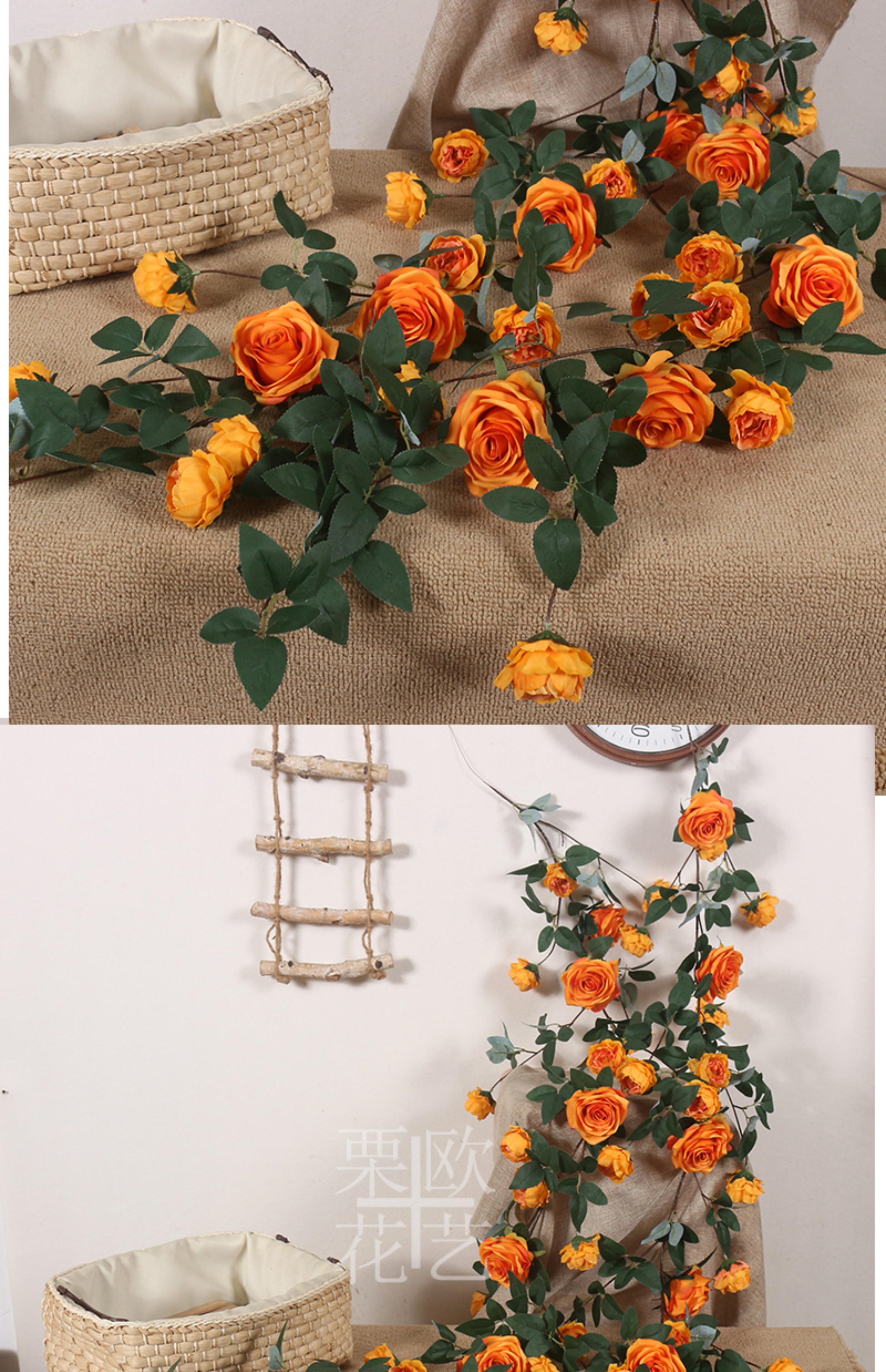 庭院造景布置仿真玫瑰花藤条拍照花墙花条空调管道遮丑装饰假藤蔓