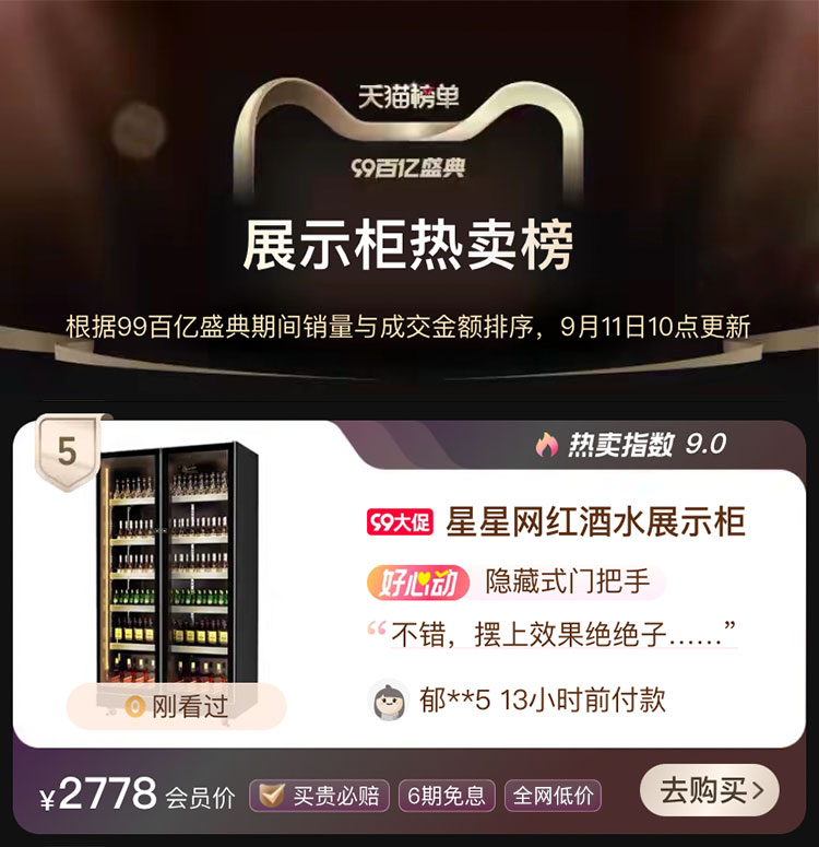 星星网红酒水展示柜超市冰箱冷藏饮料柜风冷啤酒柜冷柜商用旗舰店