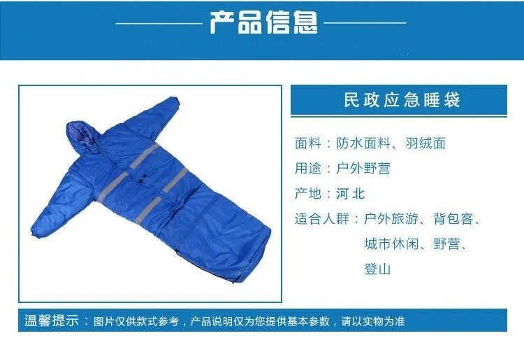 民政救灾人形睡袋大衣式加厚保暖棉睡囊野外登山露营带袖防潮睡袋