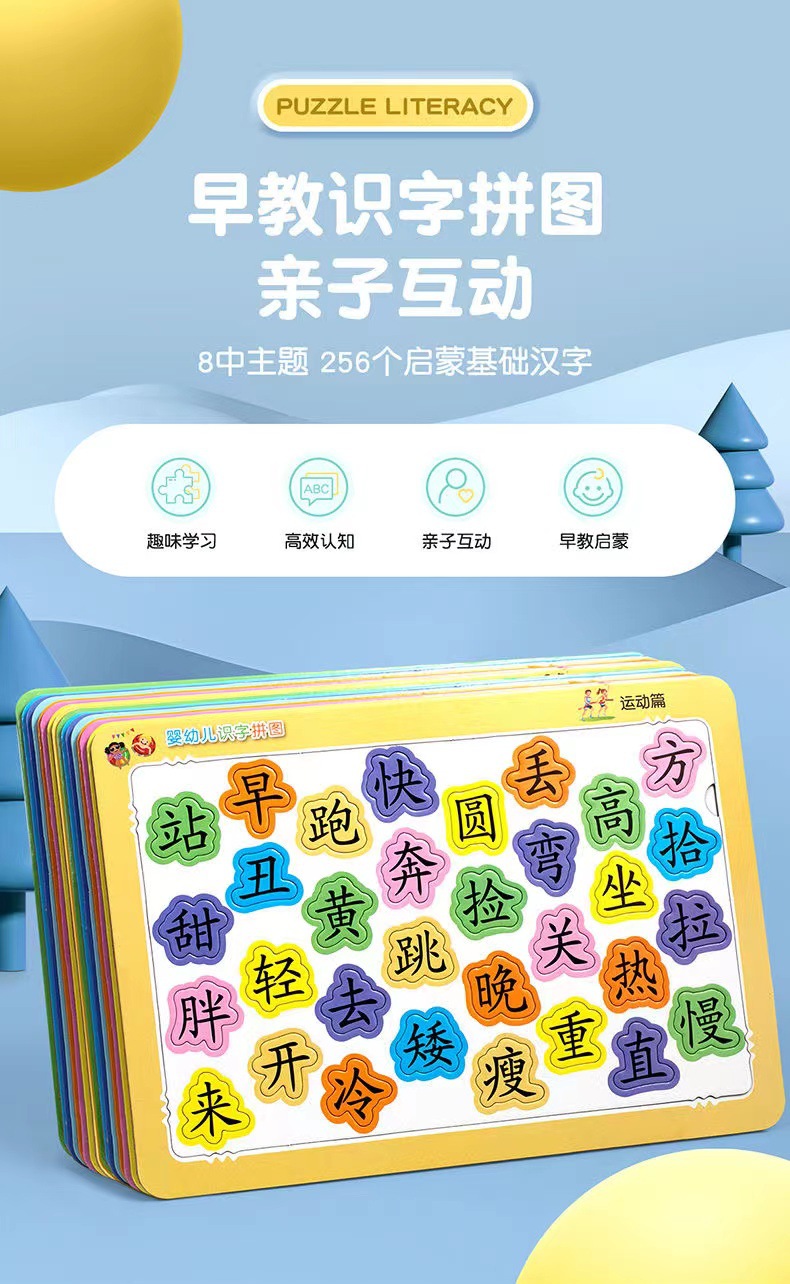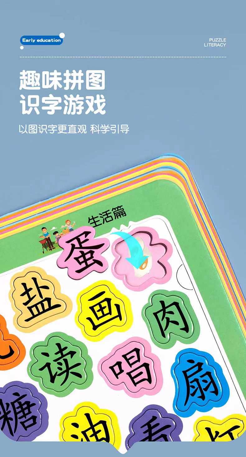 宝宝识字卡片拼图儿童趣味智力识物卡幼儿园早教学习益智玩具拼板