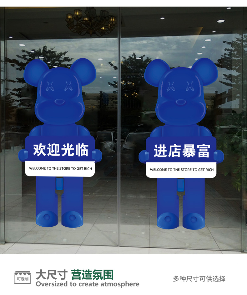店门口吸引人暴力熊麻将馆玻璃门贴烧烤火锅美发理发店装饰画壁纸