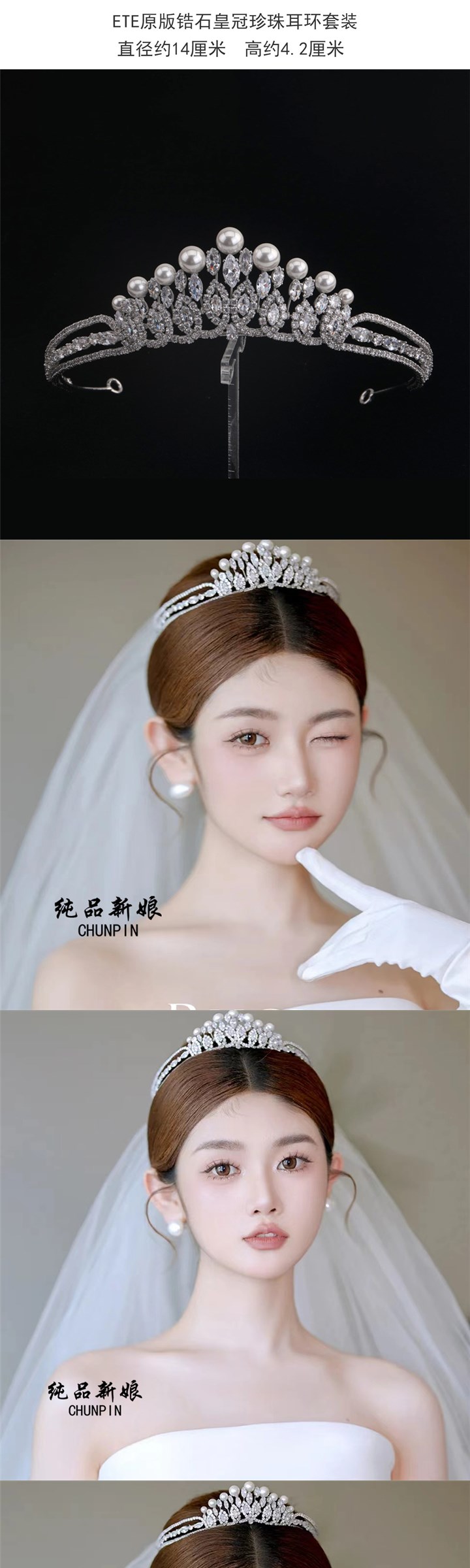 新款高级新娘锆石皇冠头饰韩式简约公主王冠发饰缎面鱼尾婚纱配饰