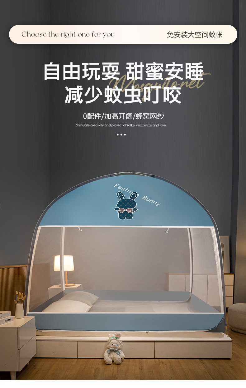蒙古包蚊帐2025新款家用卧室免安装儿童防摔纹帐宿舍夏季1米5新型