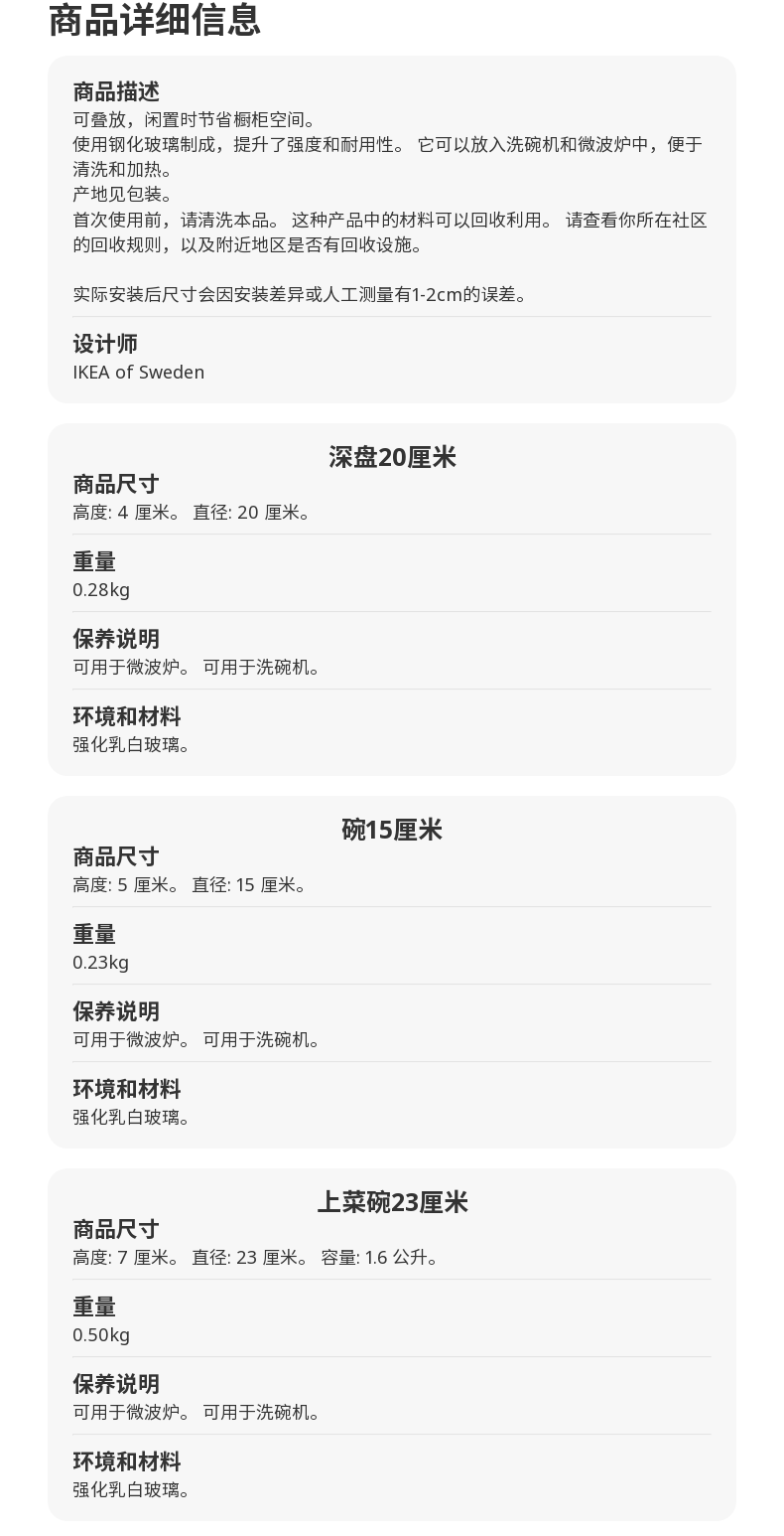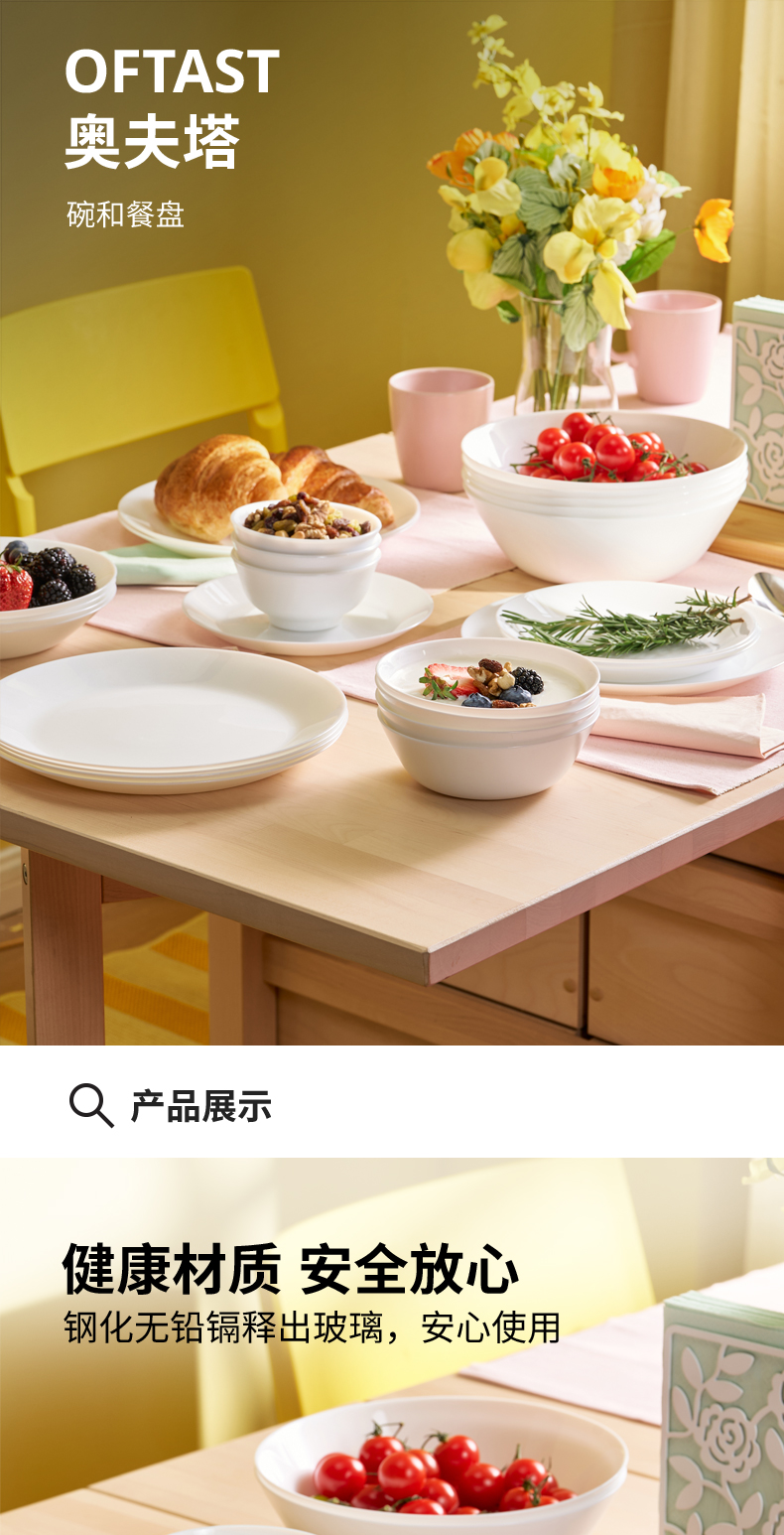 IKEA宜家OFTAST奥夫塔耐热餐盘菜盘碗碟西餐盘骨碟家用套装餐具