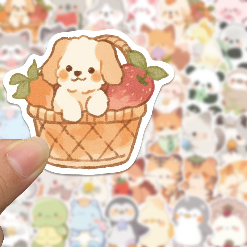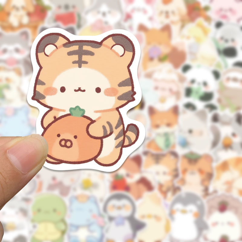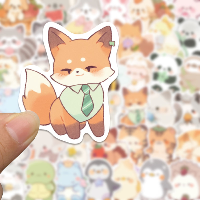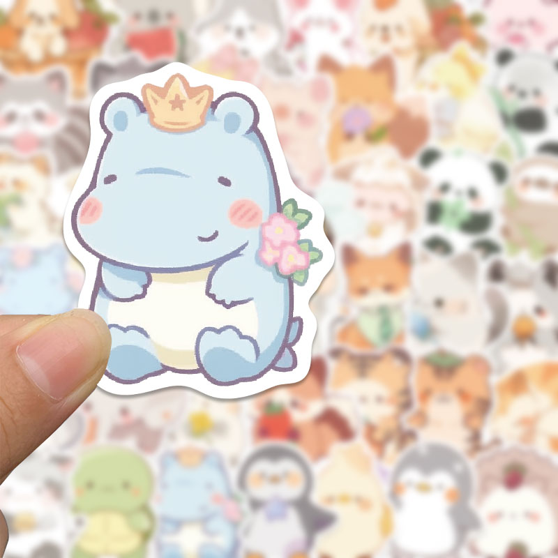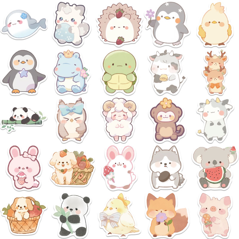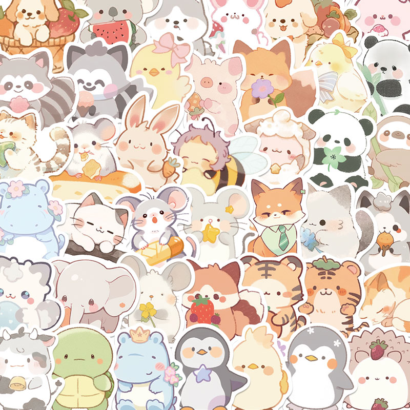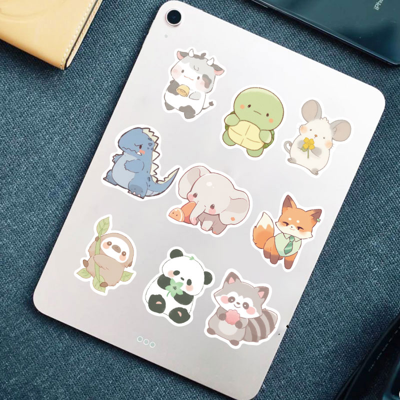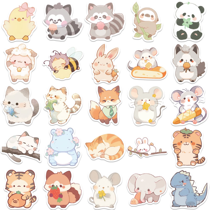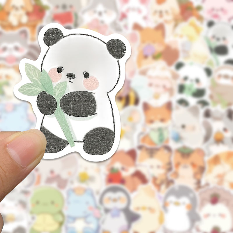 50张Q版动物贴纸卡通可爱猫咪熊猫手机壳笔记本行李箱贴画ipad电脑贴画防水