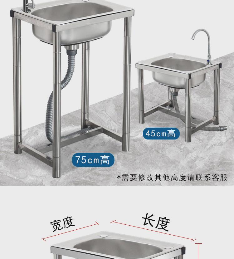 ll简易不锈钢水槽带支架家用小水池单槽洗菜盆厨房洗碗池阳台洗手