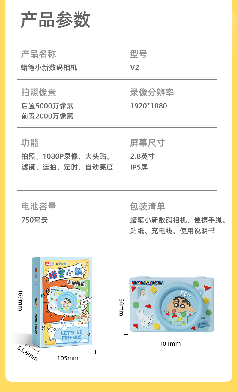 蜡笔小新儿童相机可拍照数码高清玩具男孩女孩生日礼物学生照相机