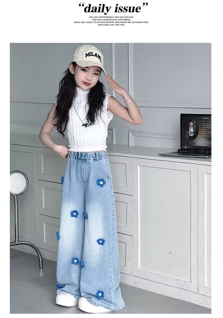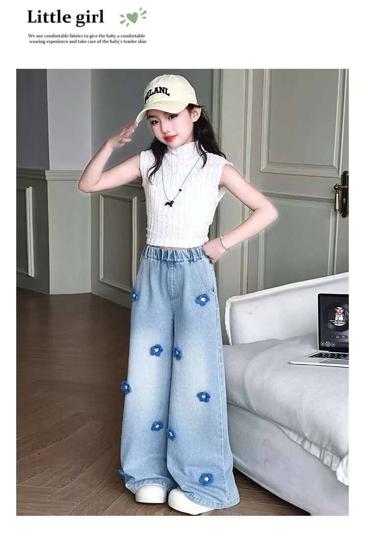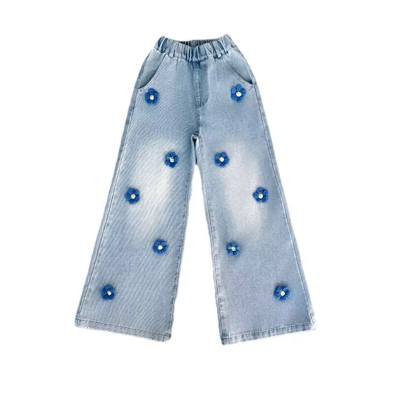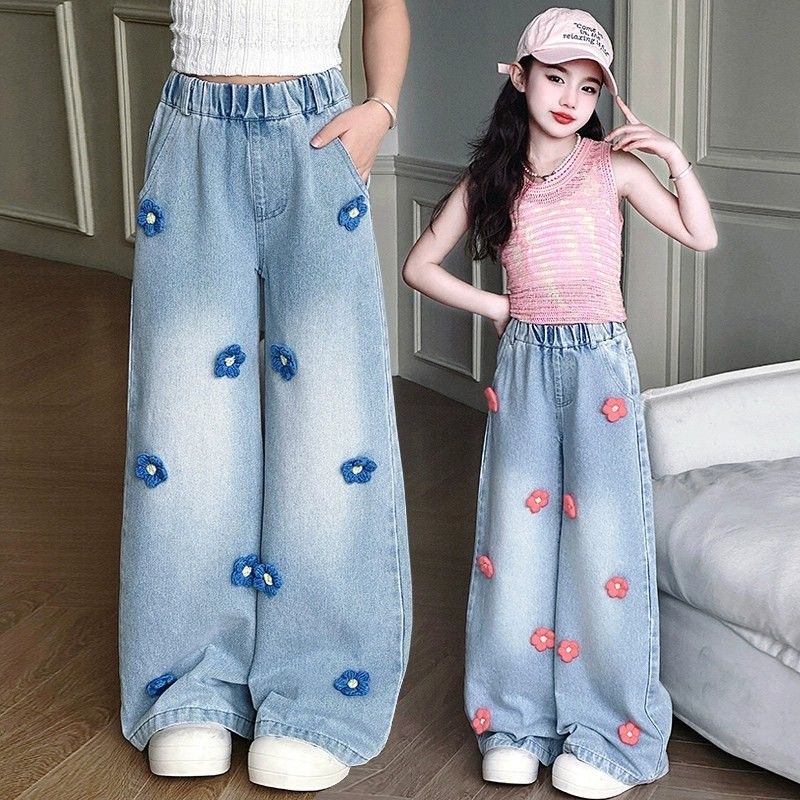 女童裤子春秋款2025新款儿童装时髦牛仔裤女孩大童春季休闲阔腿裤