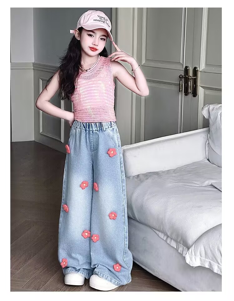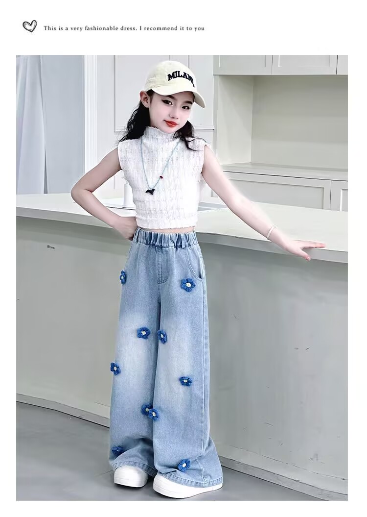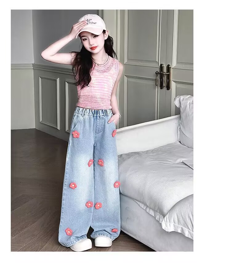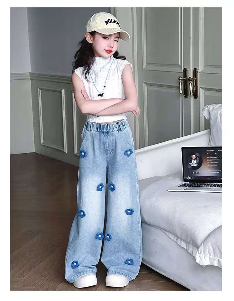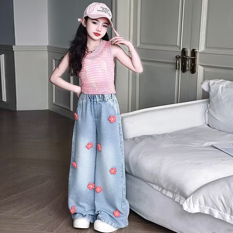 女童裤子春秋款2025新款儿童装时髦牛仔裤女孩大童春季休闲阔腿裤