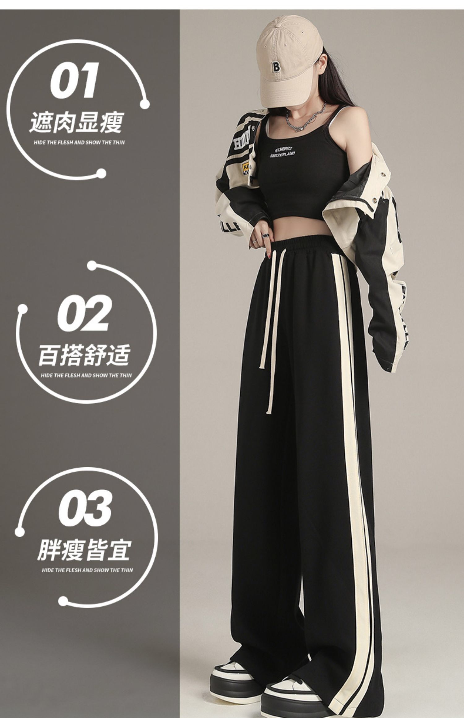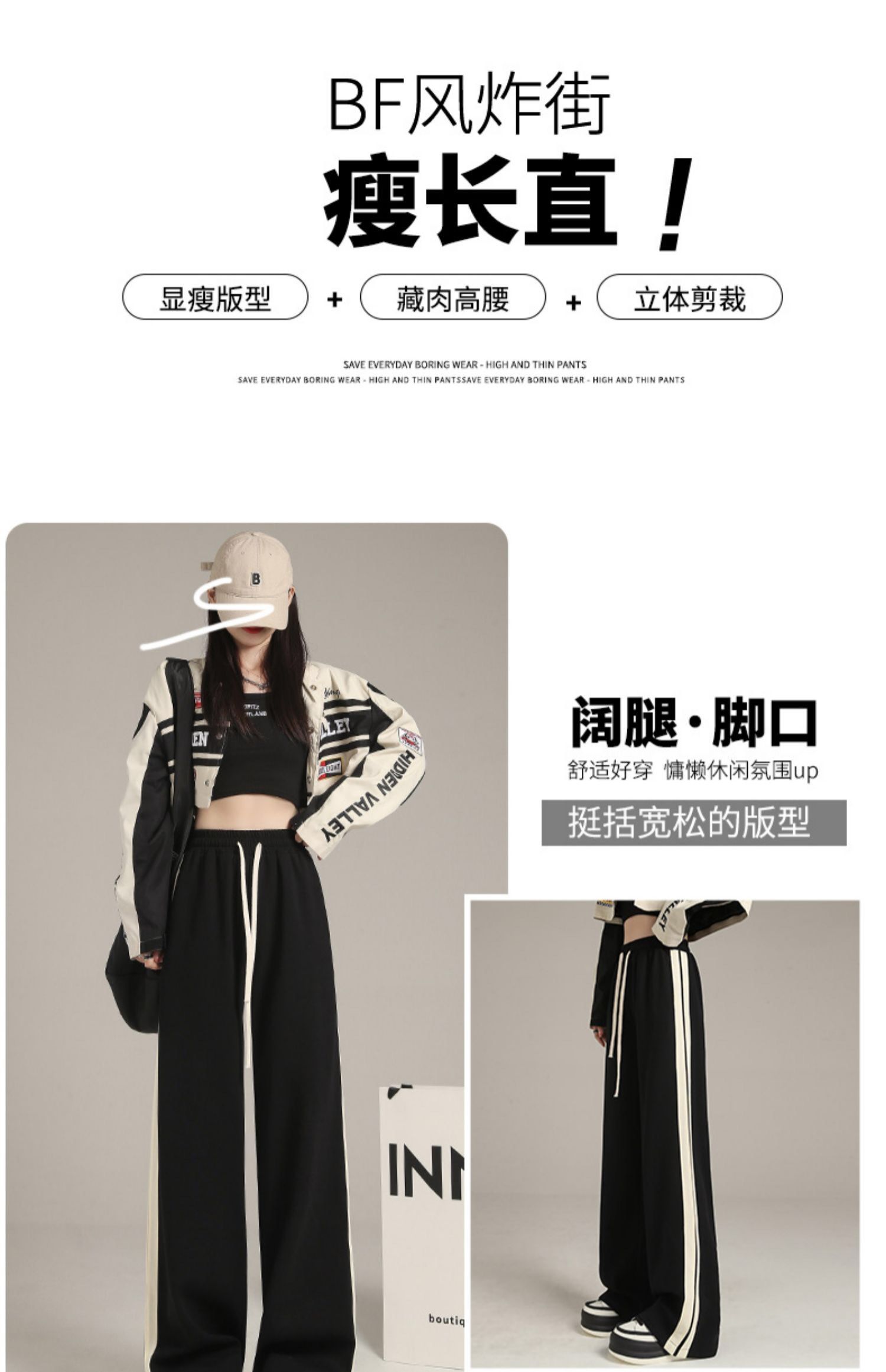 春夏新款胖MM超大码显瘦直筒裤女宽松休闲学生运动裤百搭阔腿裤潮