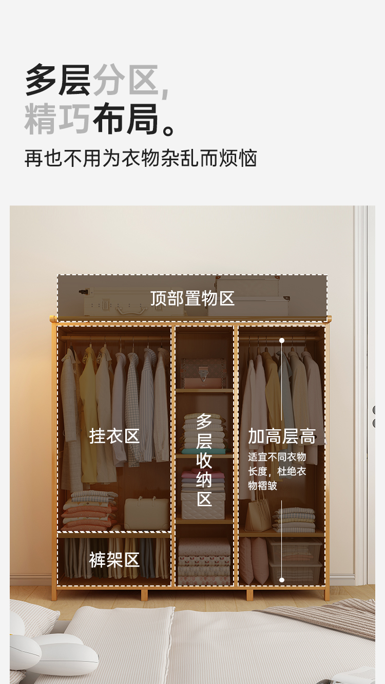衣柜卧室家用简易组装出租房结实耐用经济型小户型非实木布艺衣橱
