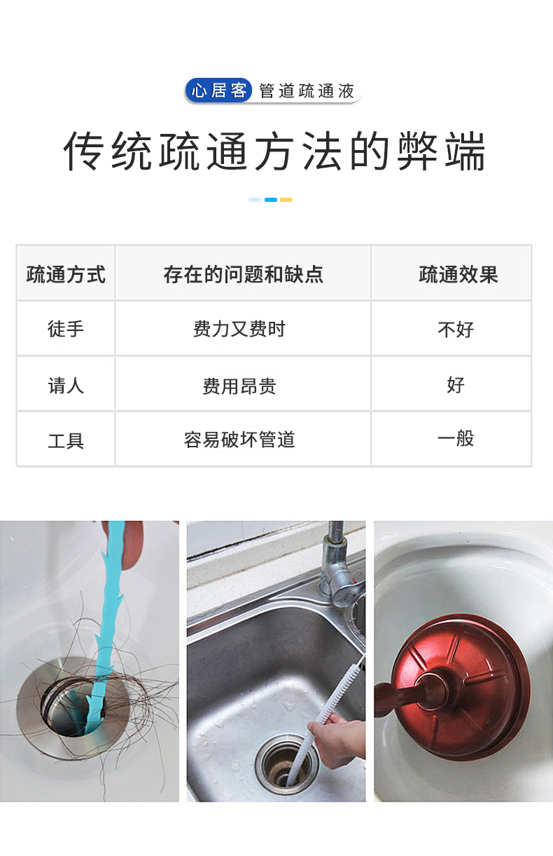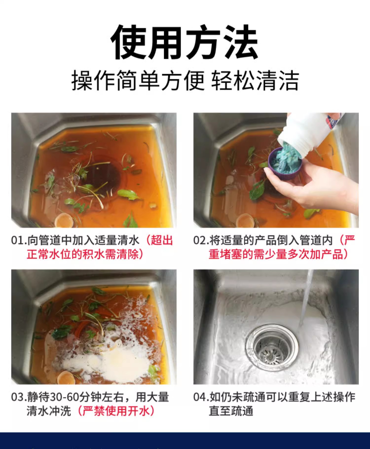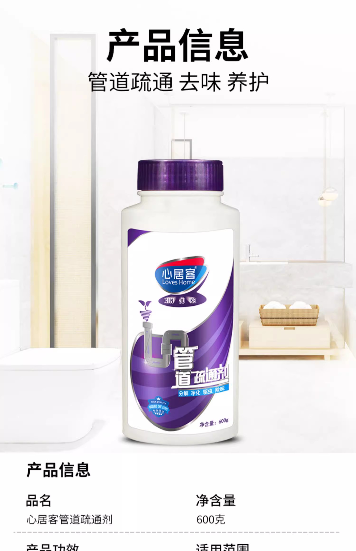 下水道疏通剂浴室厕所马桶地漏头发堵塞厨房水槽清洁去异味溶解剂