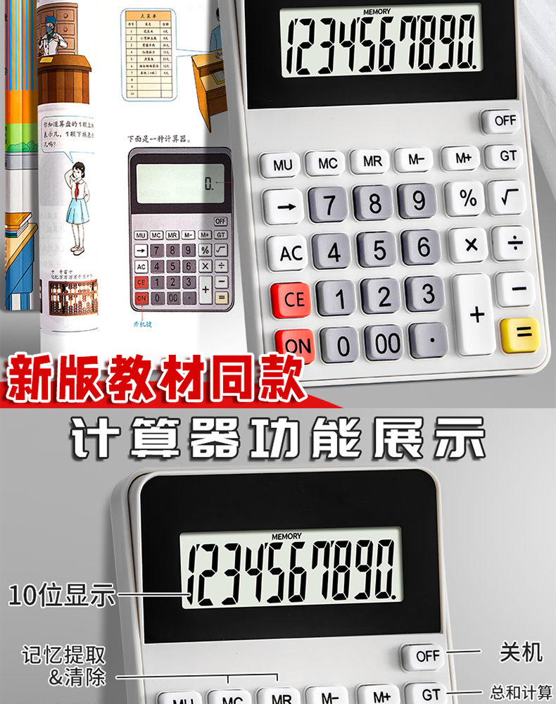 计算器人教版通用10位高清大屏计算机静音双电源多功能语音款计算工具学生专用抗摔耐磨耐用便携式函数计算器