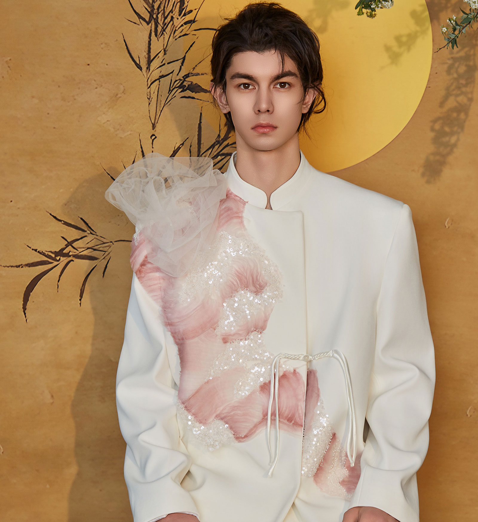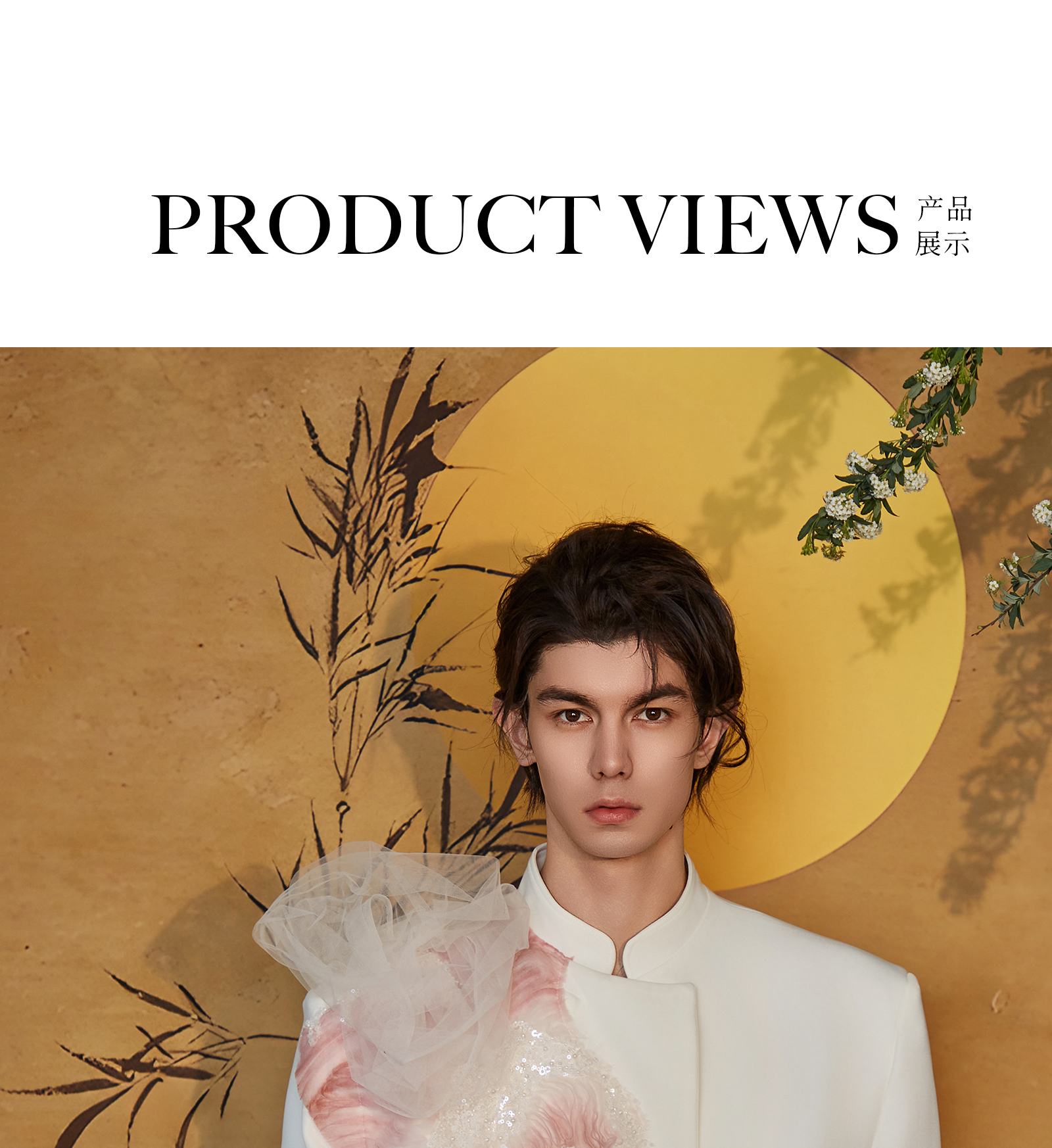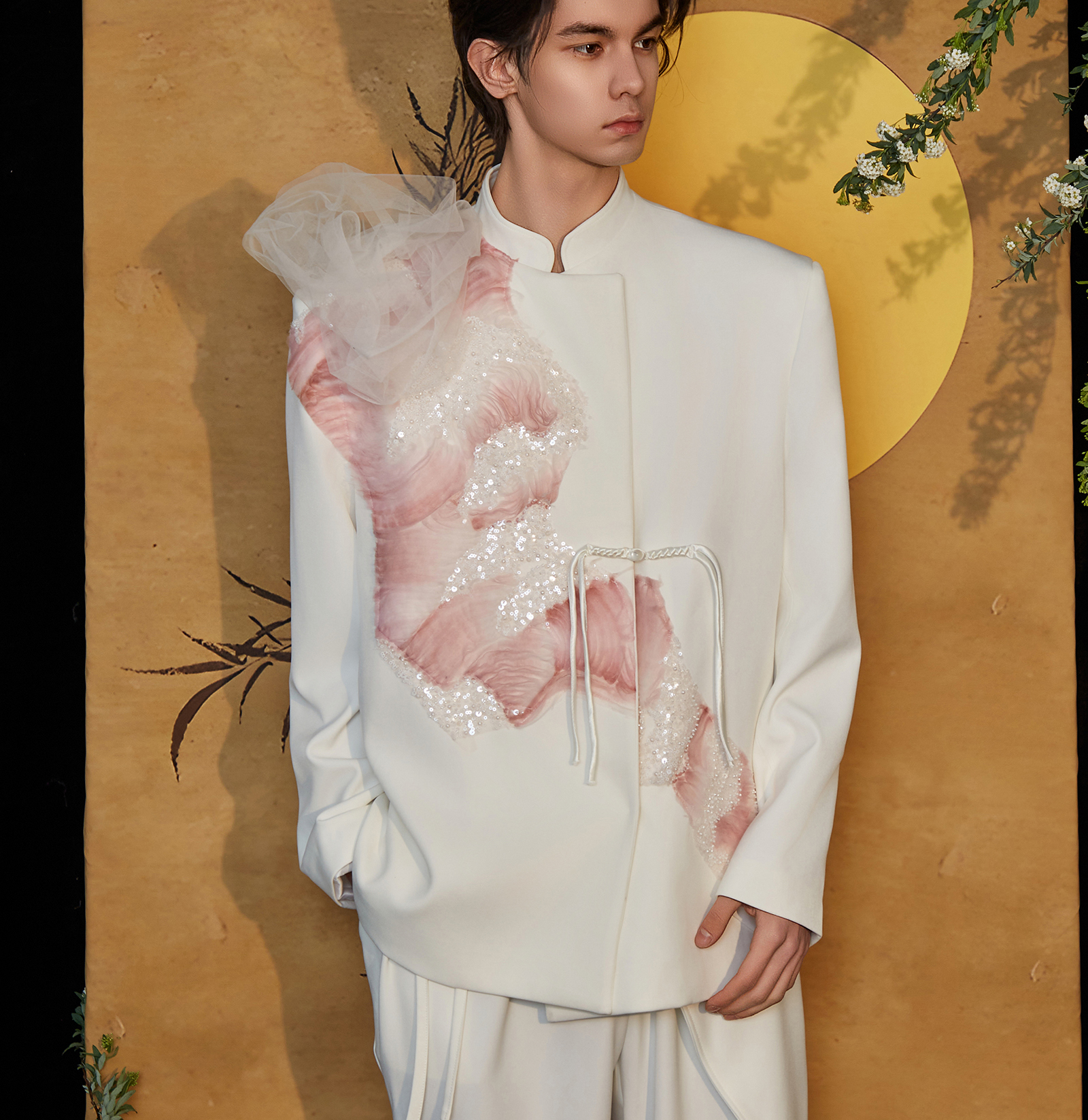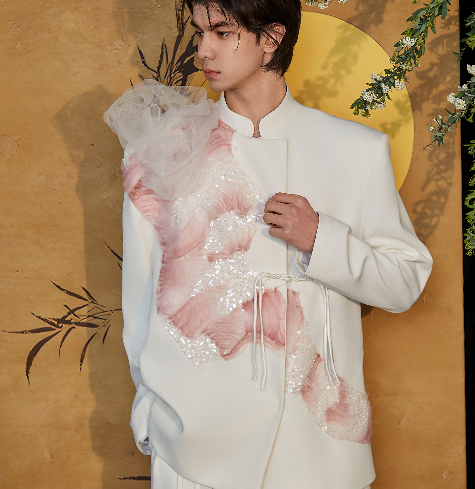 介尺JIECHI「琵鹭生冉」新中式盘扣休闲白色西服外套男高级感上衣