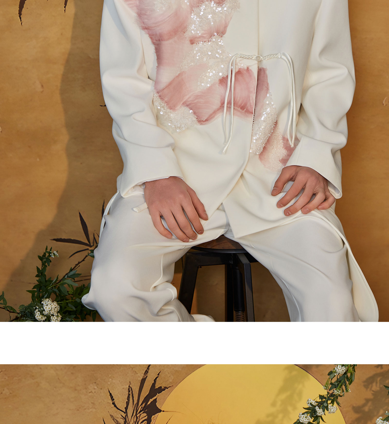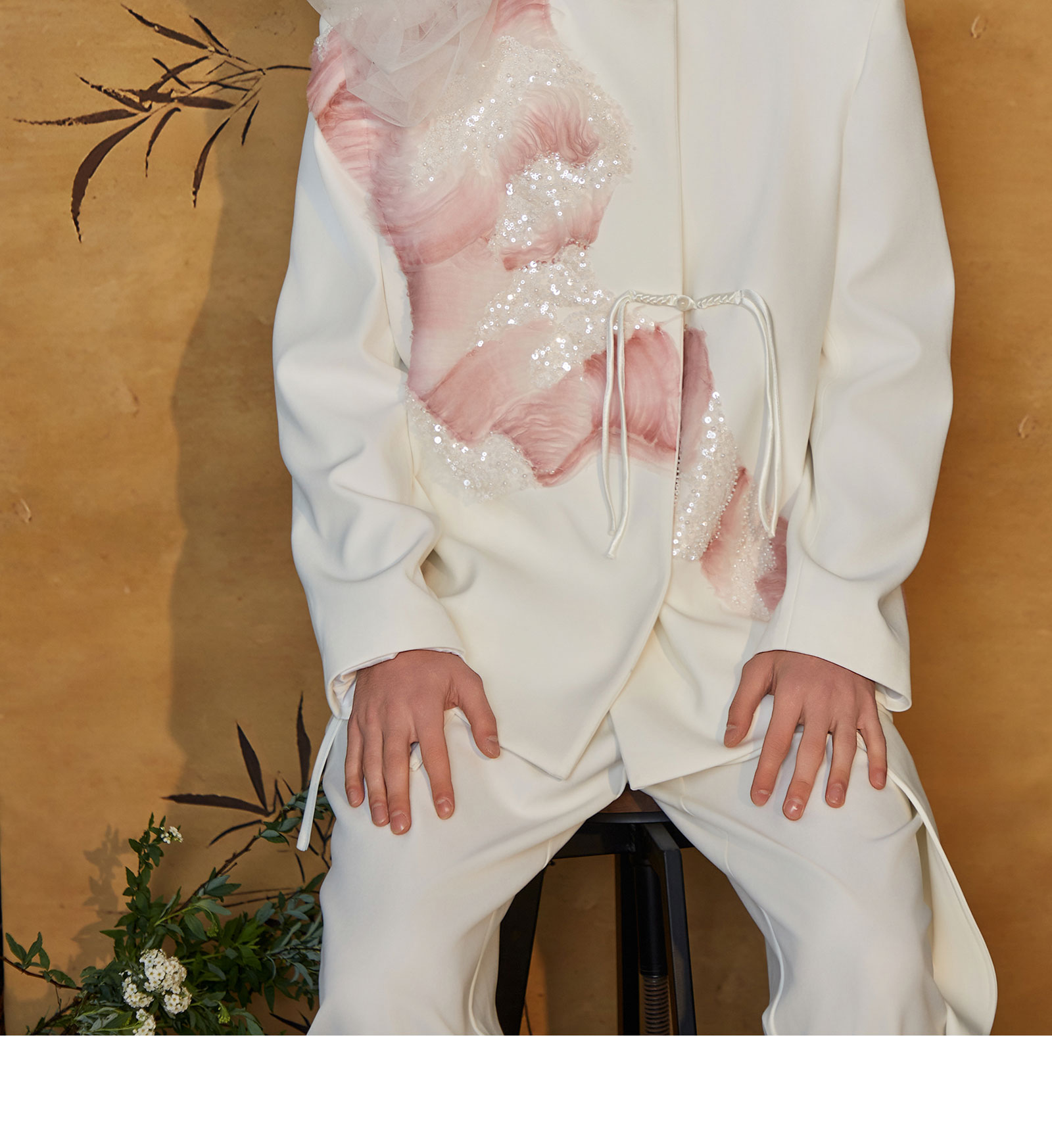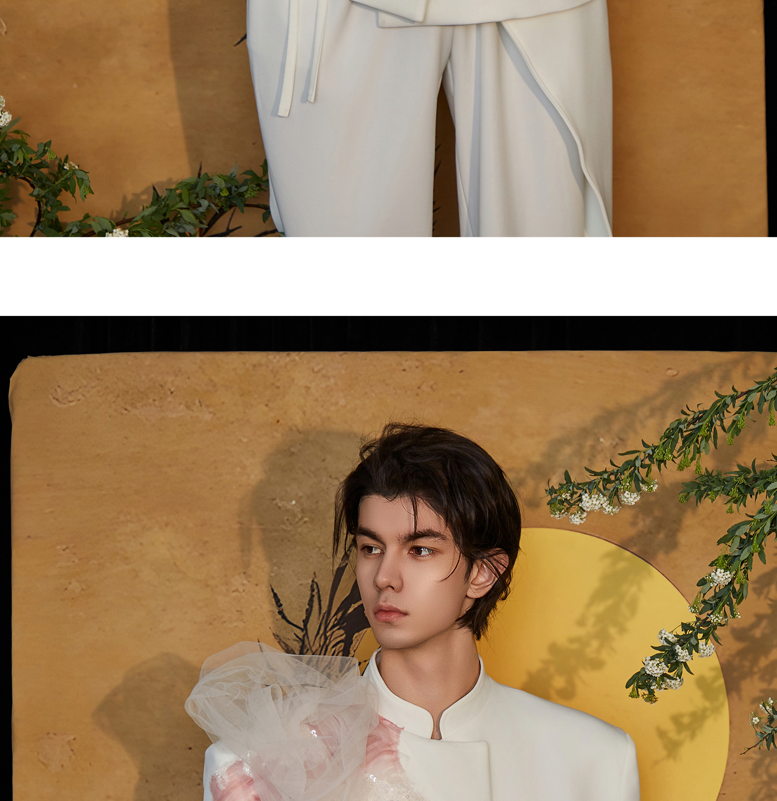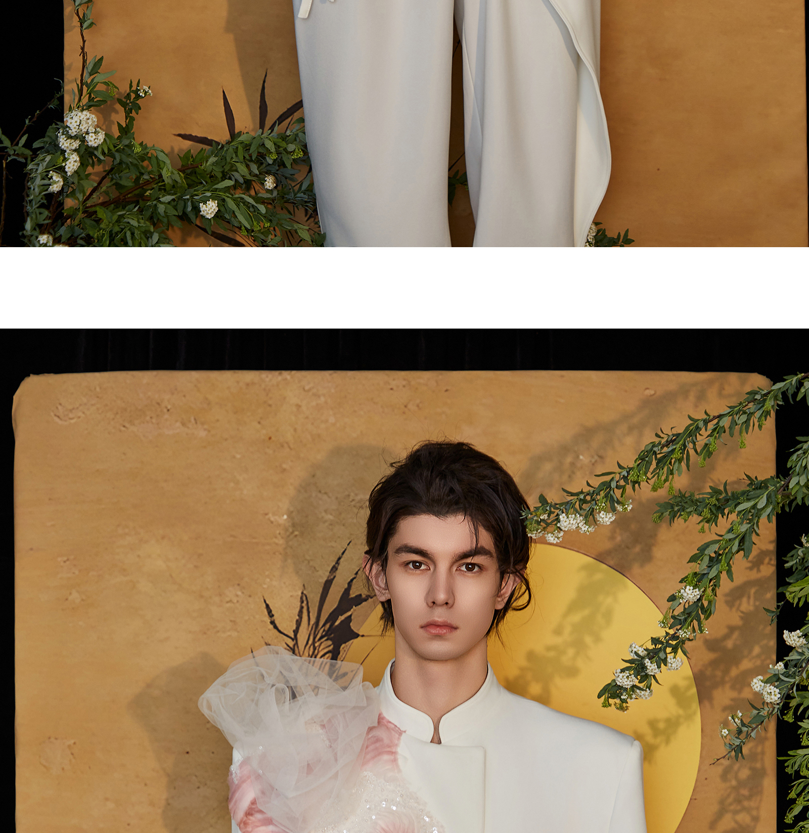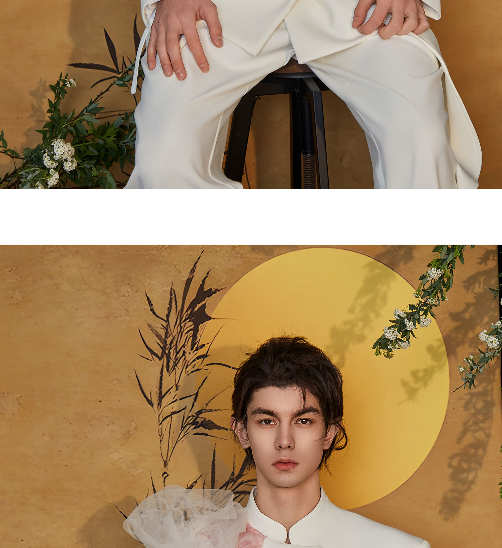 介尺JIECHI「琵鹭生冉」新中式盘扣休闲白色西服外套男高级感上衣