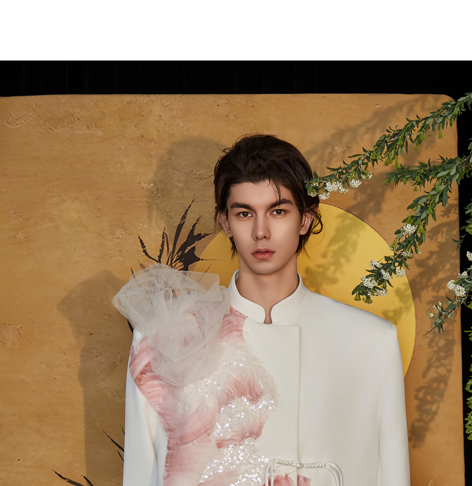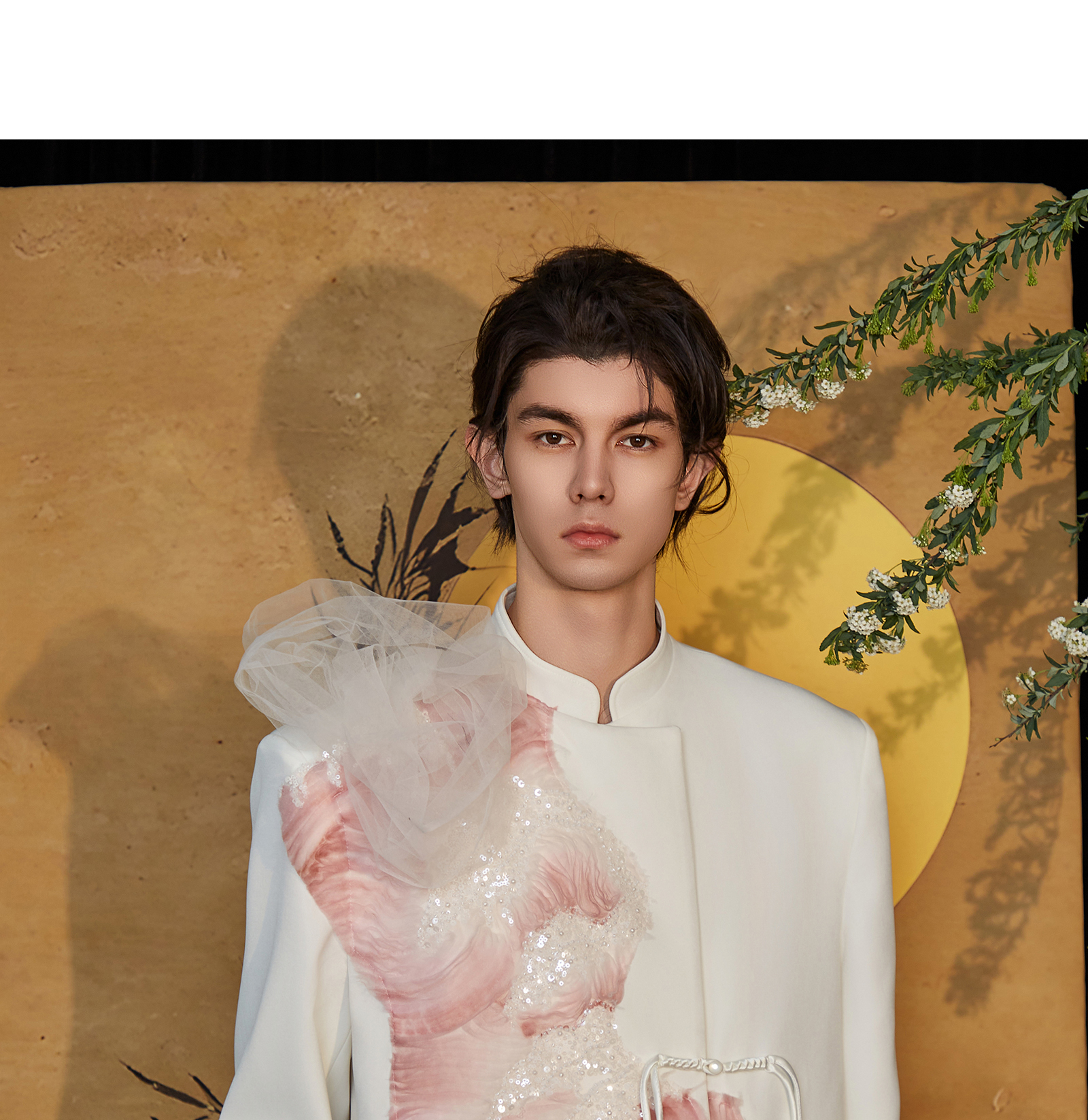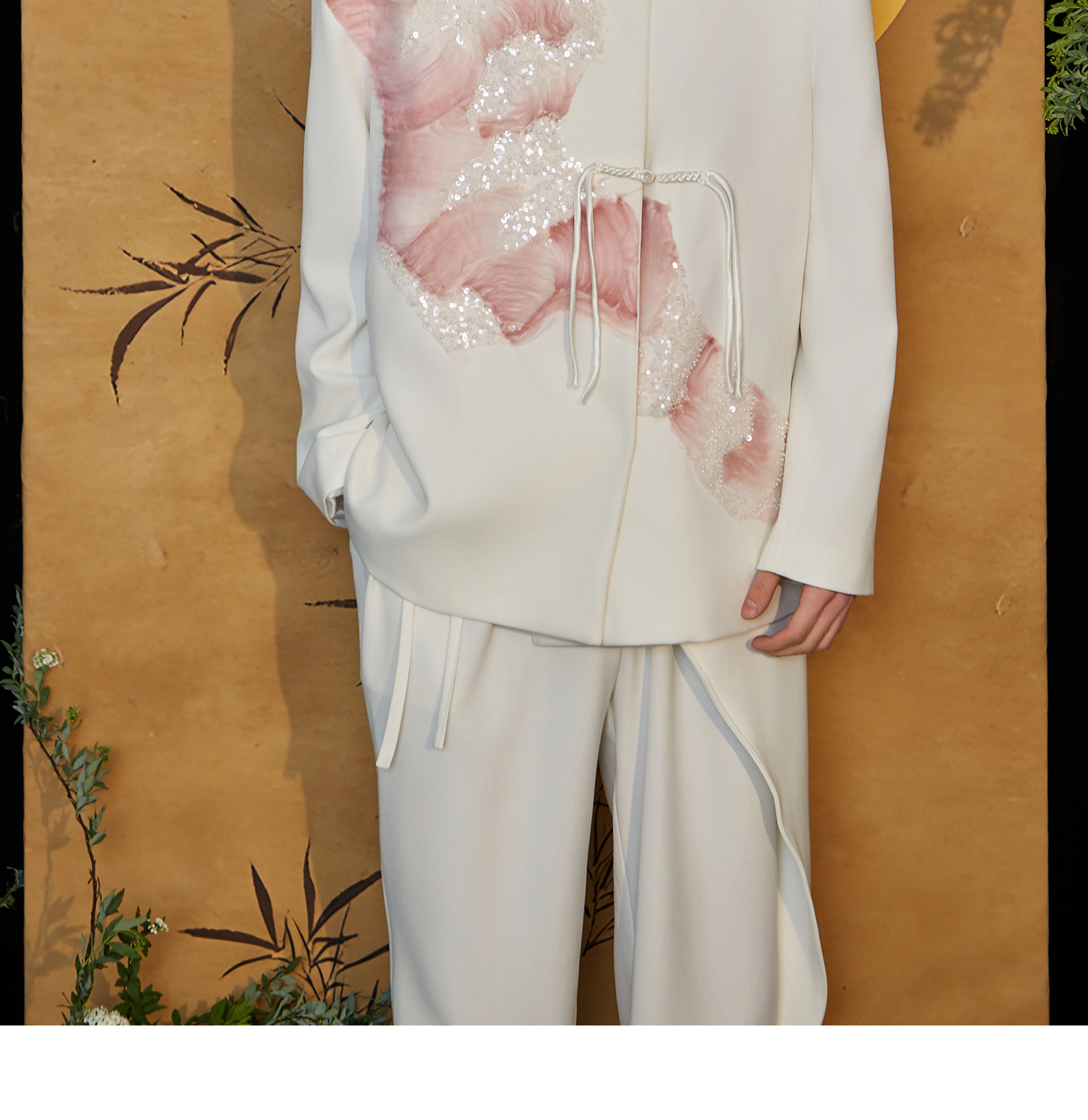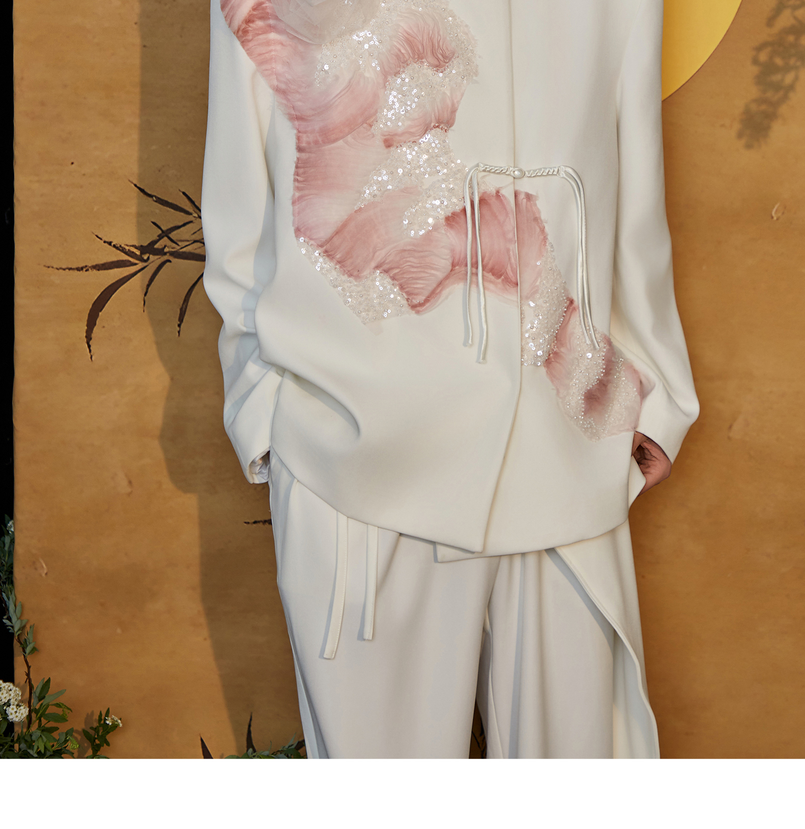 介尺JIECHI「琵鹭生冉」新中式盘扣休闲白色西服外套男高级感上衣