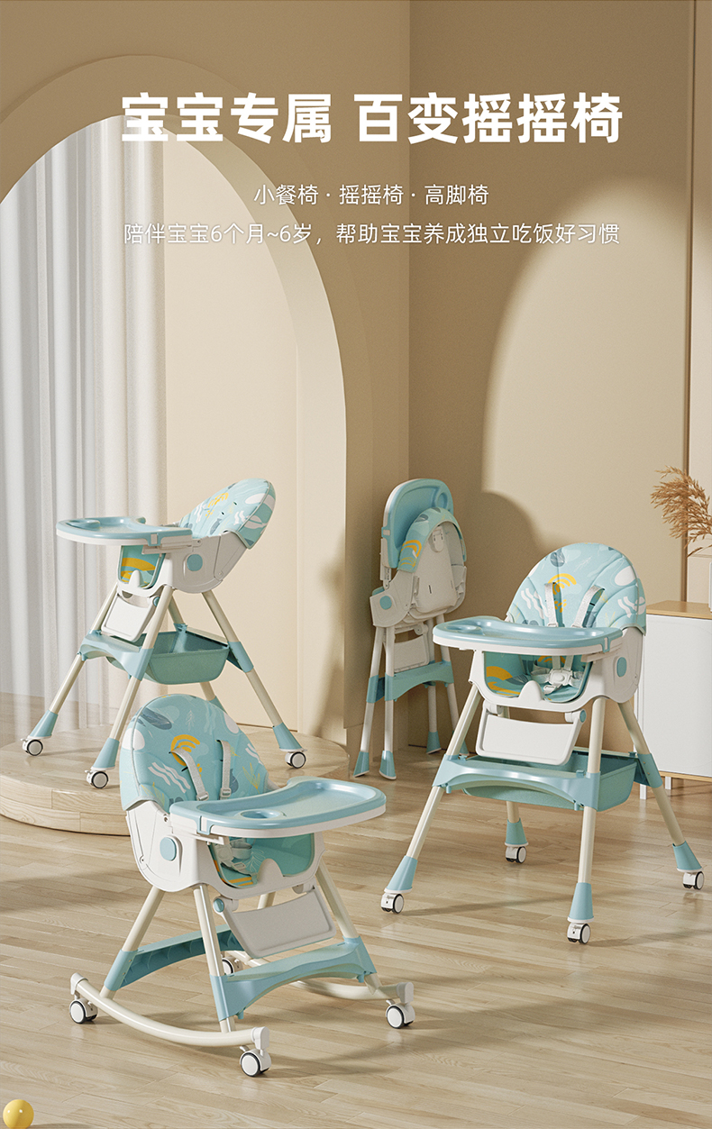宝宝餐椅可折叠便捷吃饭椅婴儿多功能餐桌椅座椅儿童摇椅二合一