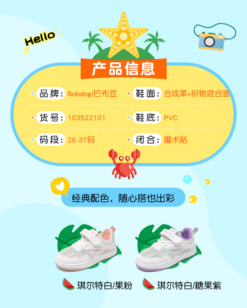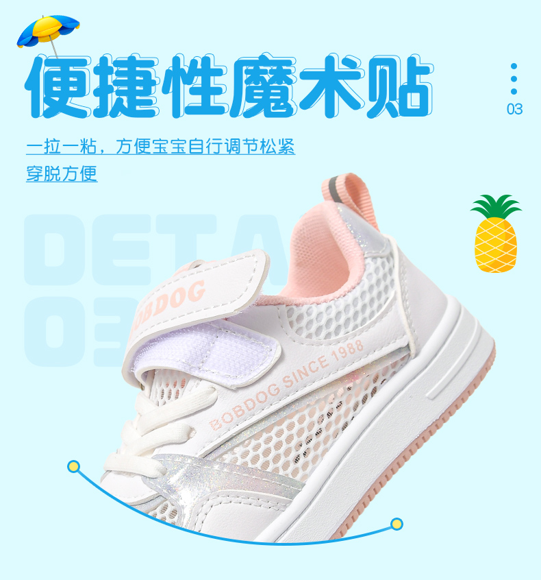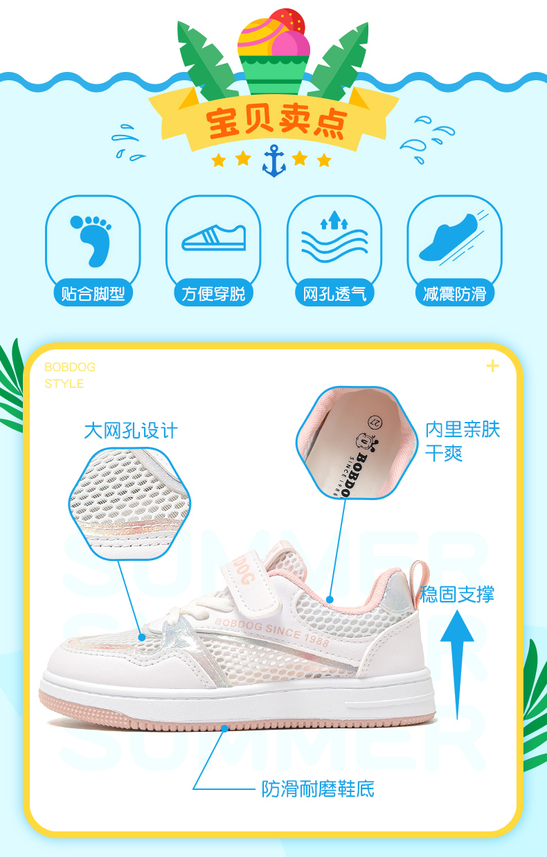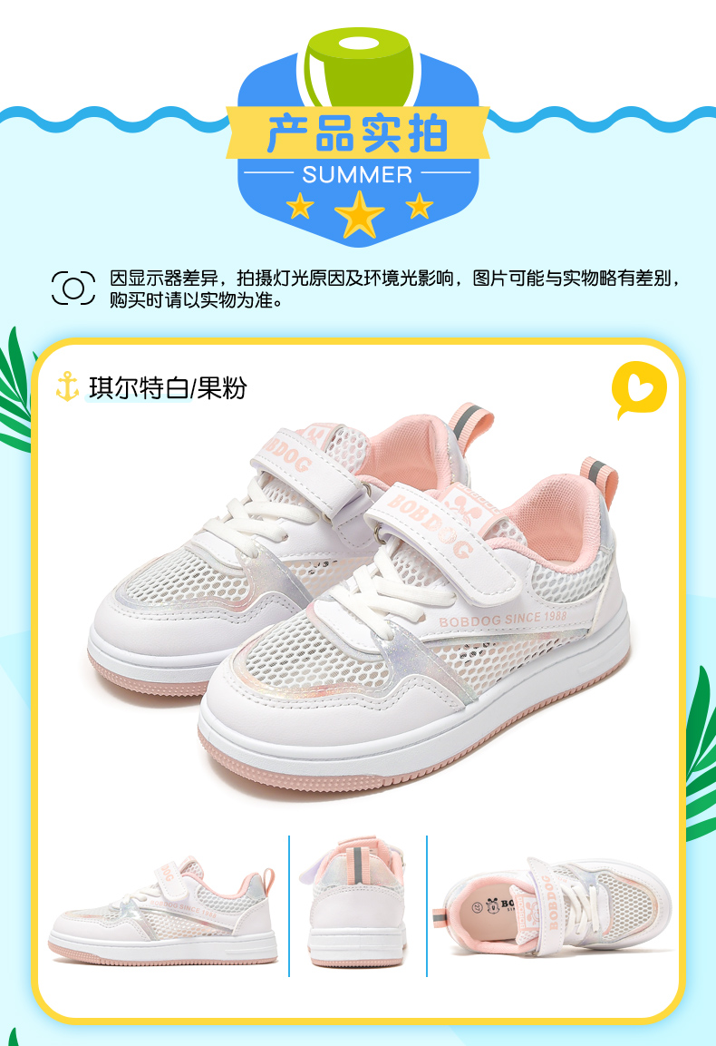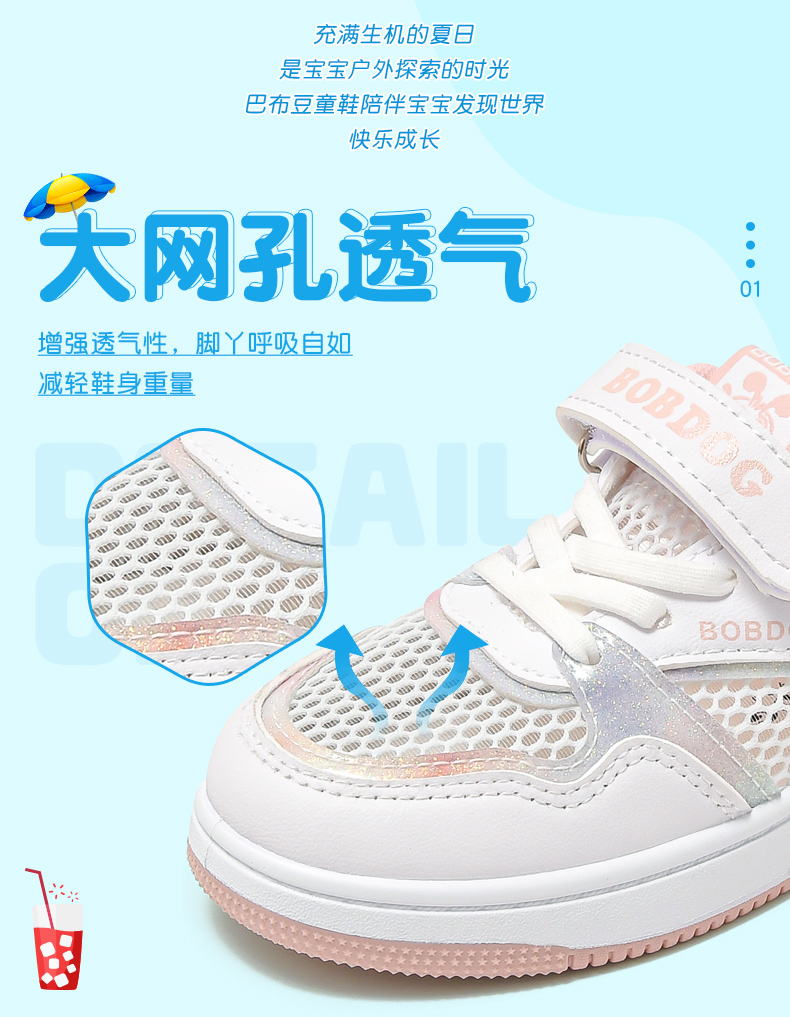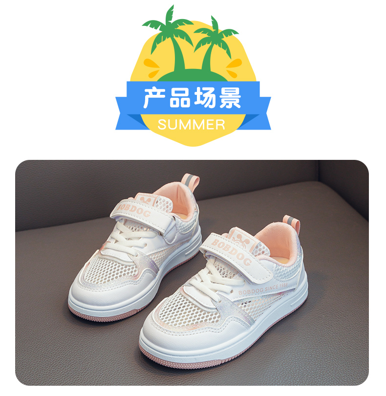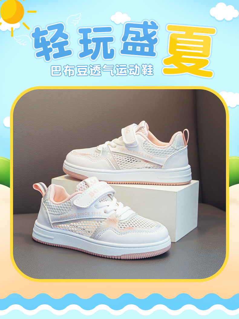巴布豆旗舰店官方儿童小白鞋夏季2022年新款女童透气网鞋低帮板鞋