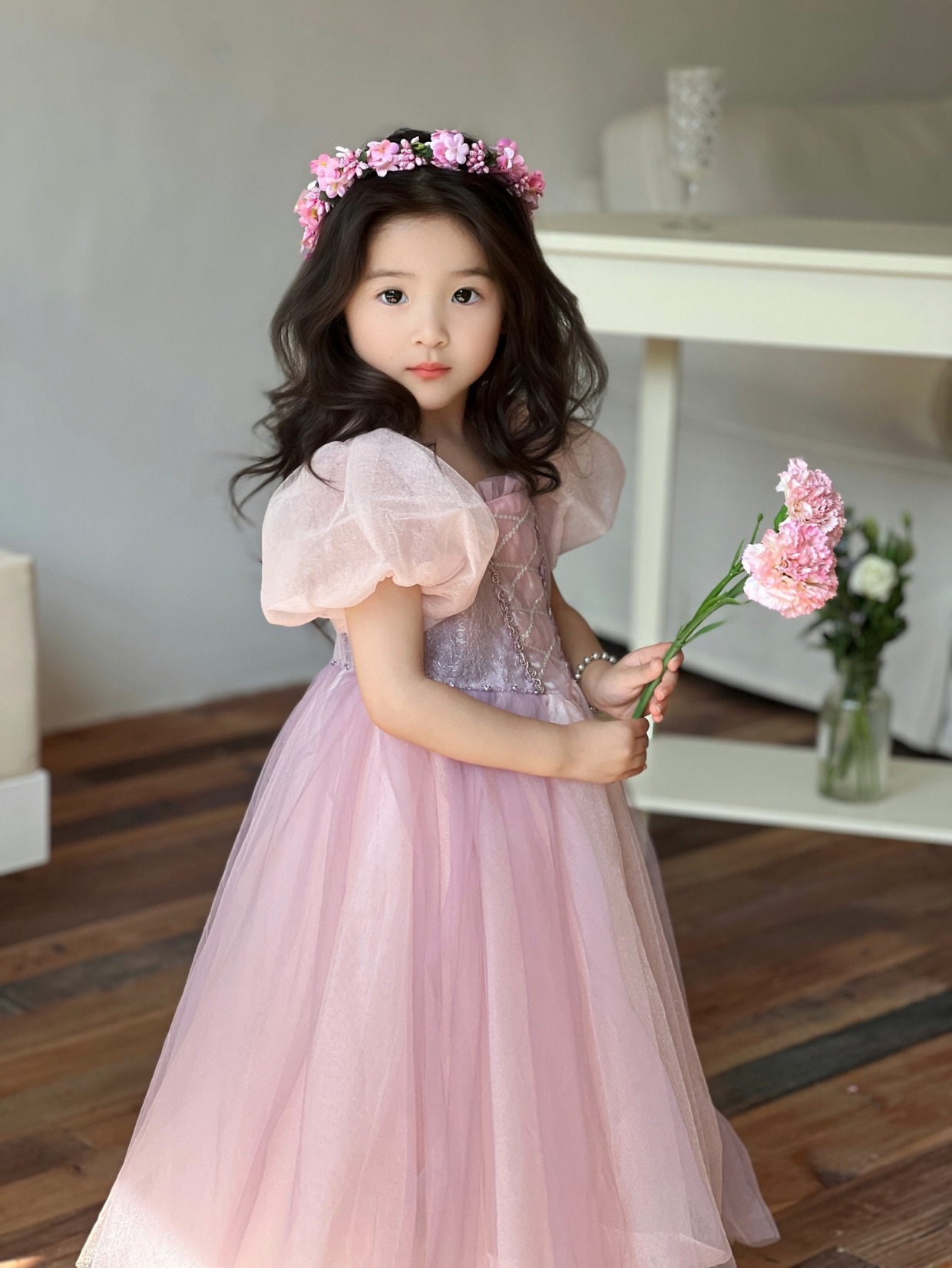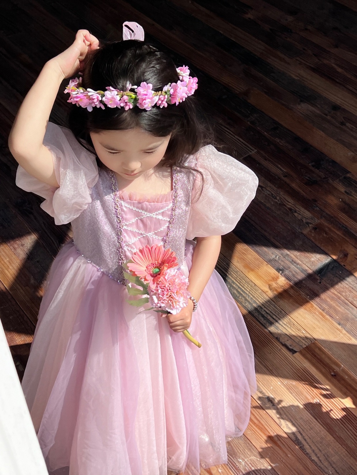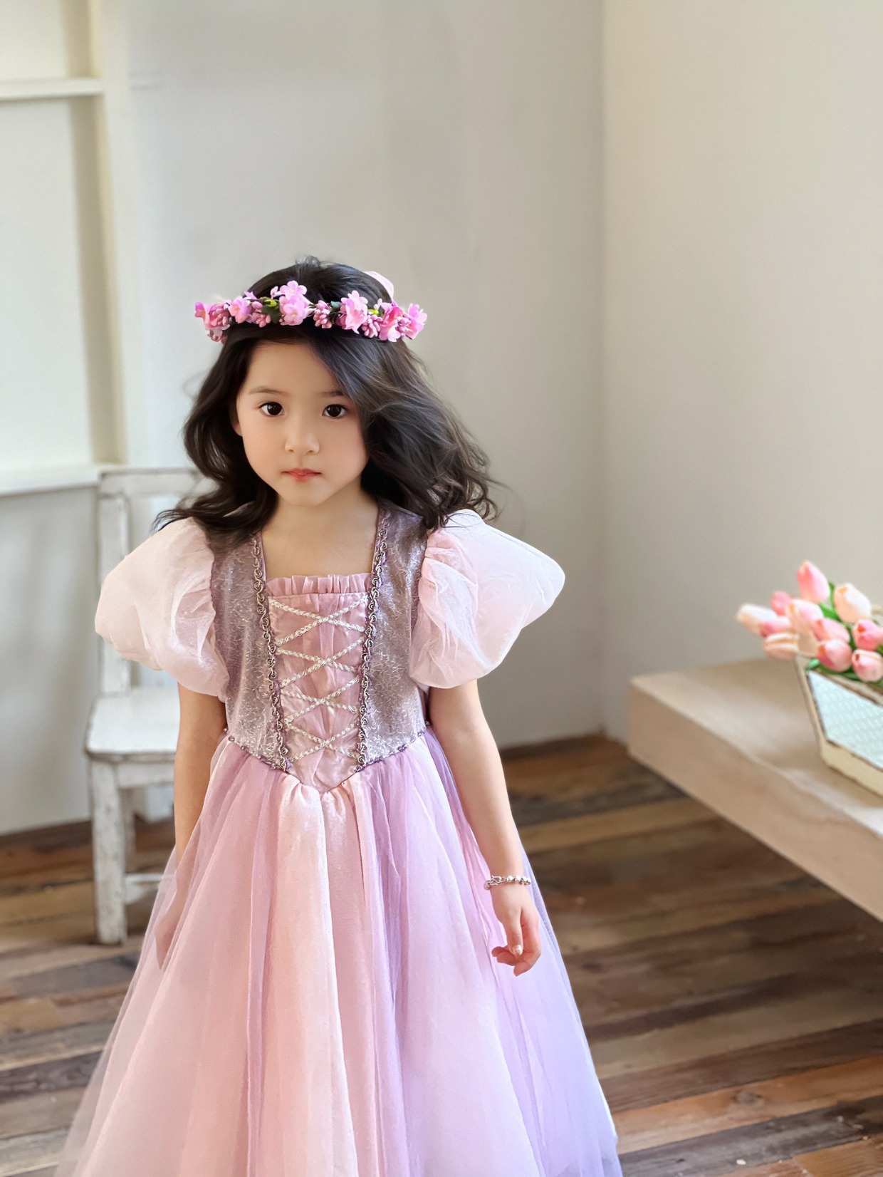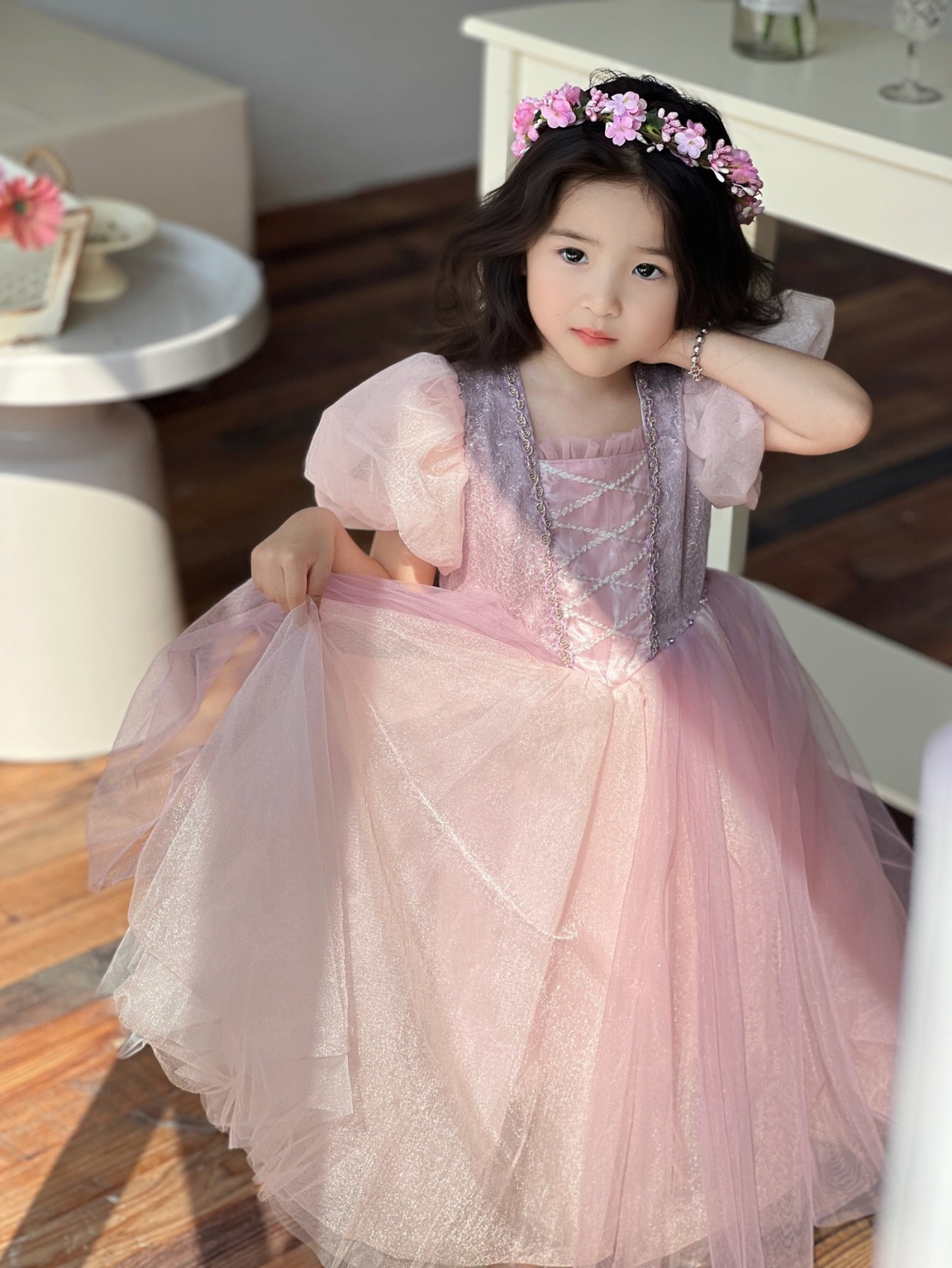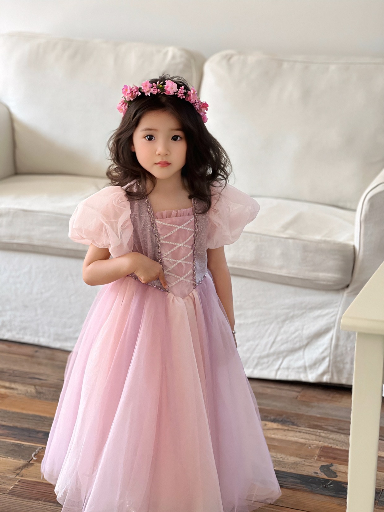 乐佩长发公主裙女童2024夏季新款六一礼服女孩蓬蓬纱裙儿童连衣裙