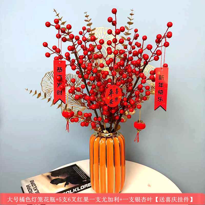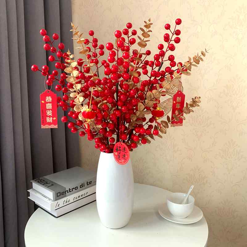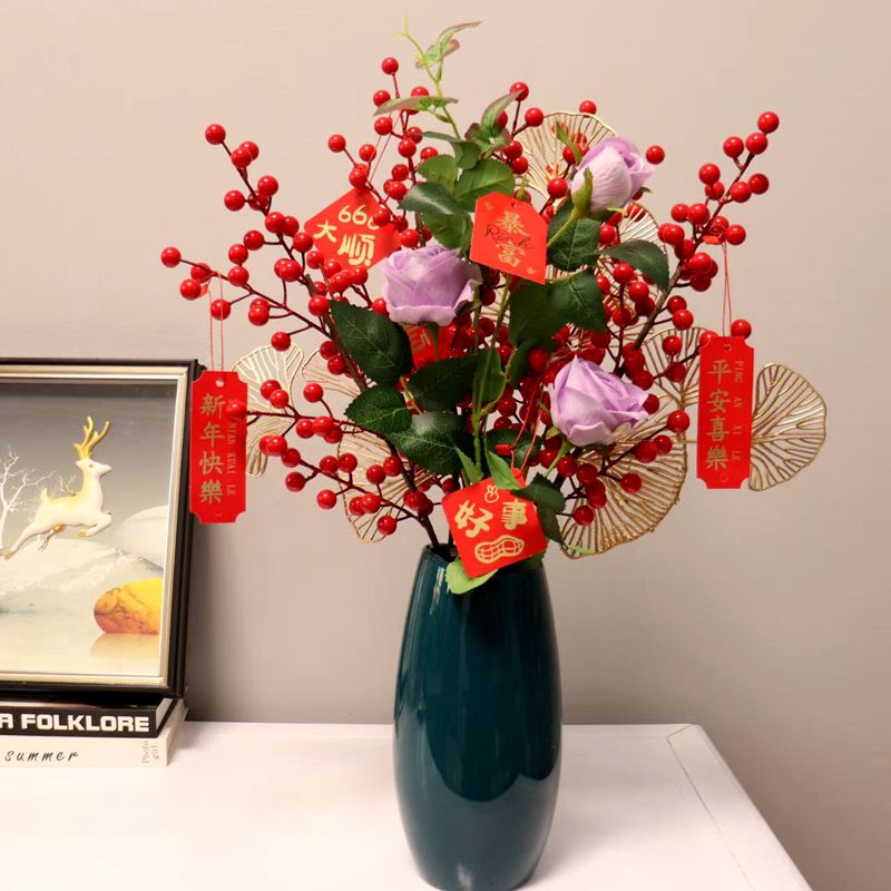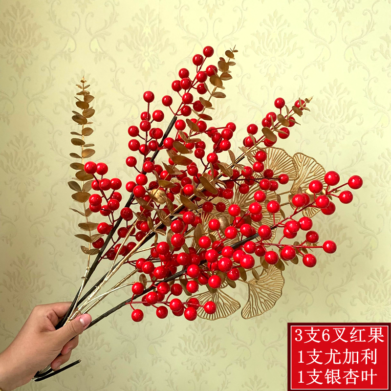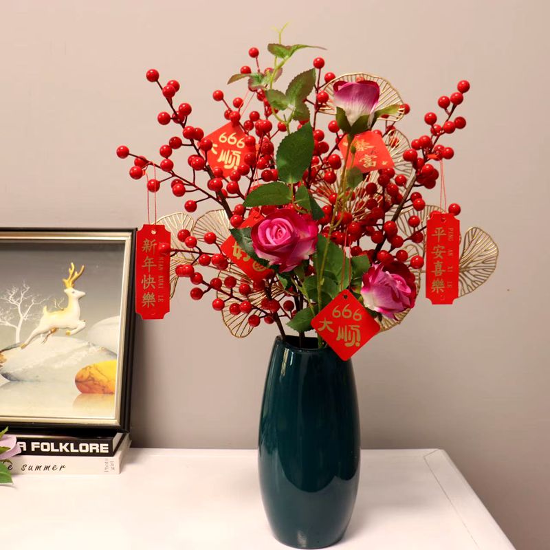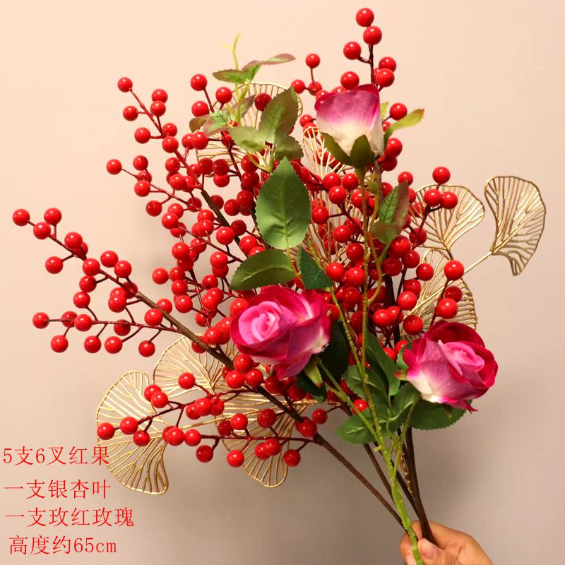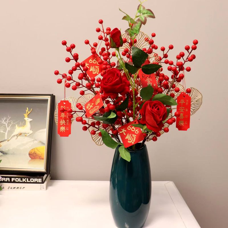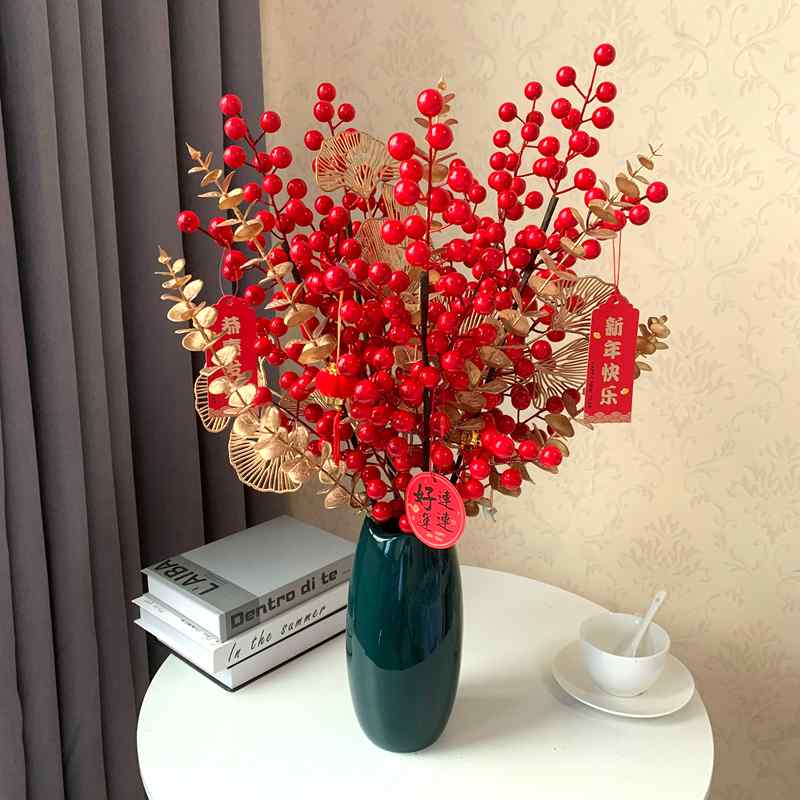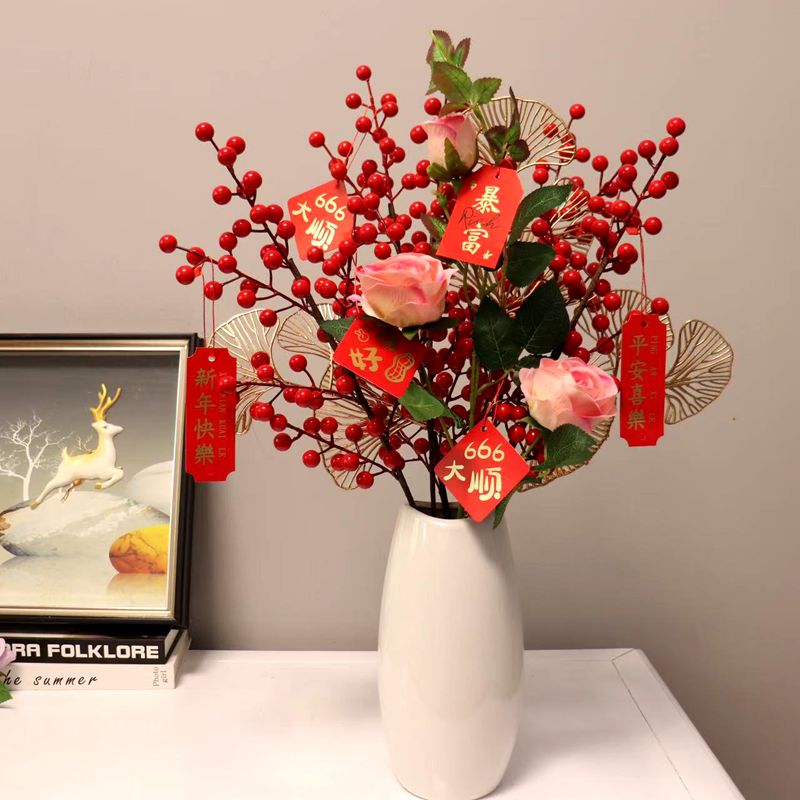 发财果红果假花仿真花摆设客厅餐桌花摆花家居插花装饰品花艺摆件