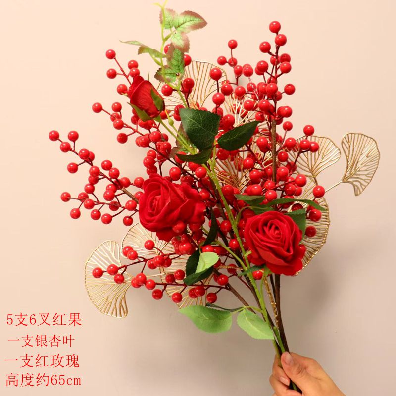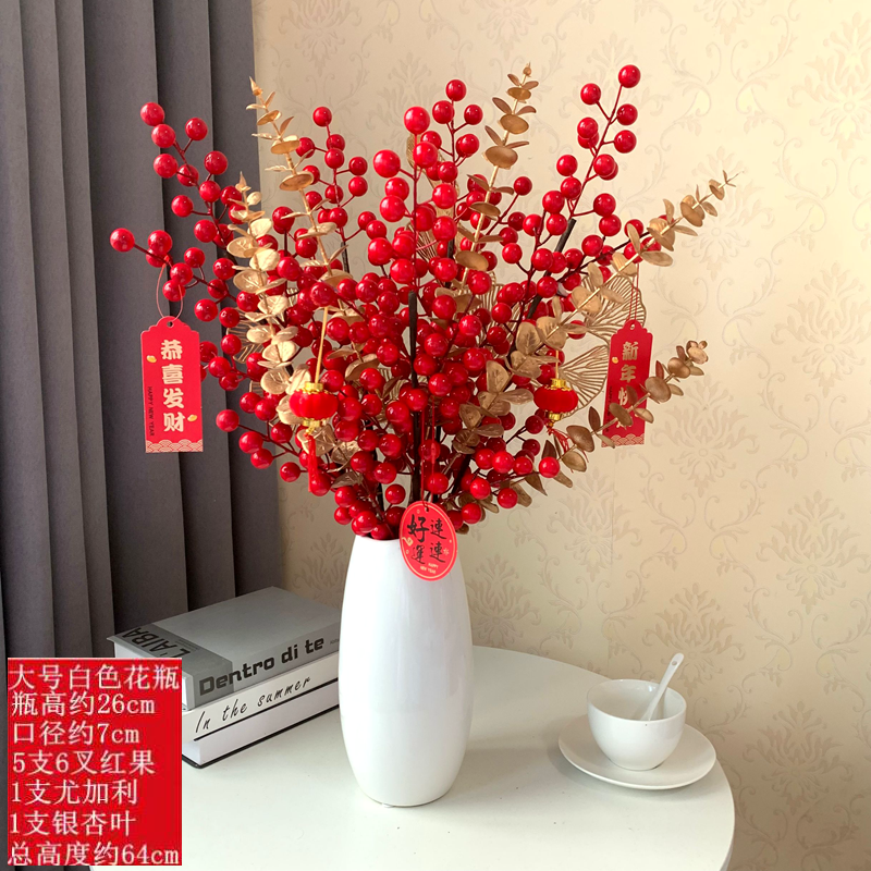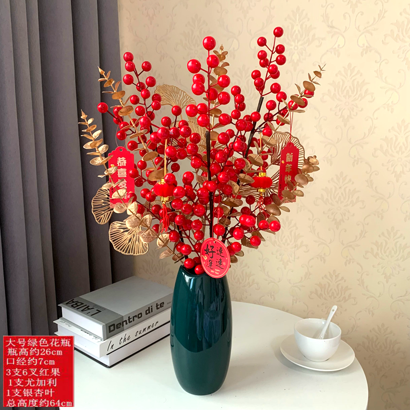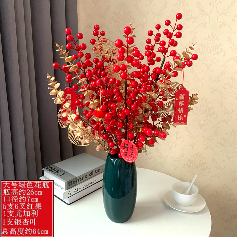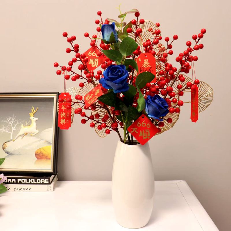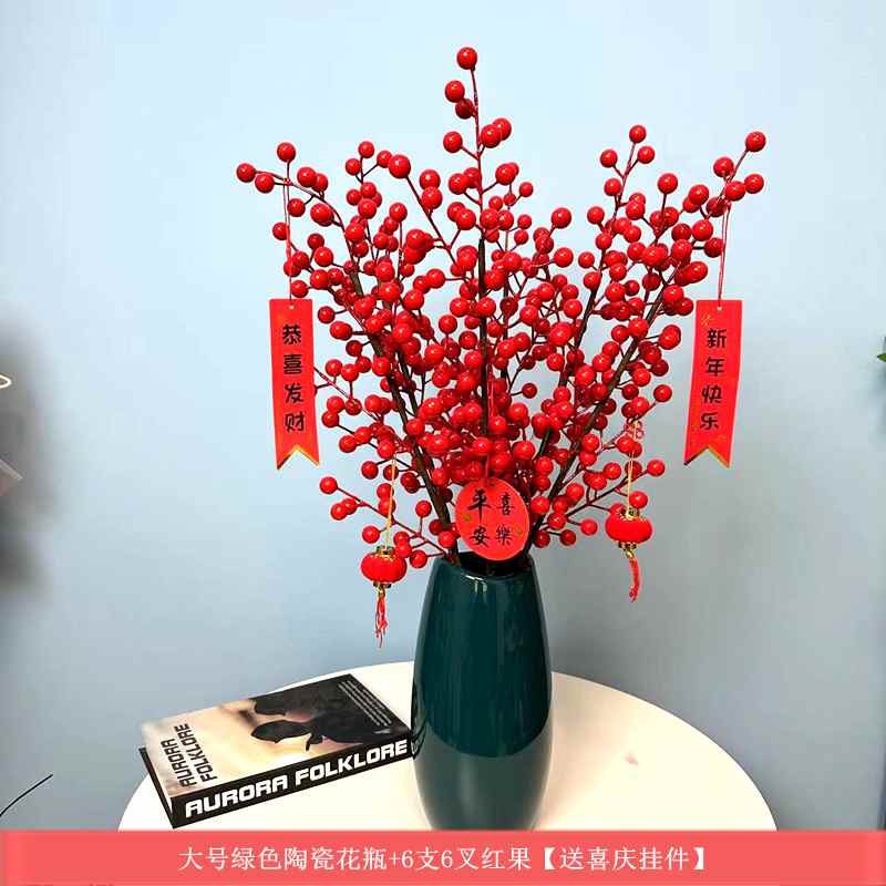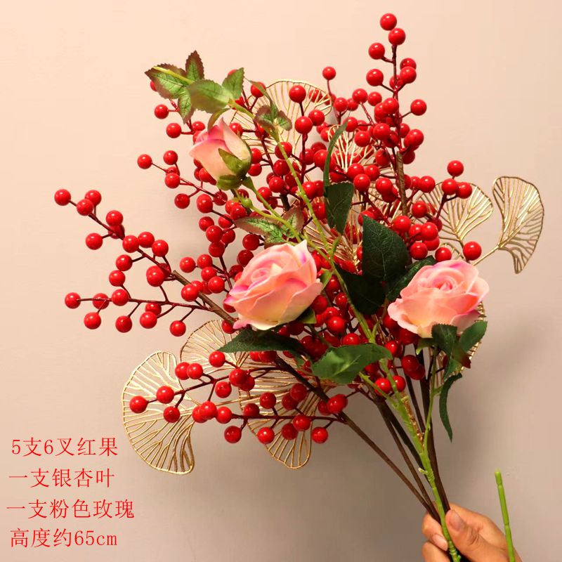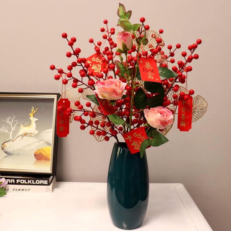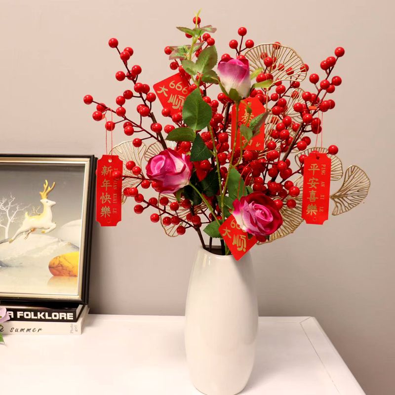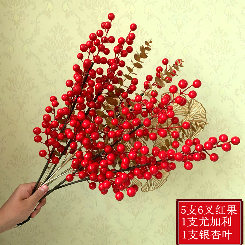 发财果红果假花仿真花摆设客厅餐桌花摆花家居插花装饰品花艺摆件