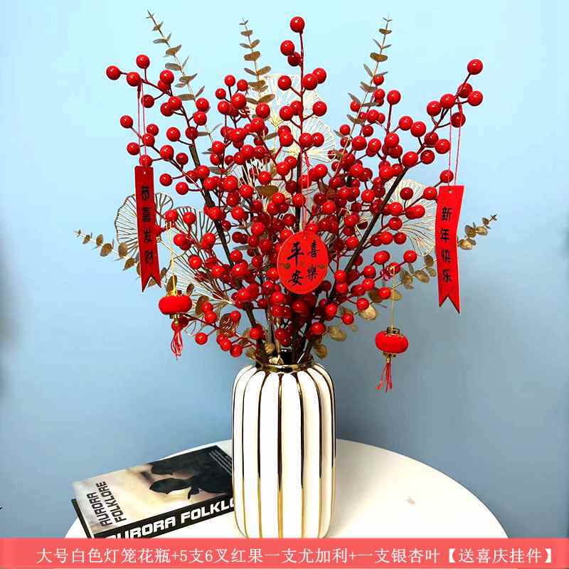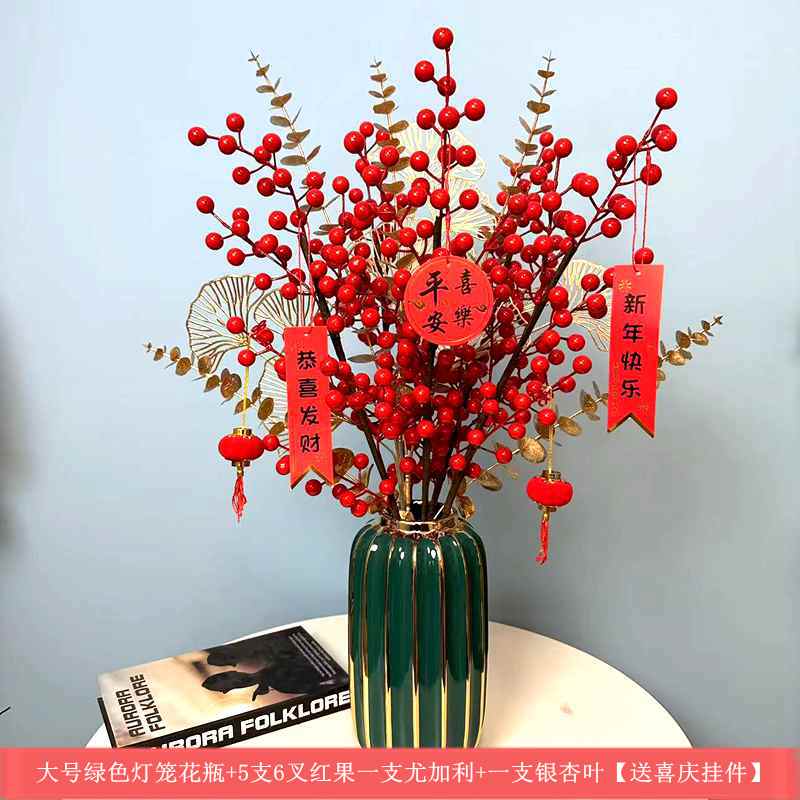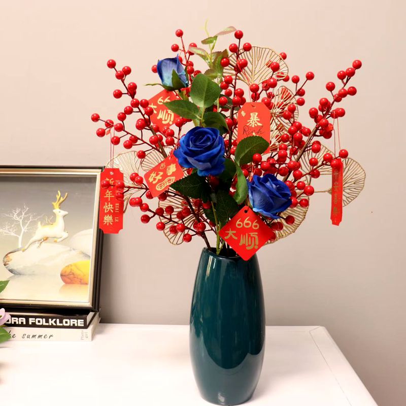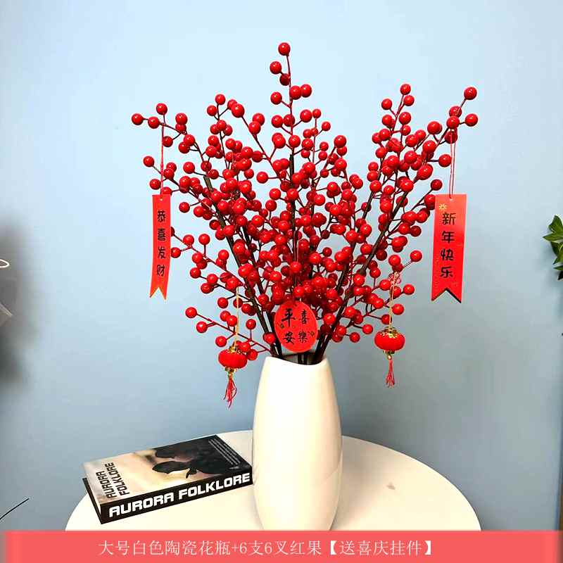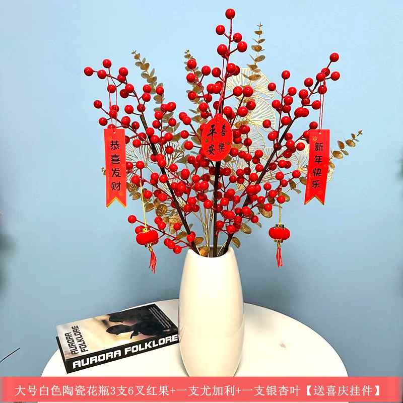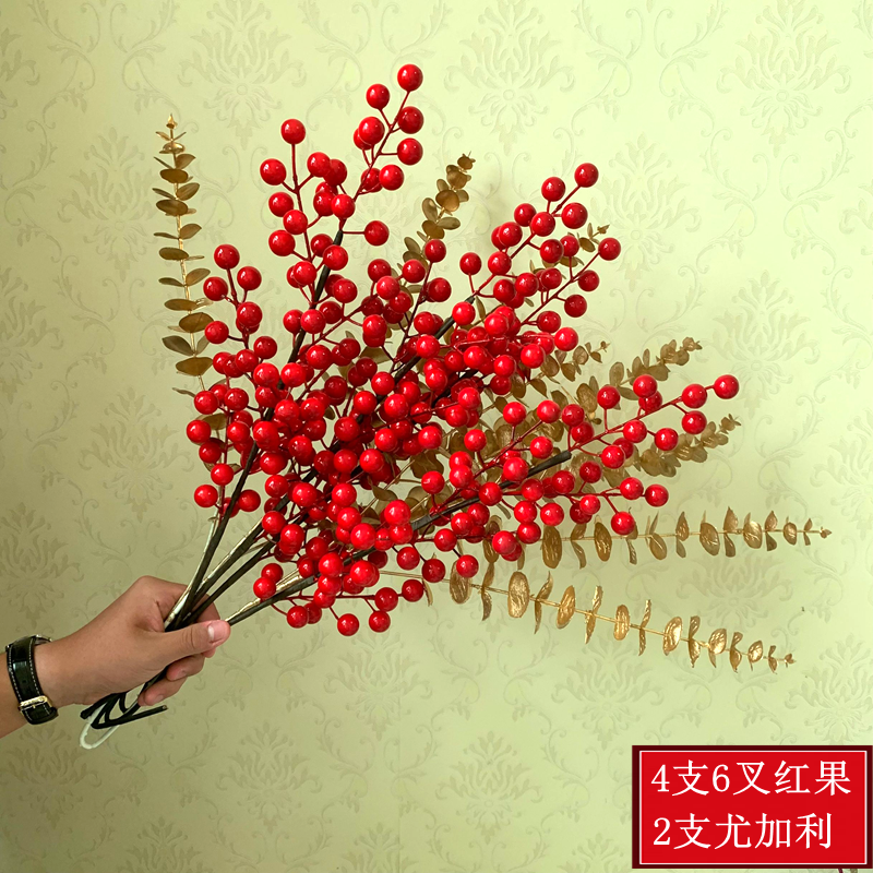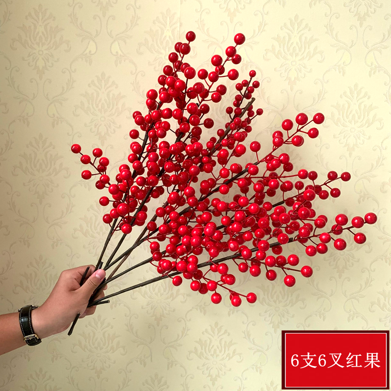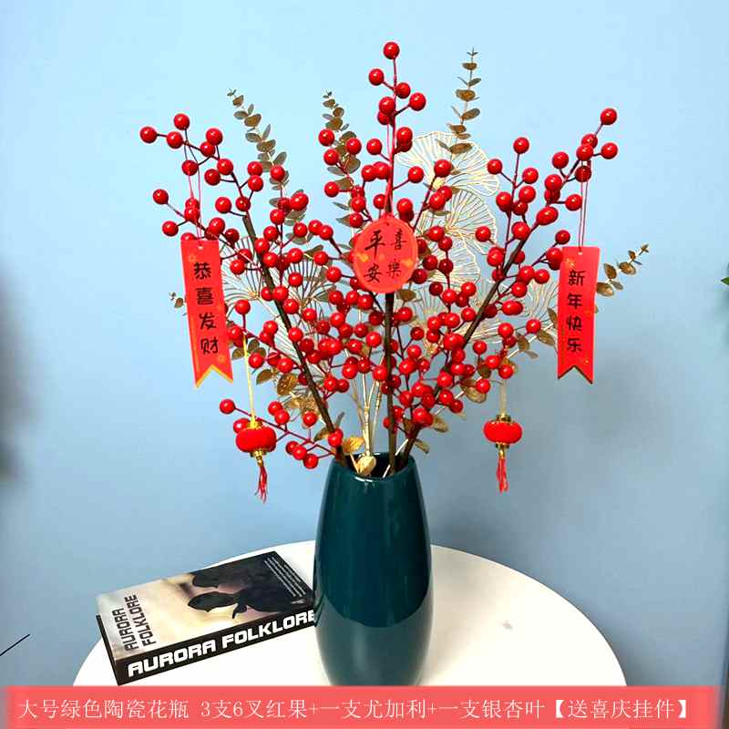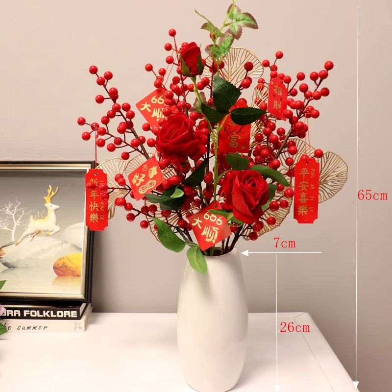 发财果红果假花仿真花摆设客厅餐桌花摆花家居插花装饰品花艺摆件