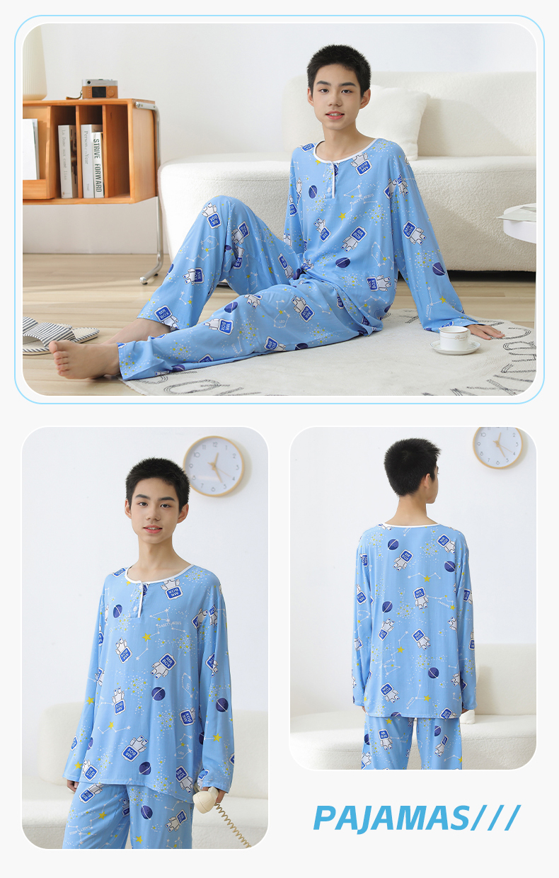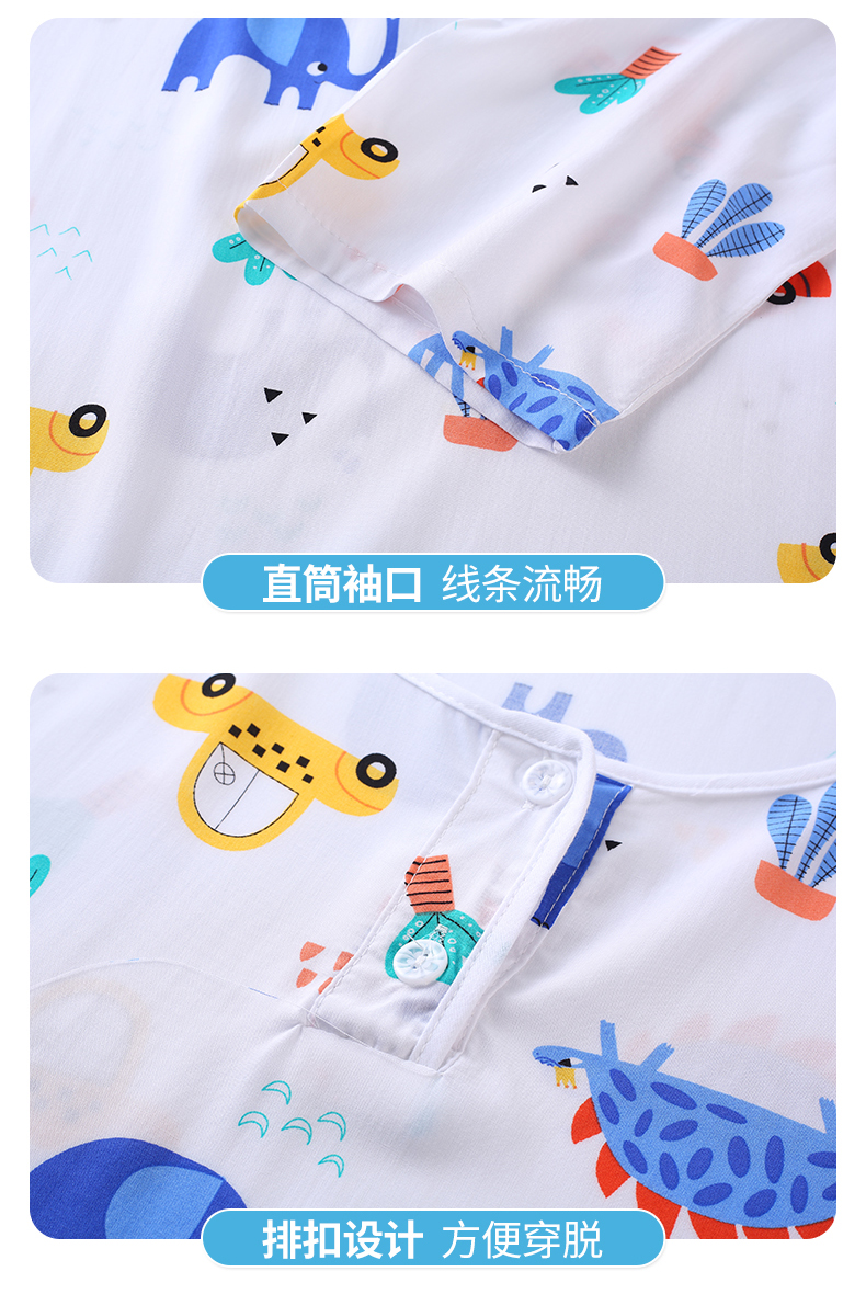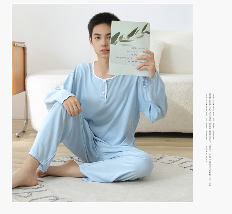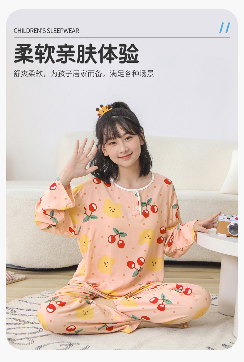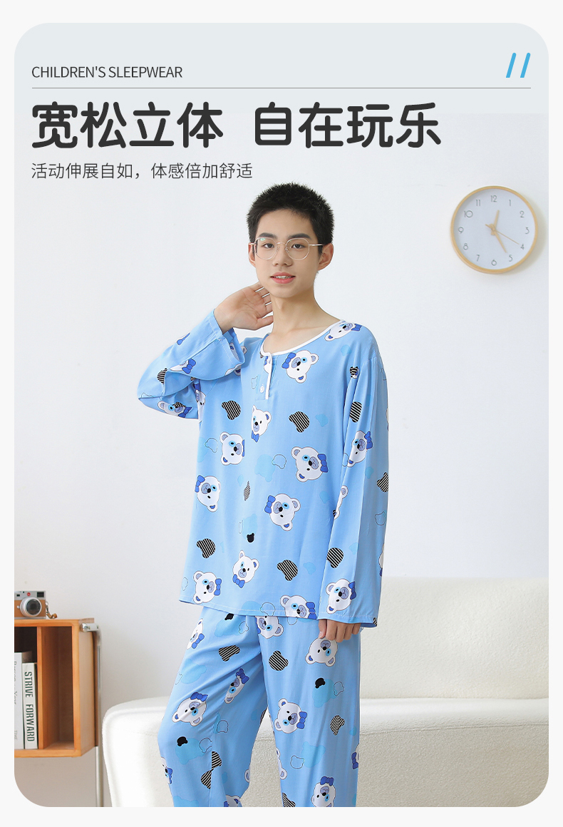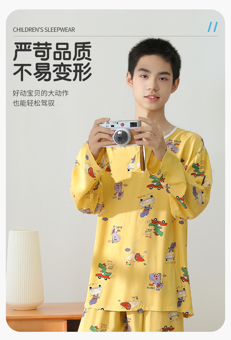 大童棉绸睡衣夏季青少年男童儿童薄款绵绸男孩长袖空调家居服套装