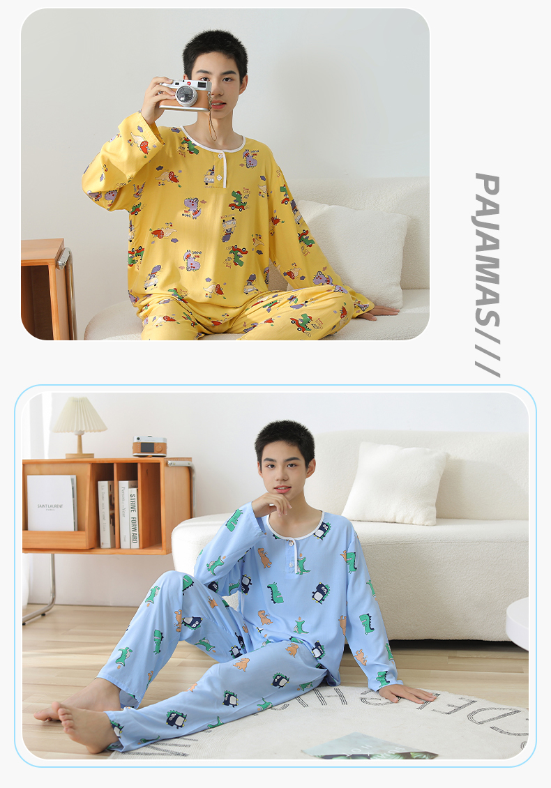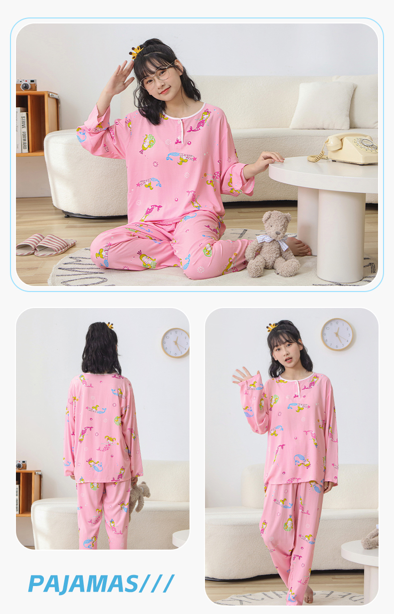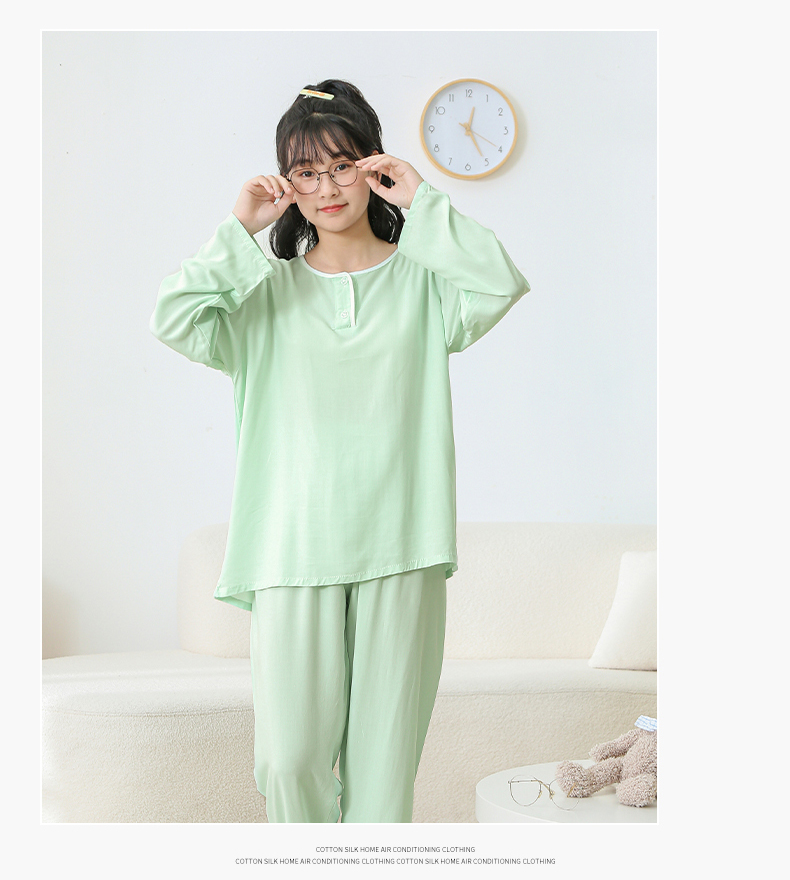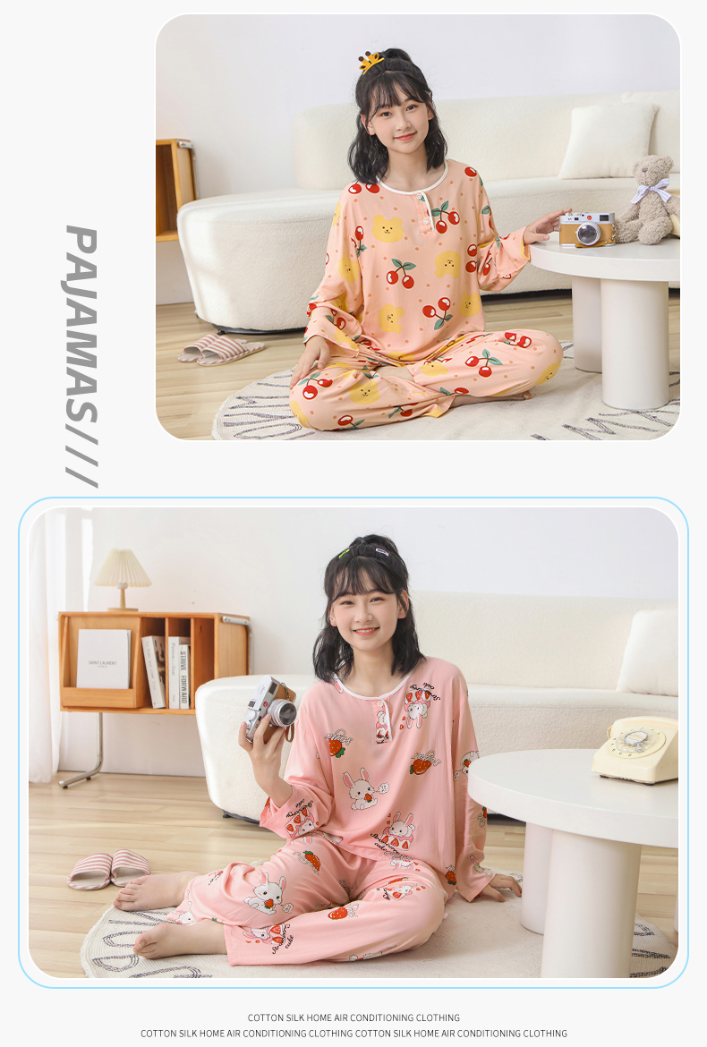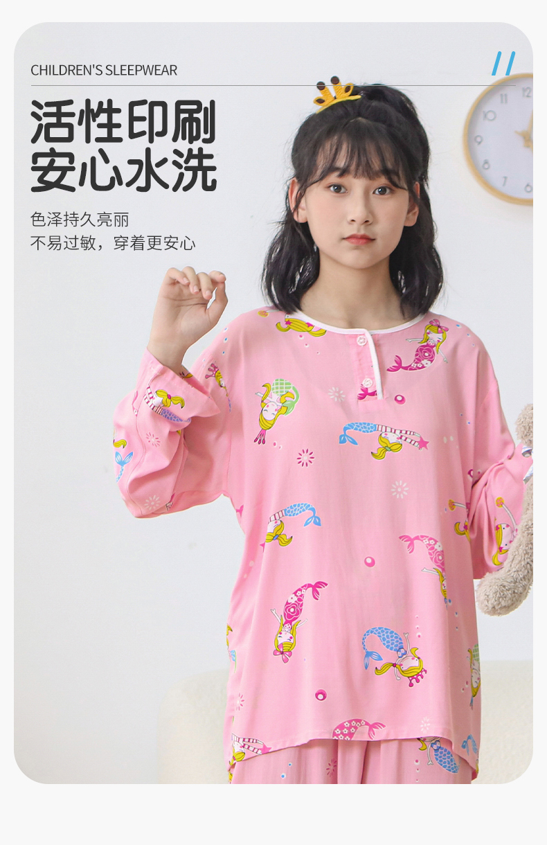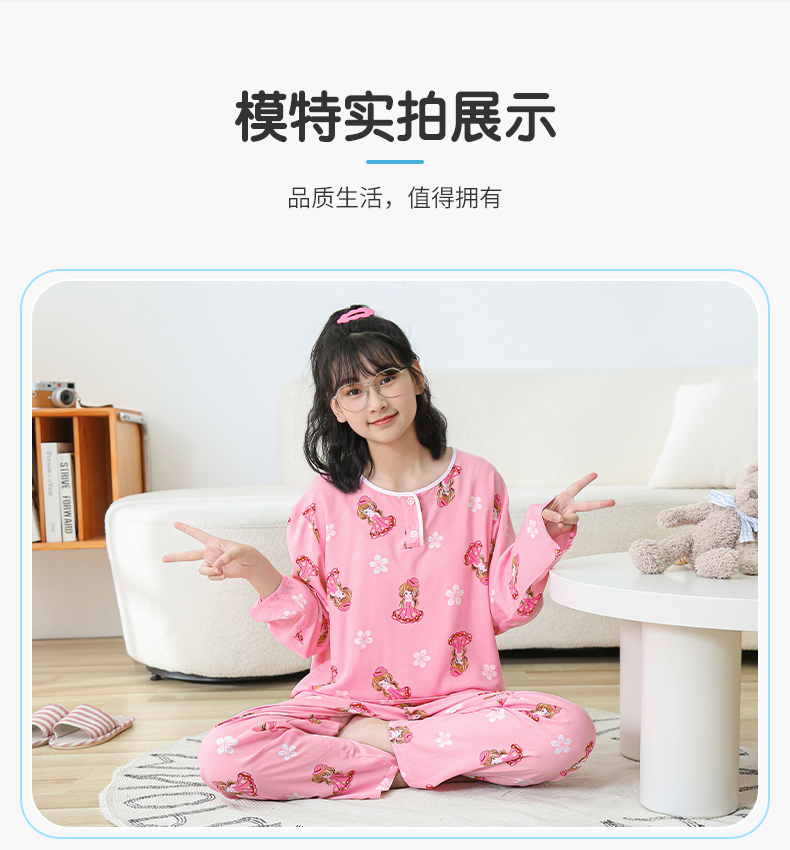大童棉绸睡衣夏季青少年男童儿童薄款绵绸男孩长袖空调家居服套装