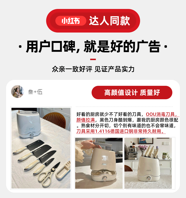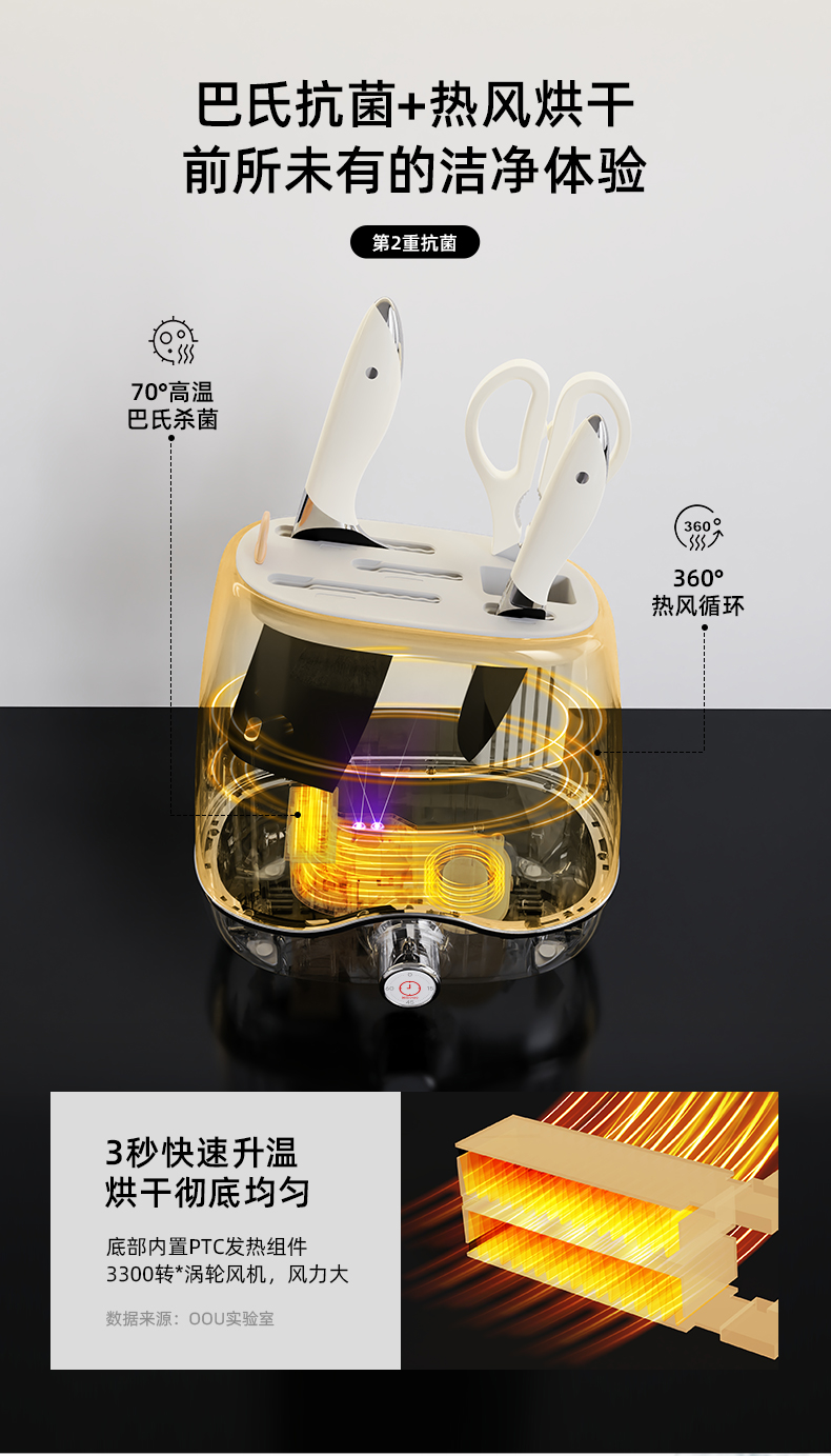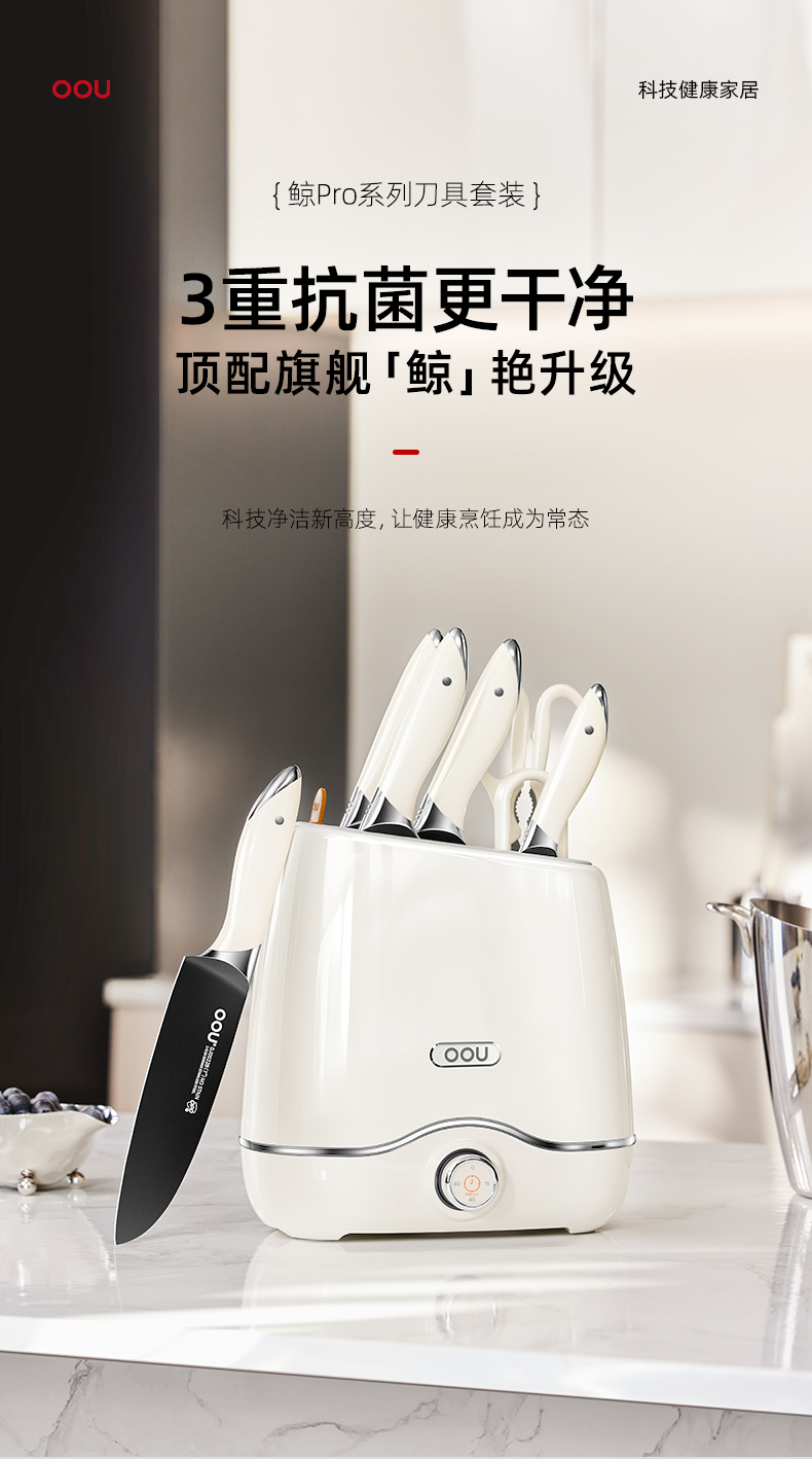 OOU德国不锈钢刀具套装厨房组合菜刀家用烘干一体筷子消毒机刀架