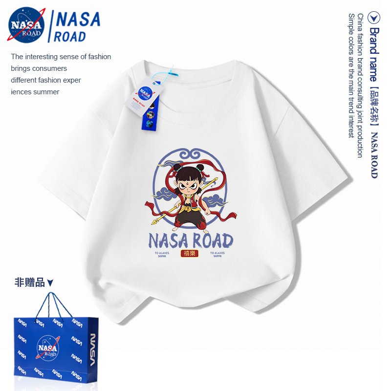 NASA哪咤联名款儿童t恤亲子装一家三四口2025新款国潮风夏季上衣