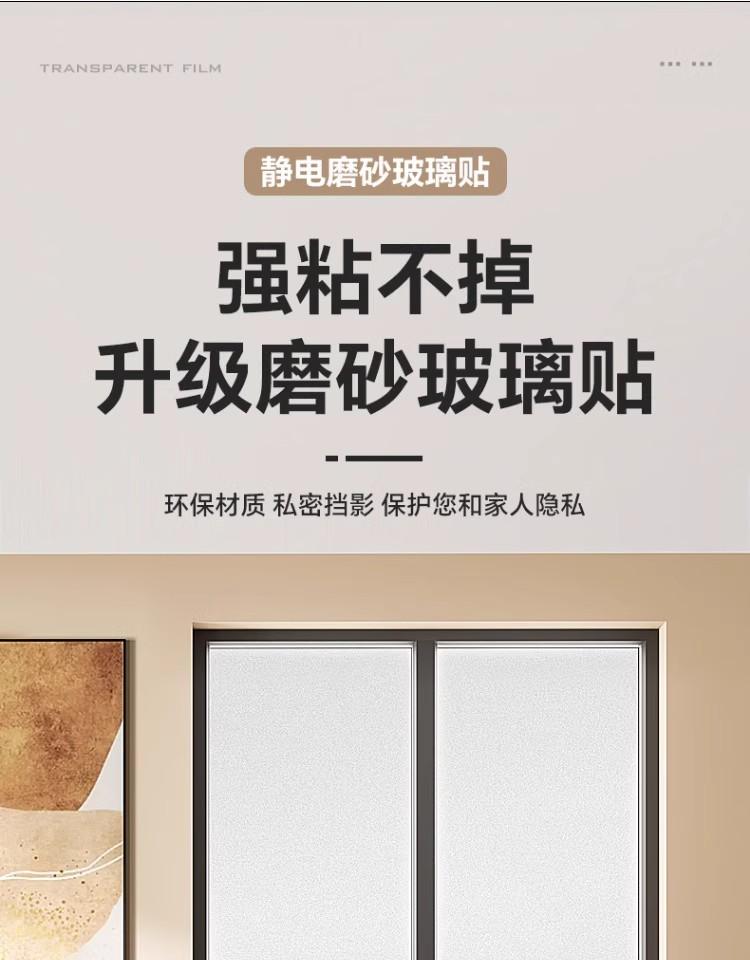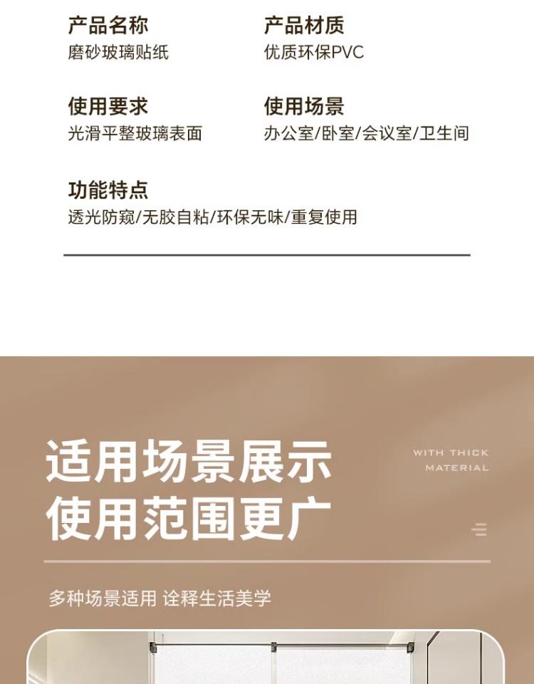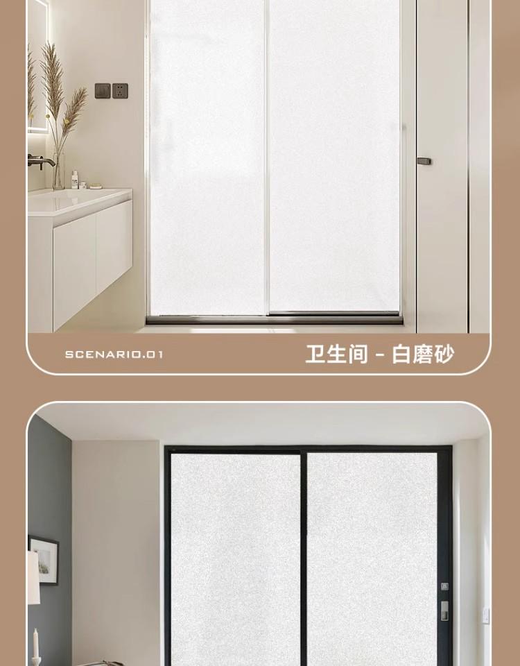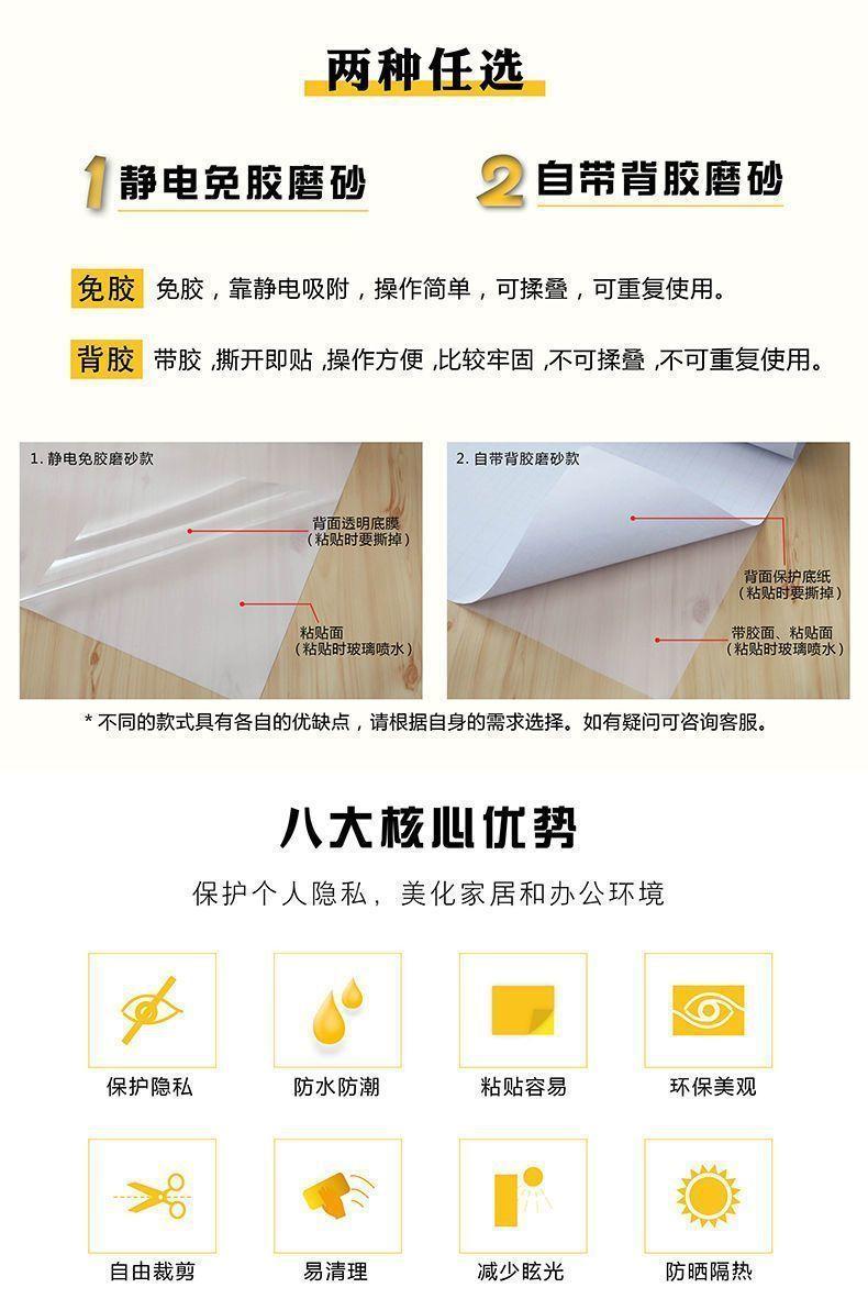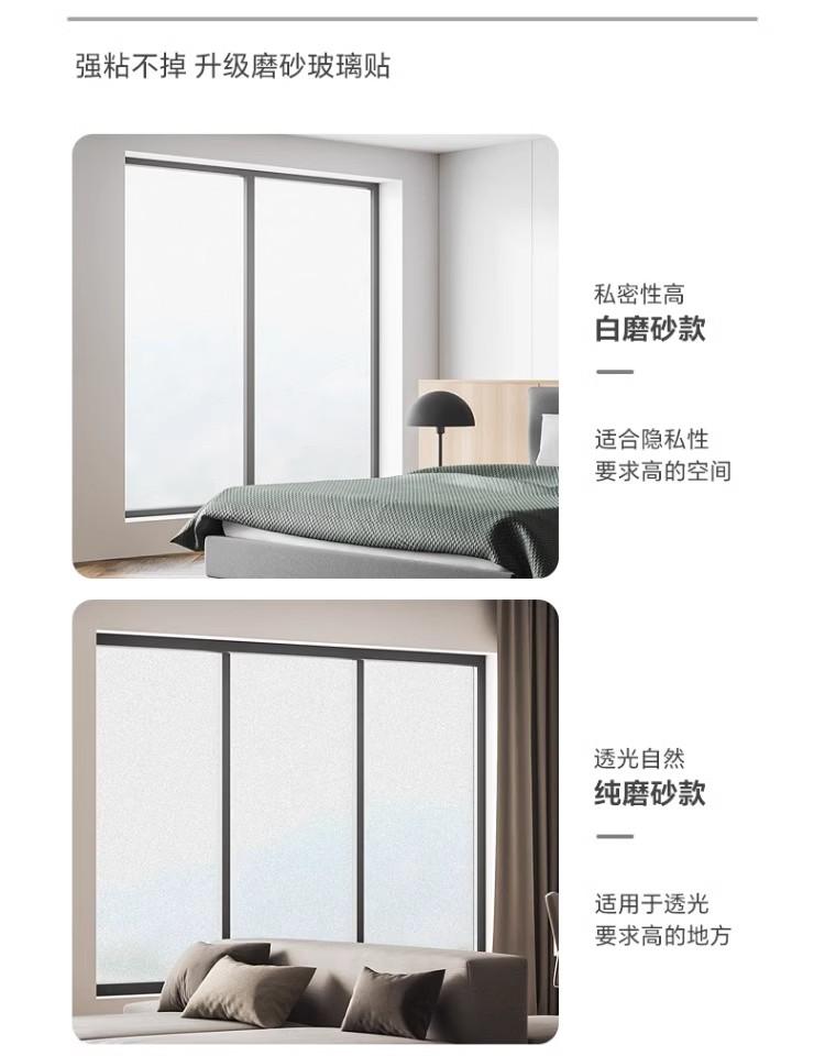 磨砂贴办公室窗户透光不透明人卫生间卧室防走光自粘免胶玻璃贴膜