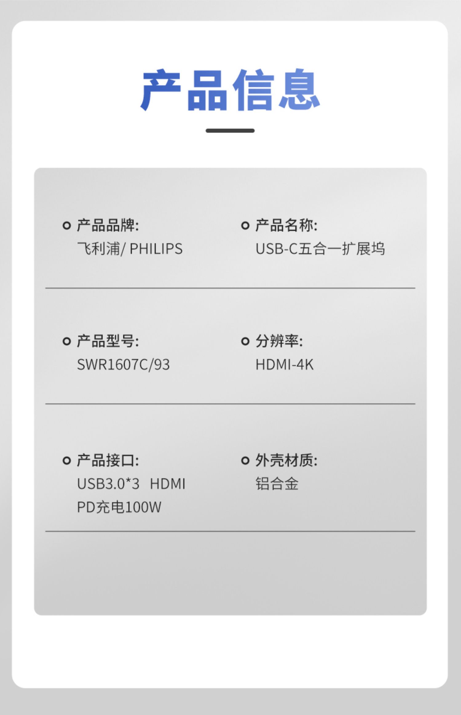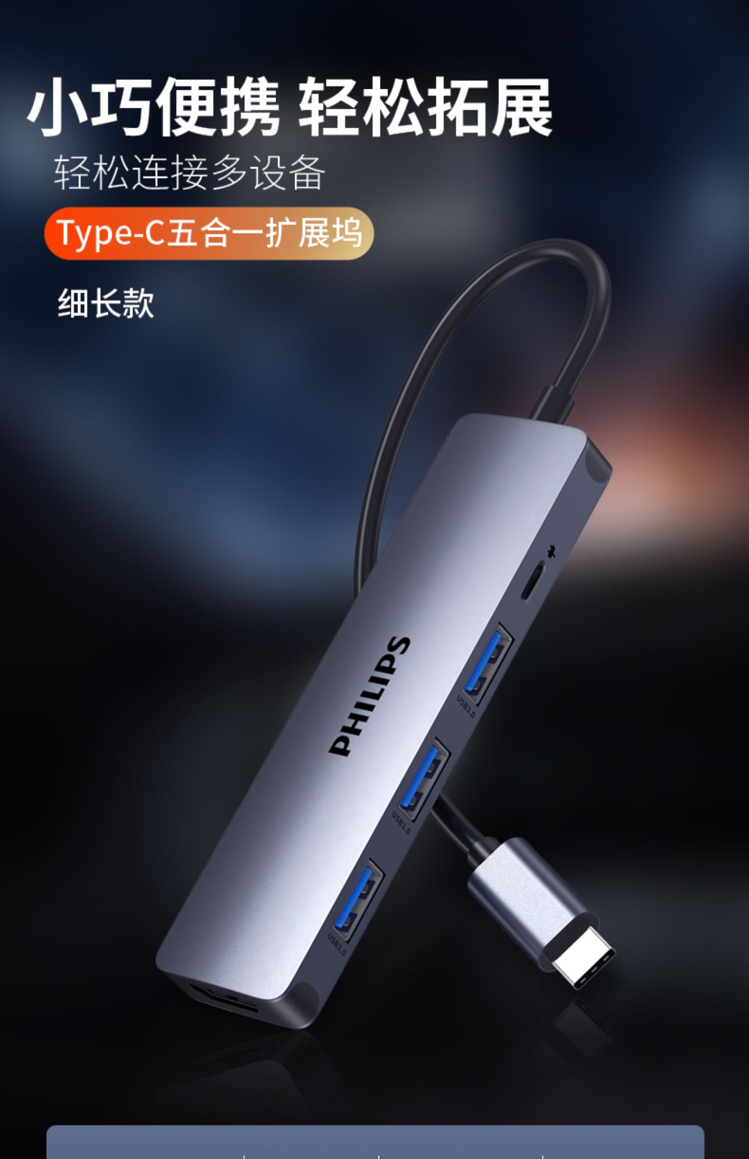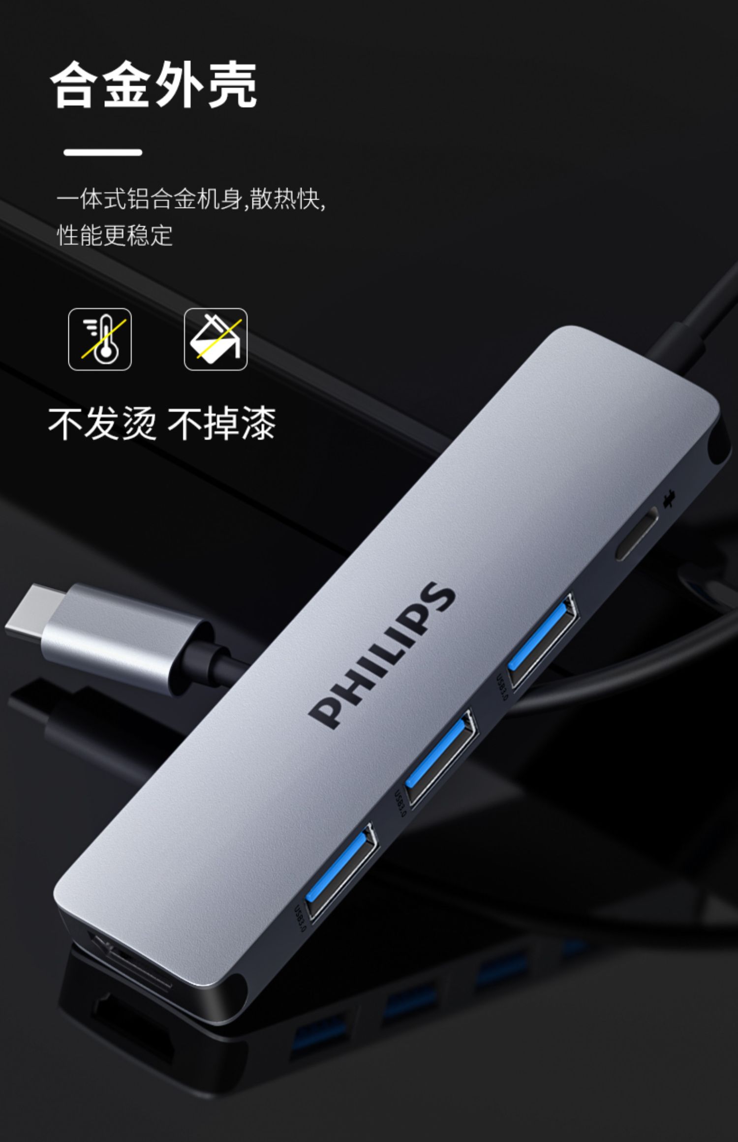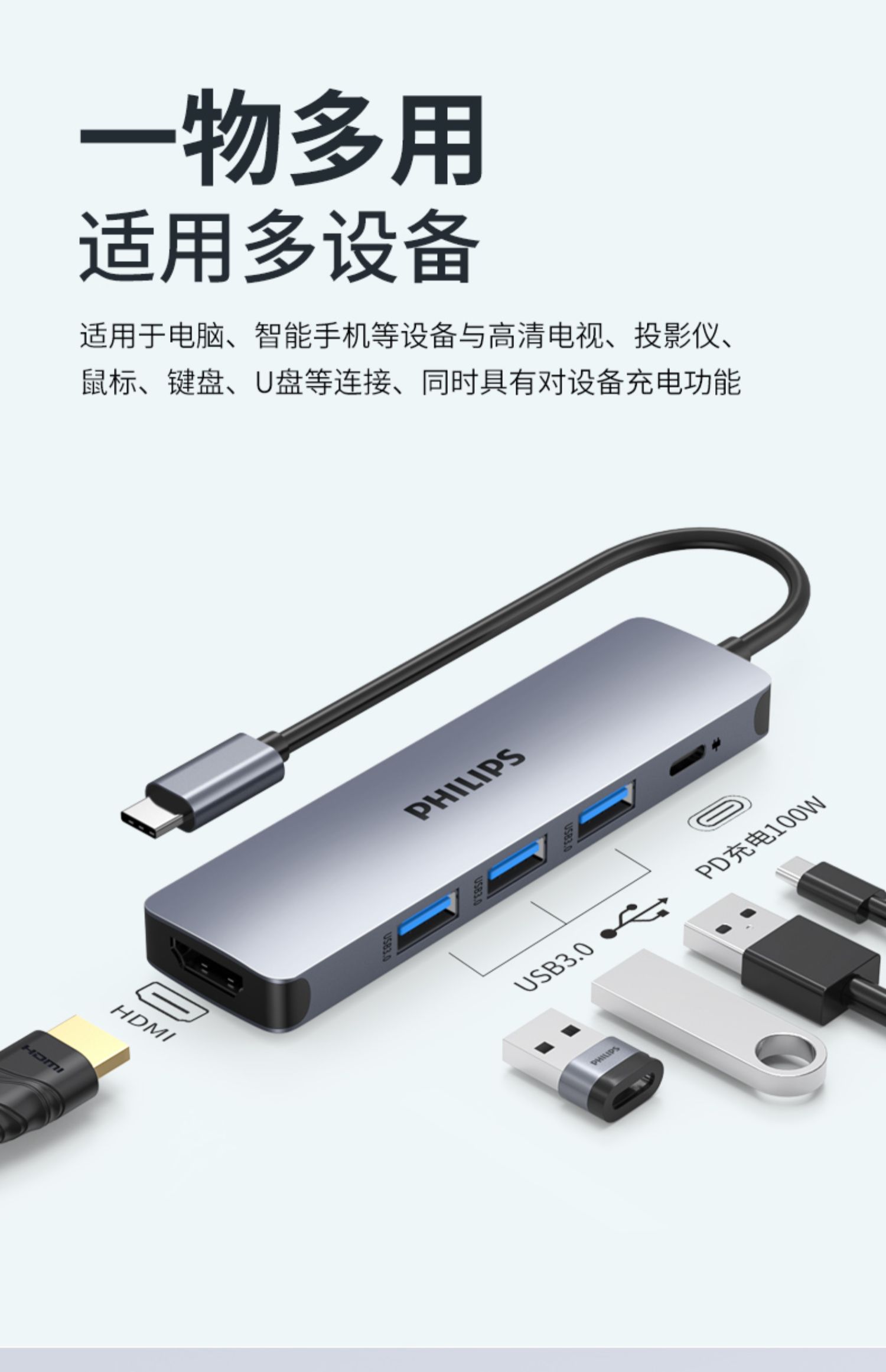 飞利浦hdmi高清拓展坞适用macbookpro苹果电脑typec扩展器雷电3笔记本配件usb多接口hub集分线器air转换接头